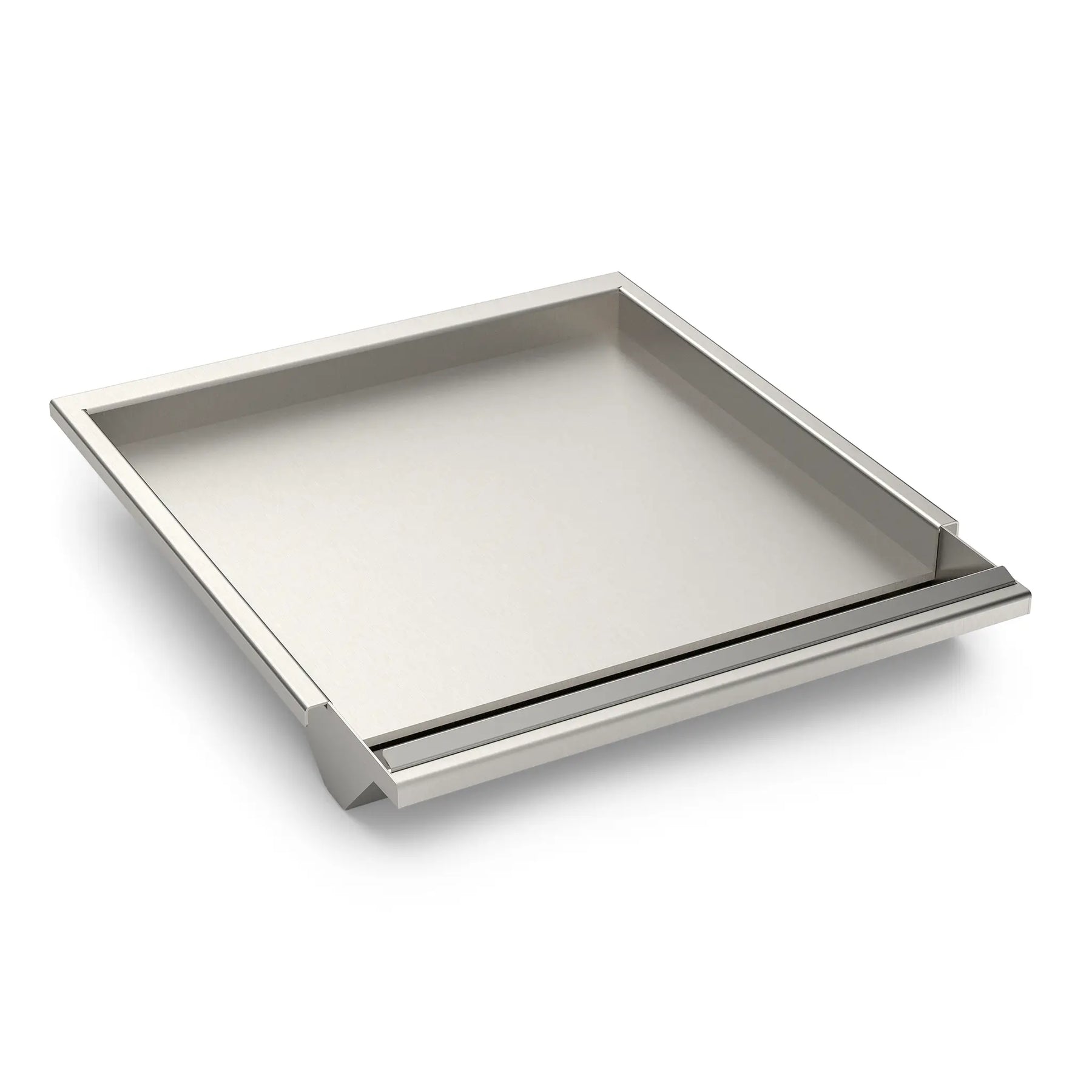 Enhance your grilling experience with this high-end Stainless Steel Griddle by Fire Magic. Cook gourmet meals for your friends and family, it will have them coming back for more. It provides a spacious cooking surface to accommodate cooking for larger groups. In addition to this, the griddle is constructed with a scratch resistant finish and includes a removable drip tray for easy cleaning, as well as a reinforcing ring that prevents warping. This durable Stainless Steel Griddle is compatible with A79, A66, A53 Aurora Grills, and E1060, E790, E660 Echelon Grills, Power Burners, and Double Searing Stations.