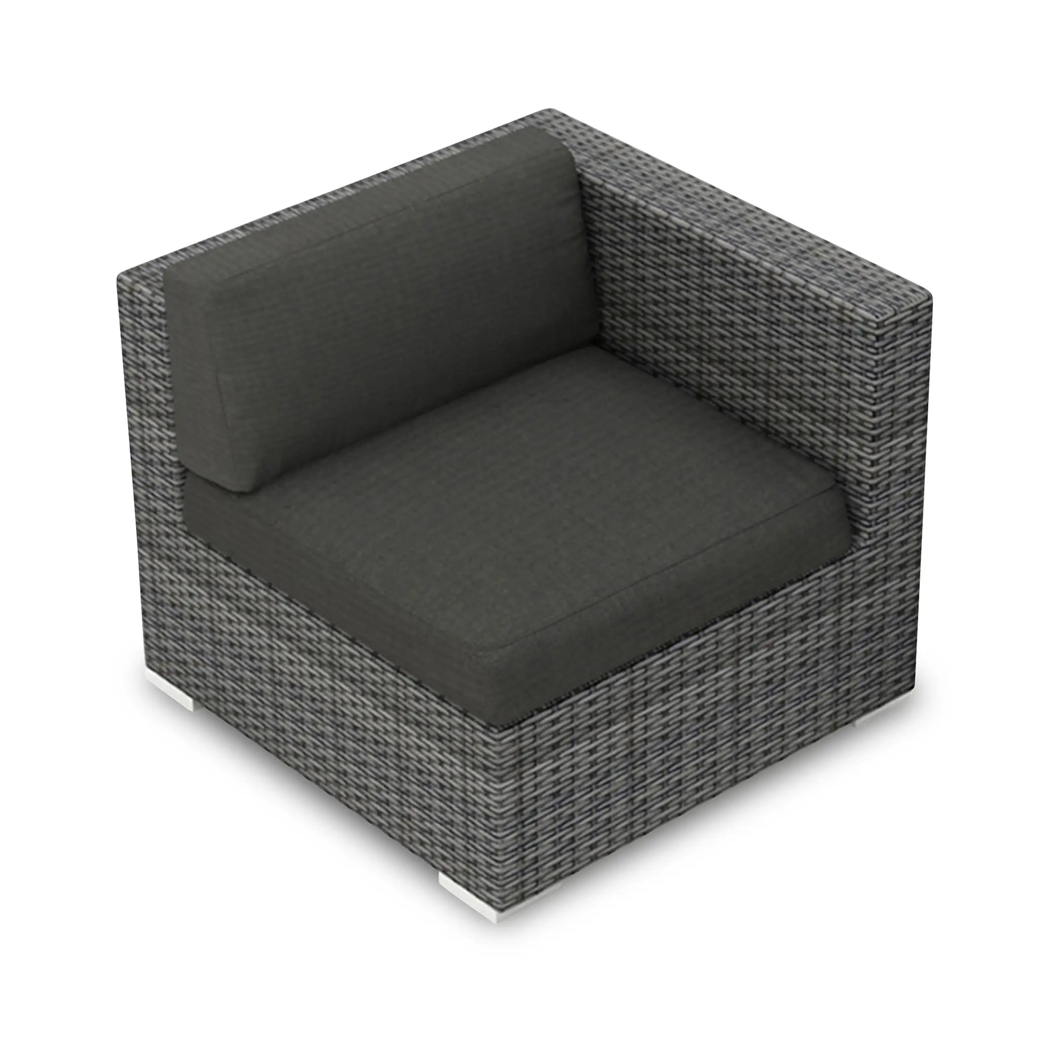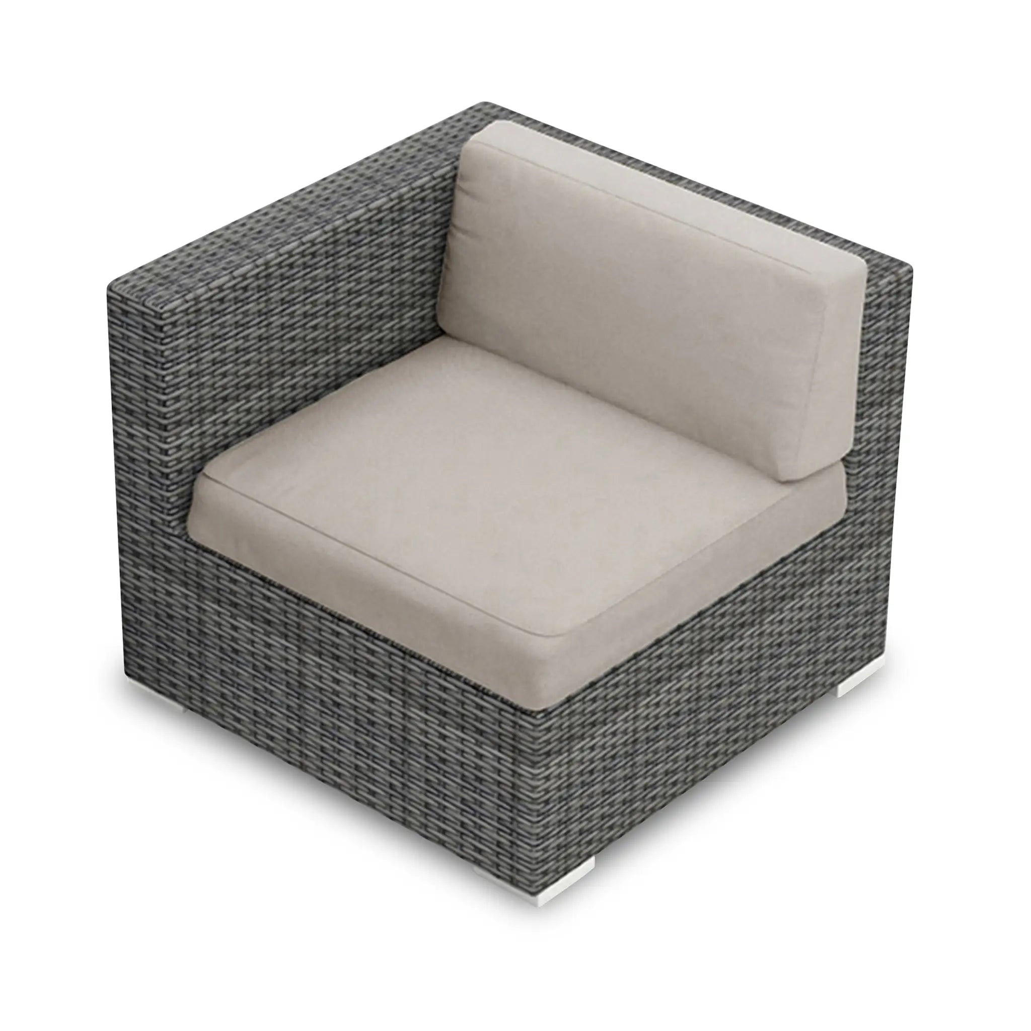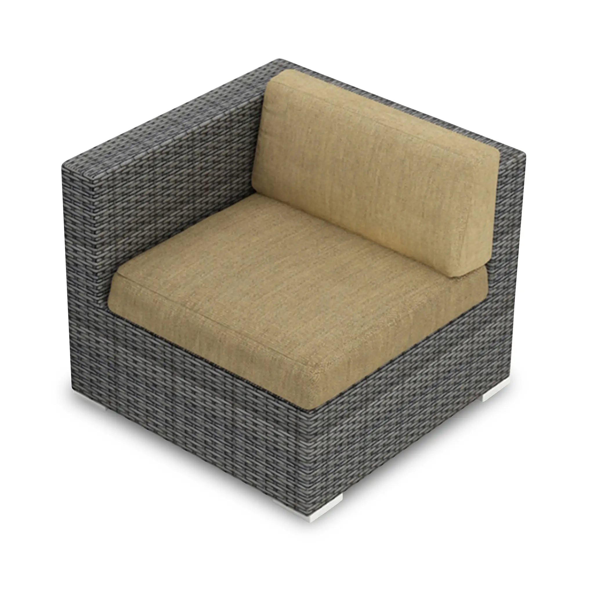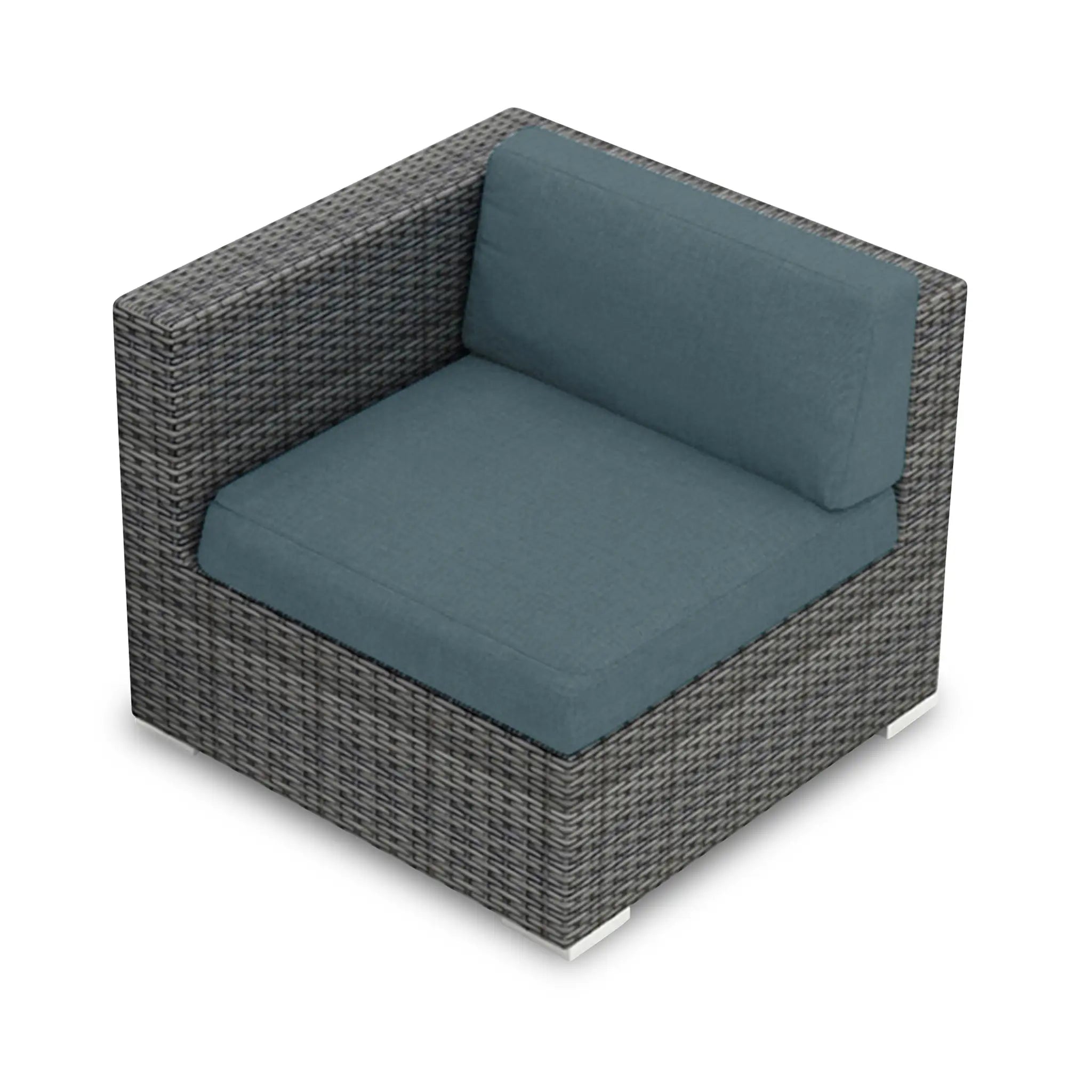 The sectional's hand-woven wicker is made from High-Density Polyethylene (HDPE), a material designed for long-lasting performance and resistance to cracking. Infused color prevents fading, keeping the set looking vibrant year after year. Finished in a rich, beautifully textured Slate color, the wicker offers a natural look and feel while providing the strength needed for outdoor use.