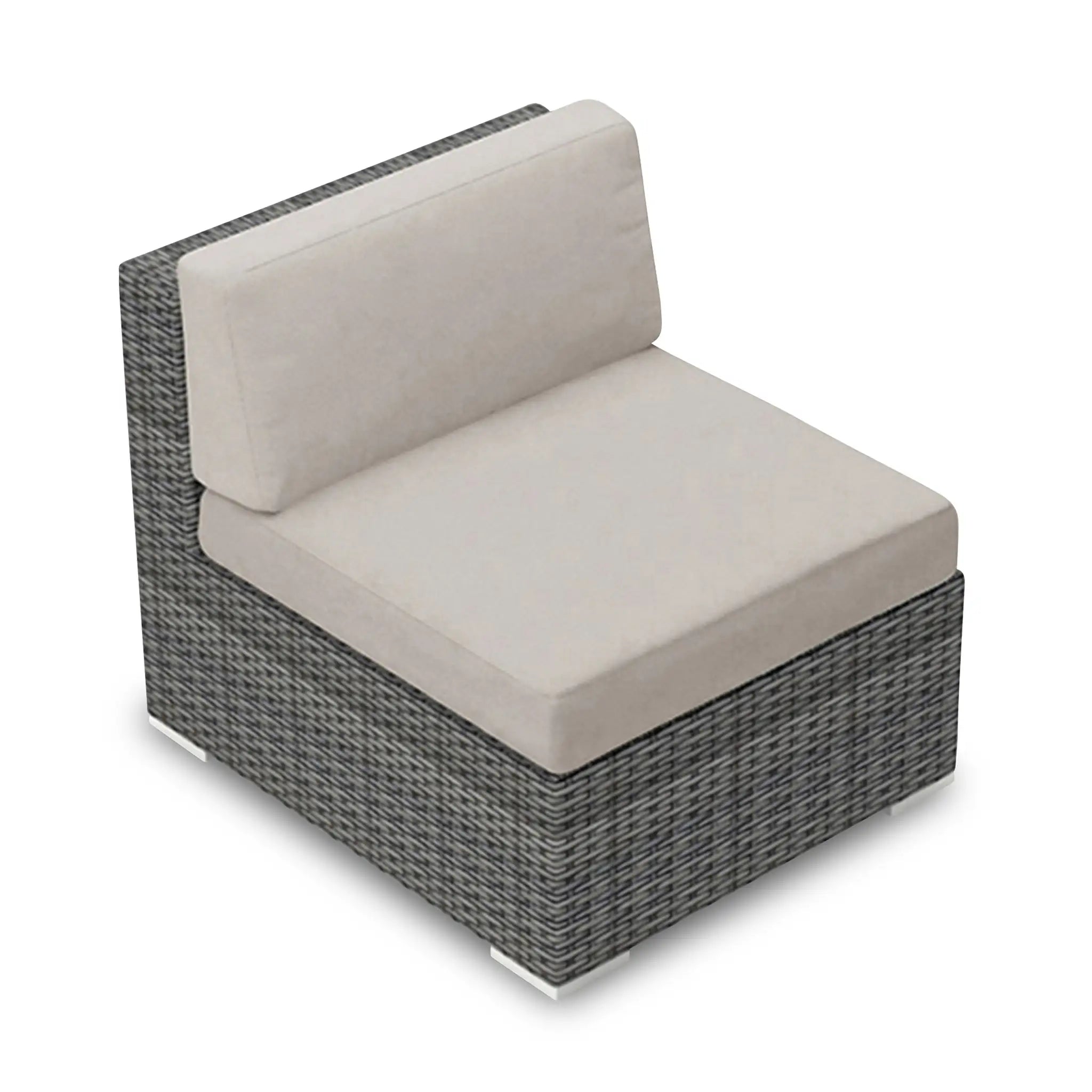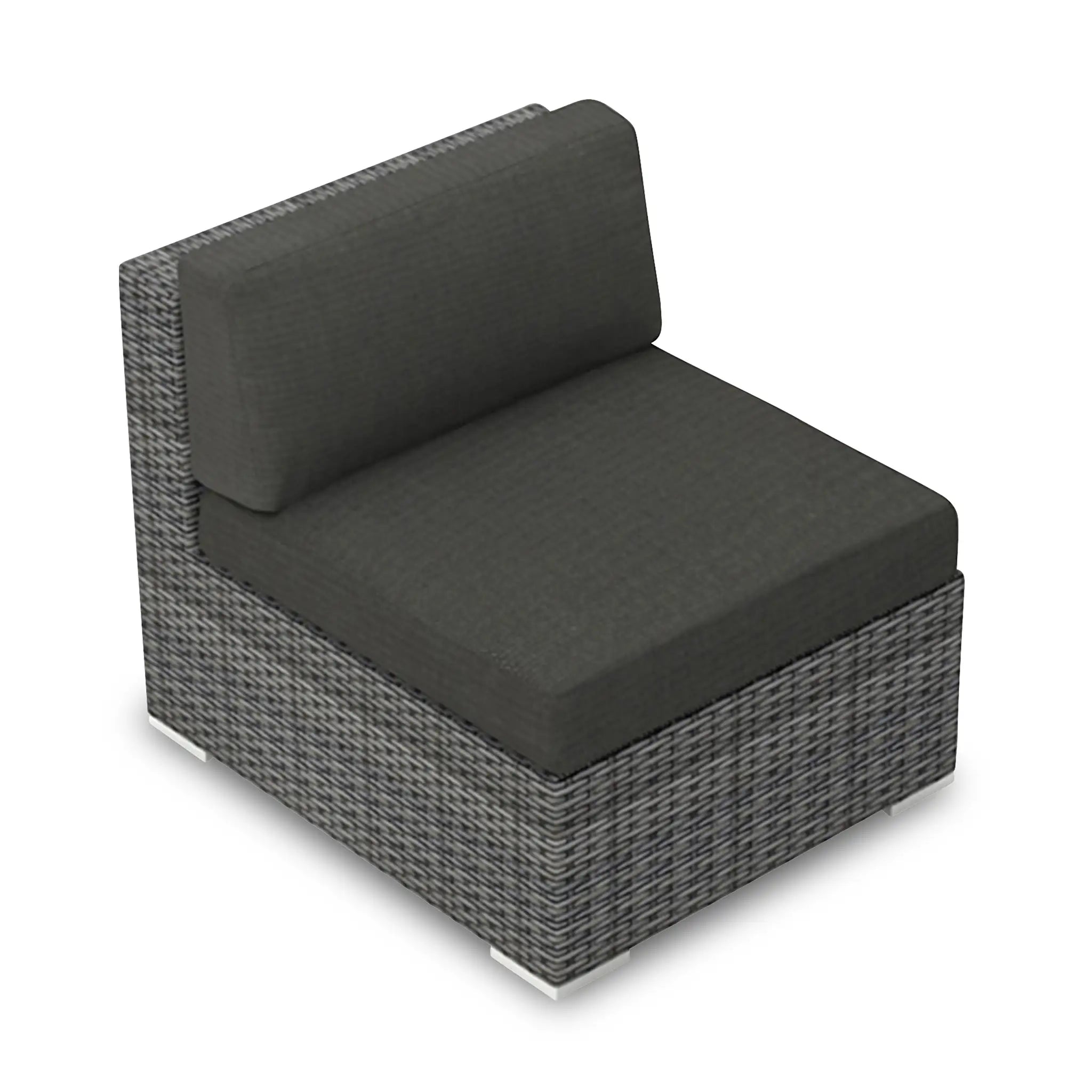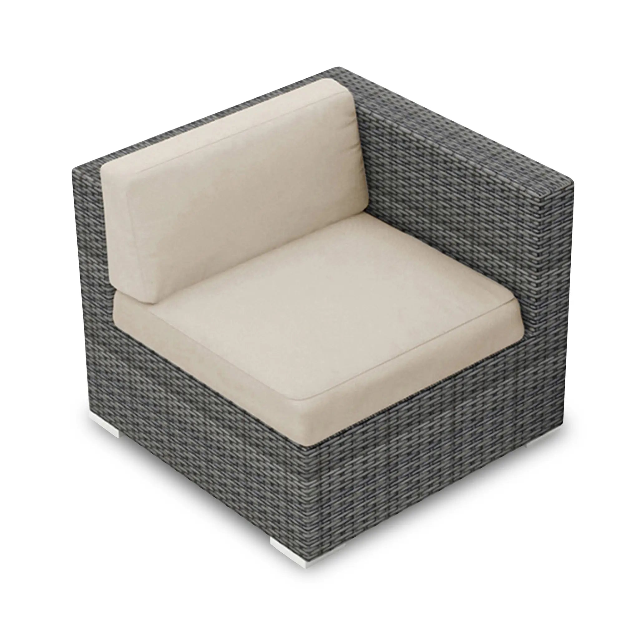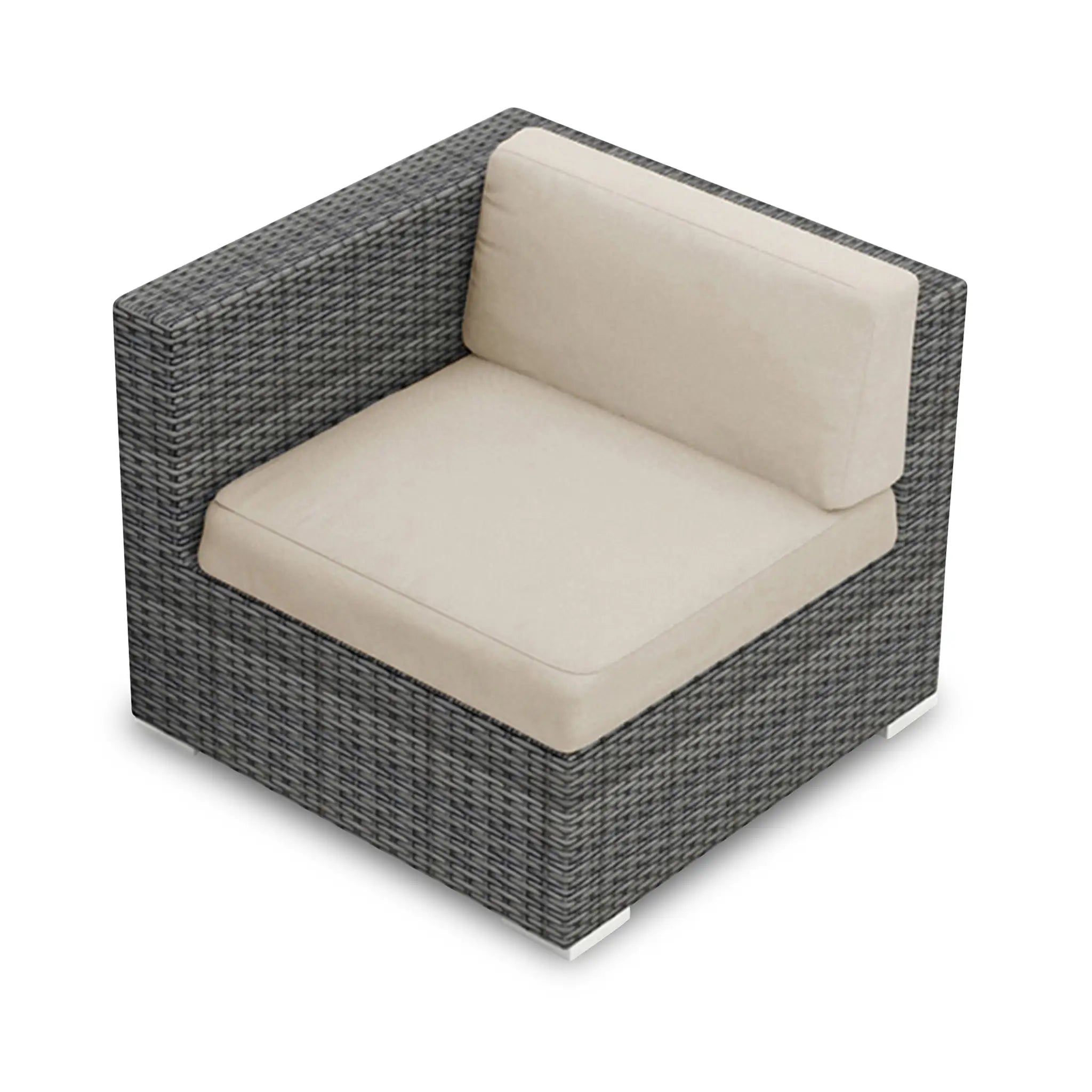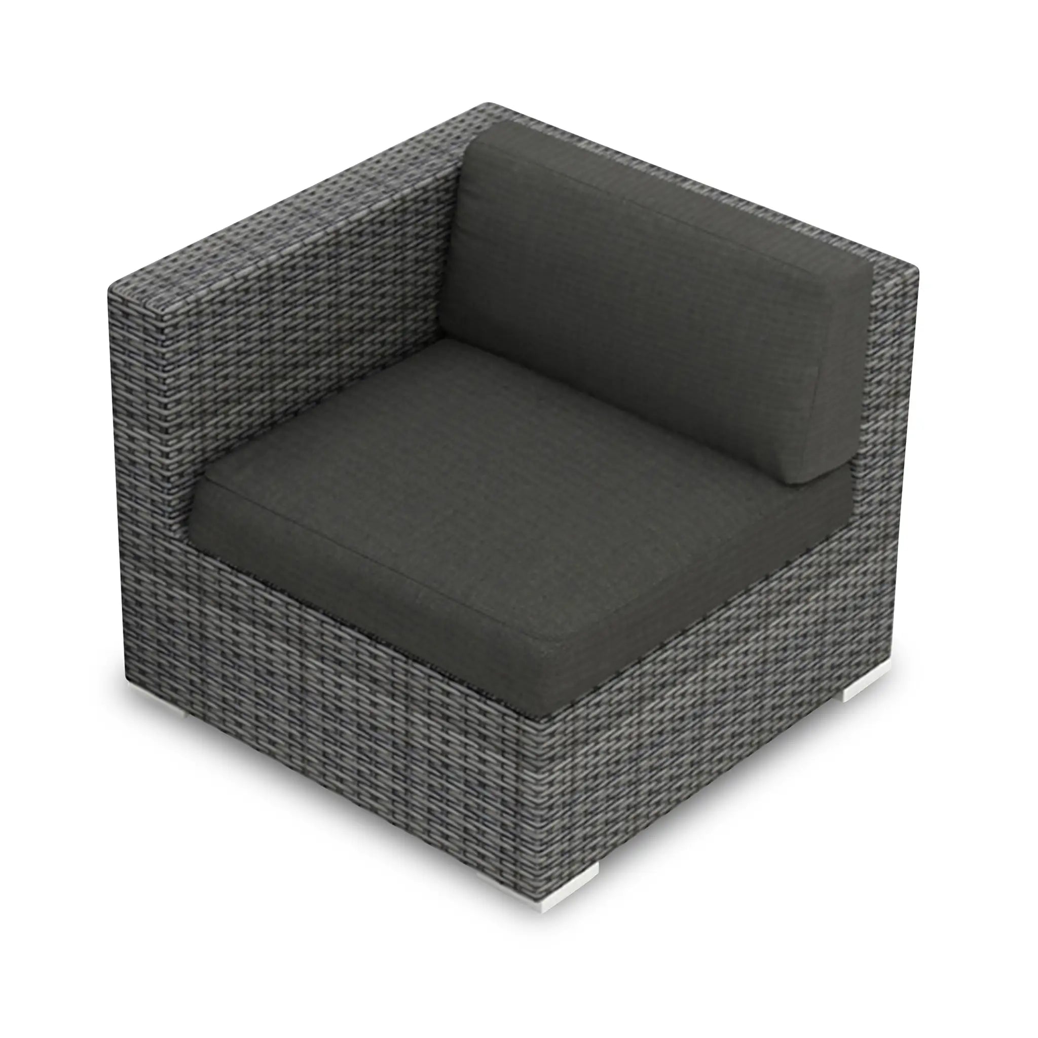 The sectional's hand-woven wicker is made from High-Density Polyethylene (HDPE), a material designed for long-lasting performance and resistance to cracking. Infused color prevents fading, keeping the set looking vibrant year after year. Finished in a rich, beautifully textured Slate color, the wicker offers a natural look and feel while providing the strength needed for outdoor use.