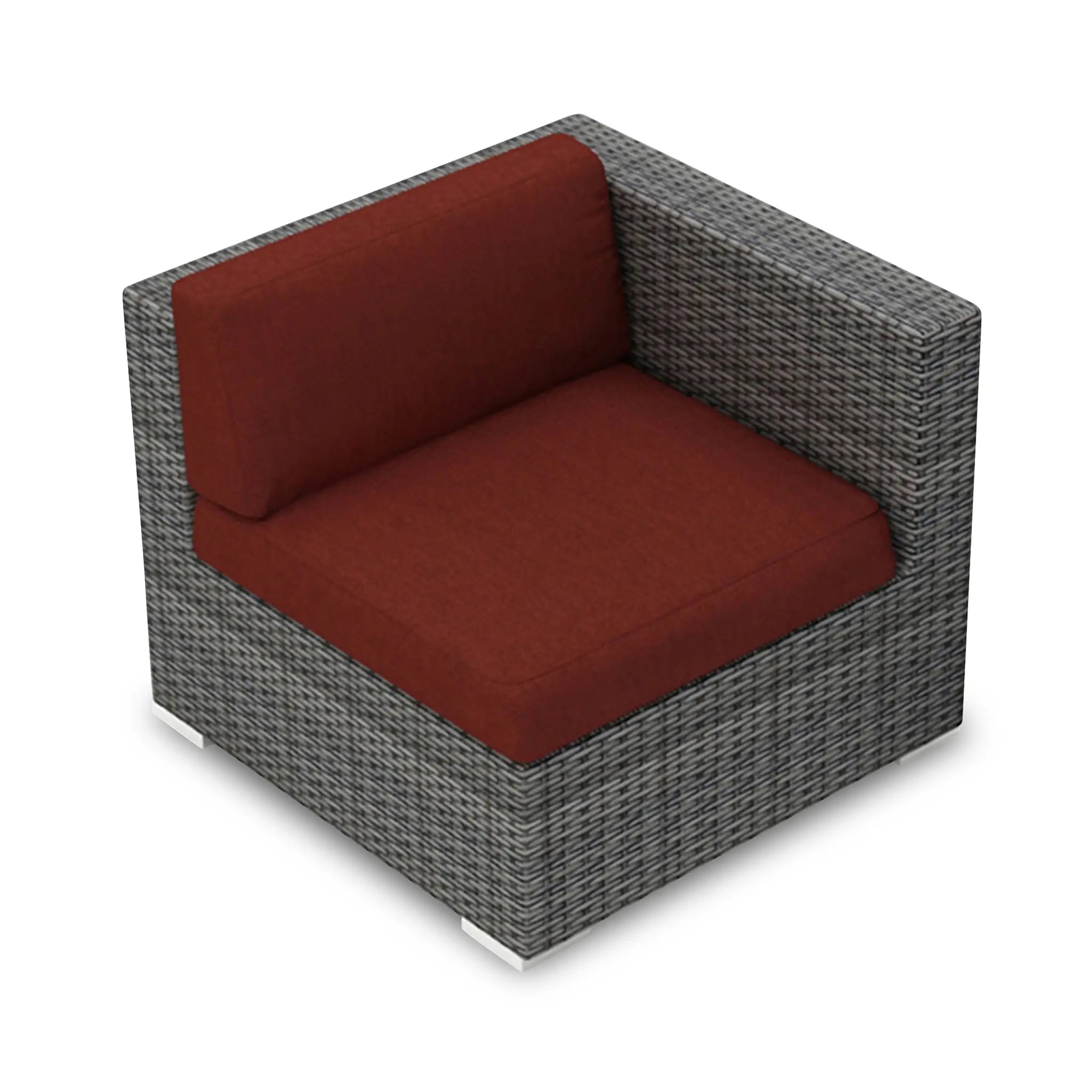 To ensure maximum comfort, the sectional comes with quick-drying, Dacron cushions and UV-treated, marine-grade PremoBond thread. These premium materials create a seat that is both supportive and comfortable, designed to hold up against the elements throughout the seasons. All cushions are upholstered in performance fabrics such as Sunbrella, Outdura, and Revolution, known for their fade resistance and ease of maintenance. With a 5-year fade warranty, these fabrics are designed to maintain their vibrant color and durability, even with prolonged exposure to sunlight.