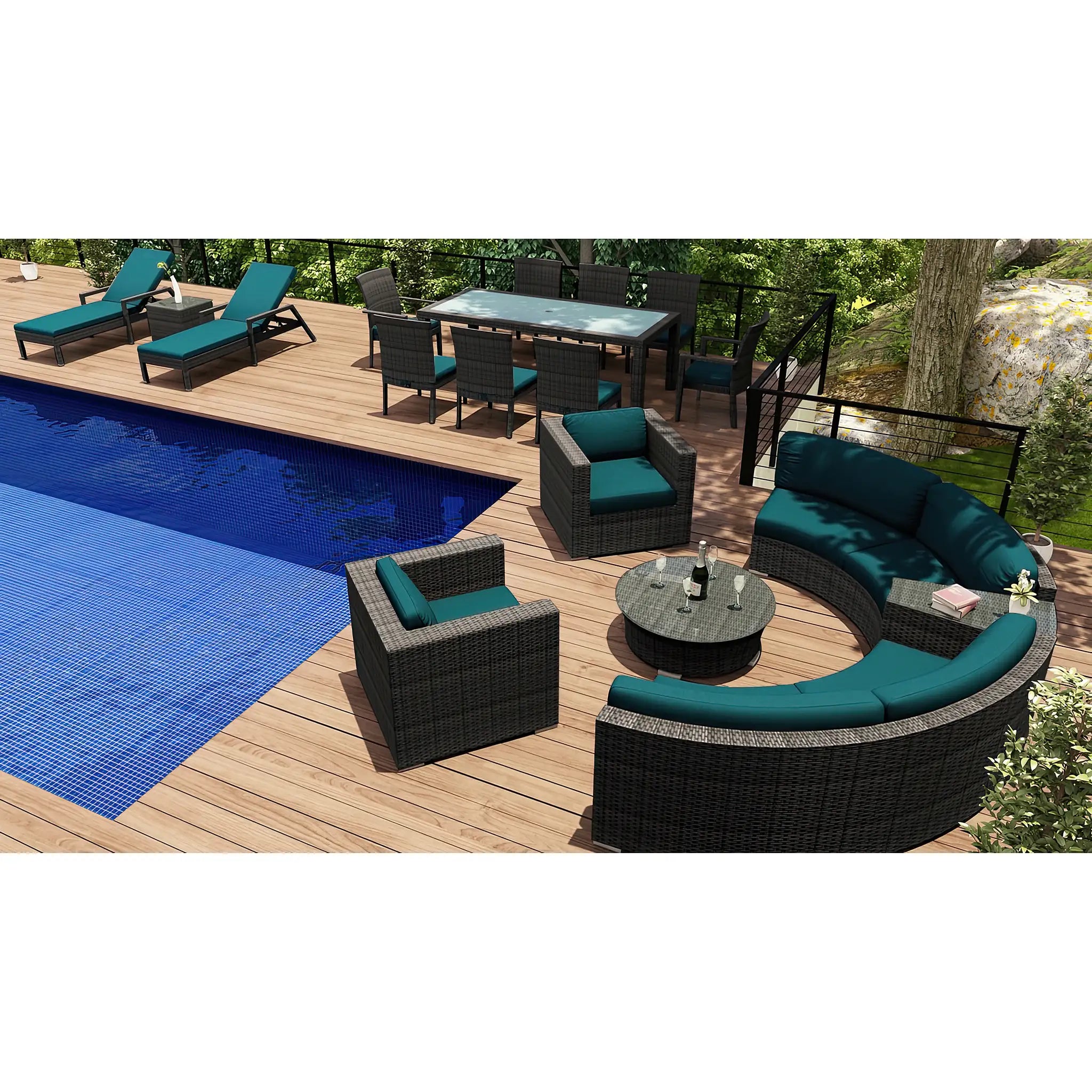 Harmonia Living's Quick-Ship Program makes this set even more convenient, offering 9 popular Sunbrella fabric options that are fade-resistant, easy to clean, and ready to ship within days of placing your order. This program allows you to enjoy your new furniture without the long wait, getting your set delivered in no time.
