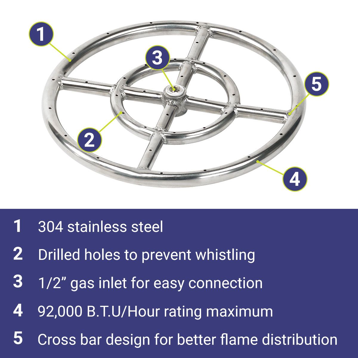 • One (1) Stainless Steel Fire Ring Burner