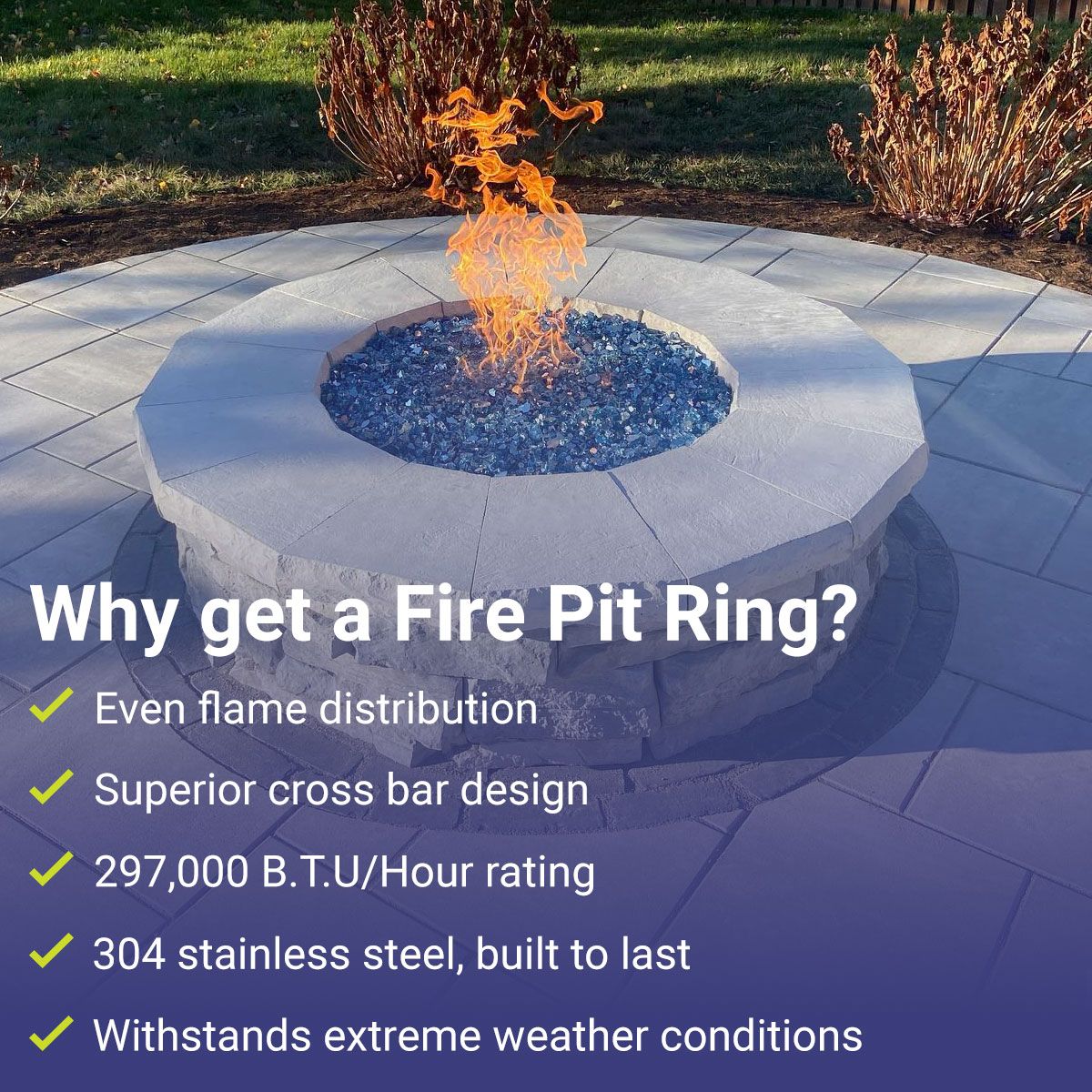 Whether you’re creating a cozy backyard escape or a sleek patio centerpiece, this fire ring combines durable construction with beautiful flame output, making it a must-have for dependable fire feature performance.