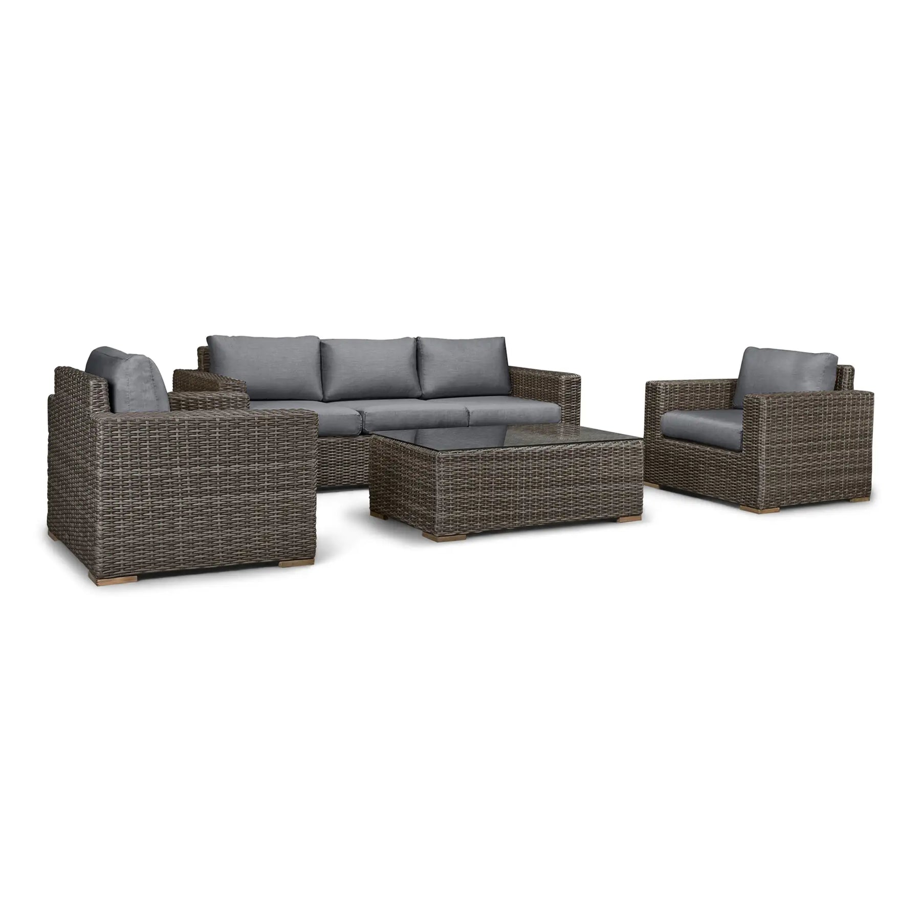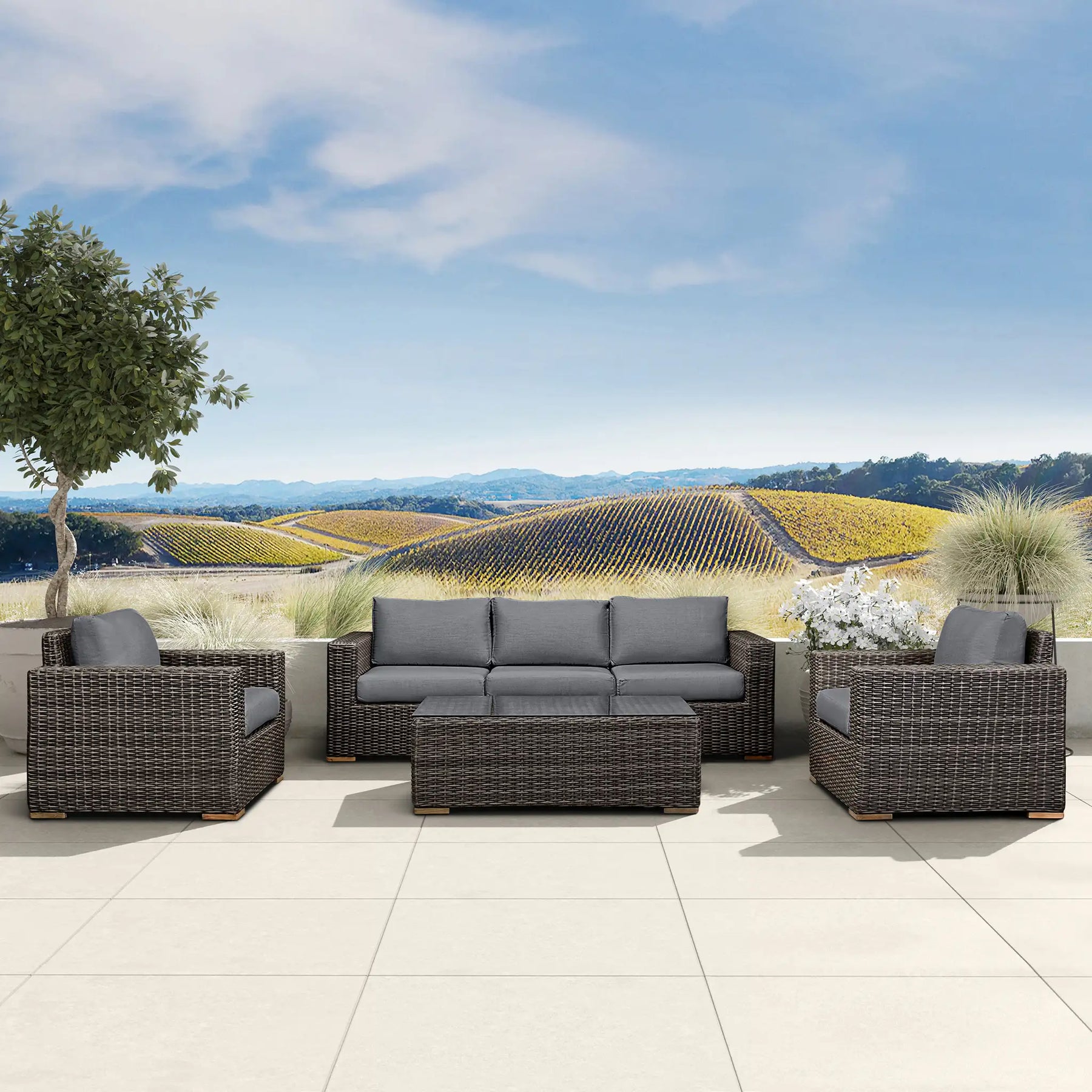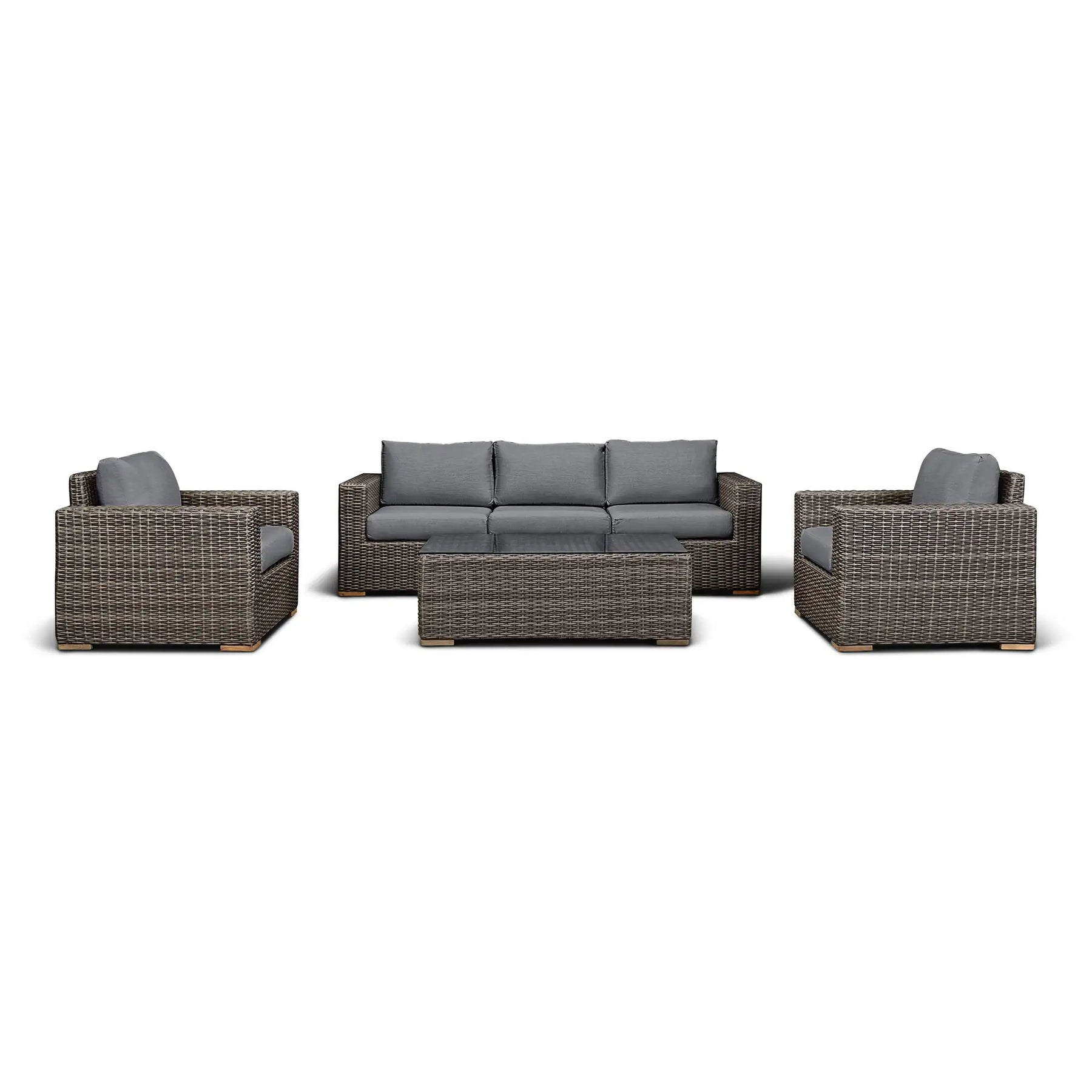 To complement its stylish seating, the set includes a matching table topped with extra-strong tempered glass, providing a durable and functional surface for everyday use. Whether you're hosting guests, enjoying quiet evenings outdoors, or creating a luxurious retreat, the Viento 4 Piece Sofa Club Chair Set delivers a perfect balance of beauty, comfort, and resilience.