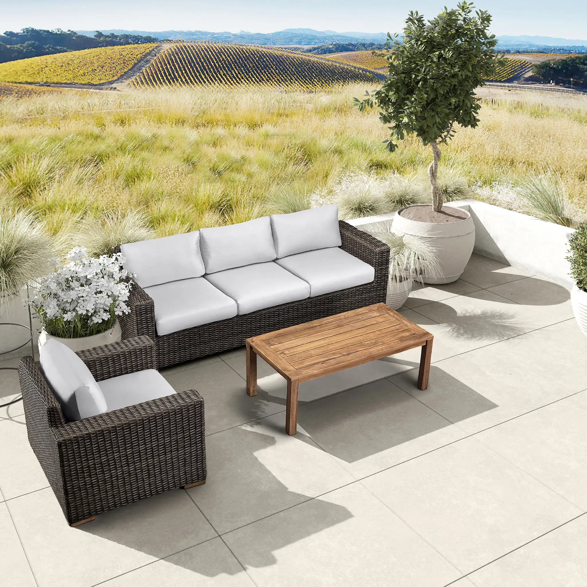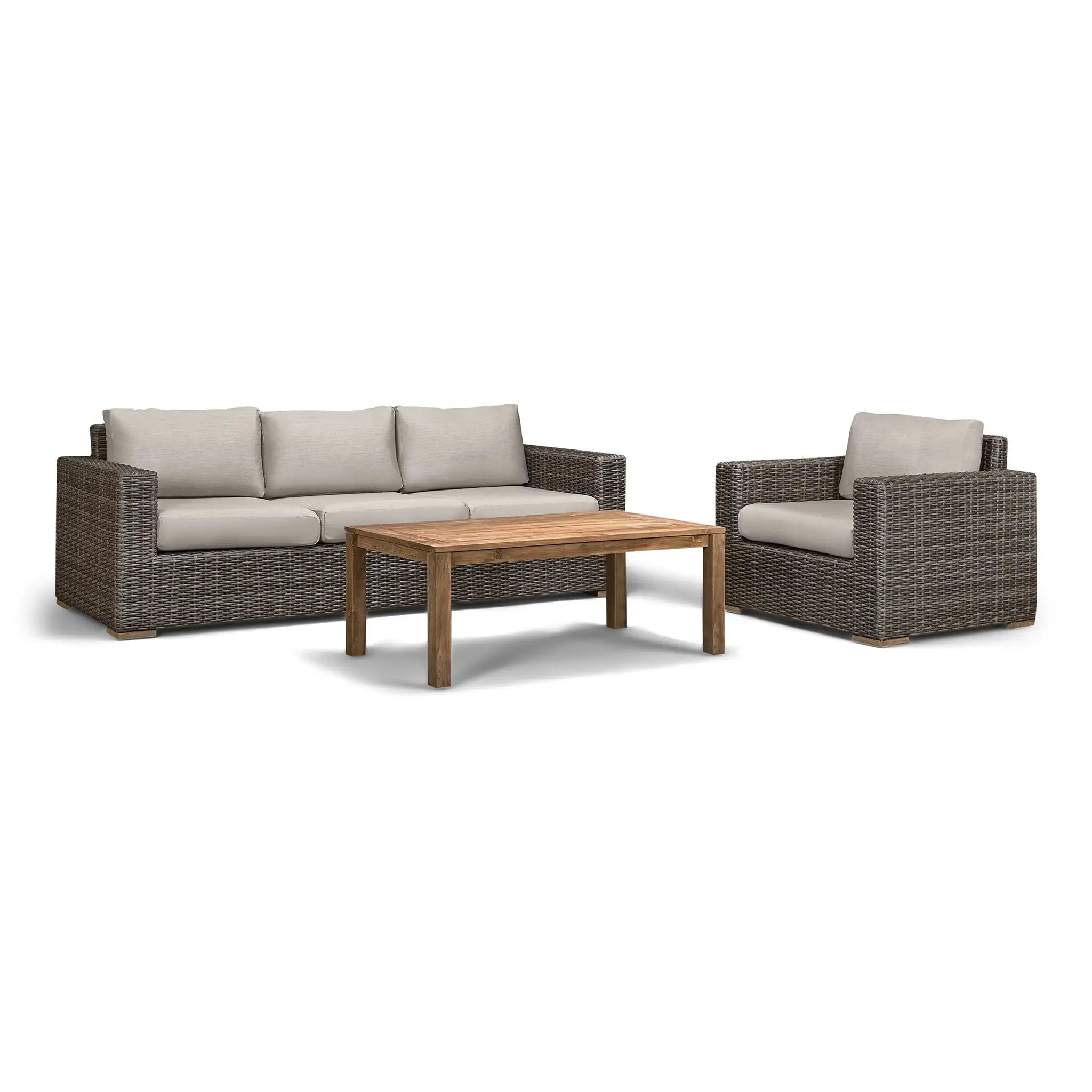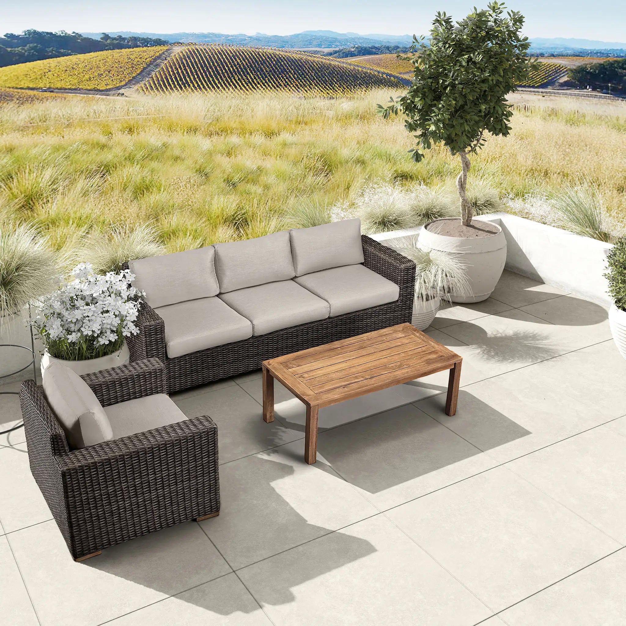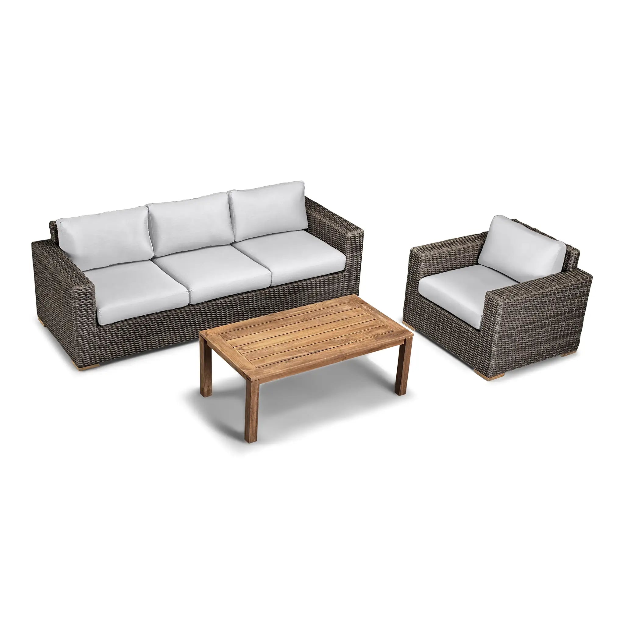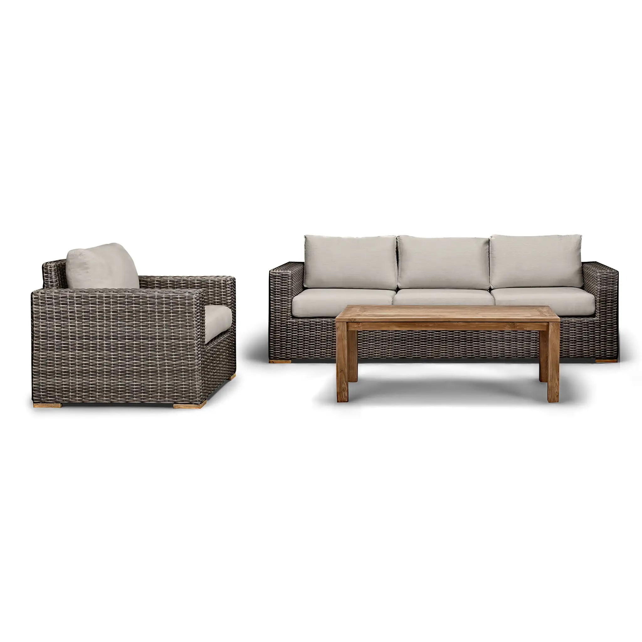 Designed for both residential and commercial settings, the Dune Teak 3 Piece Sofa Set offers a blend of sophistication, durability, and premium comfort, transforming any patio or outdoor lounge into a relaxing retreat.