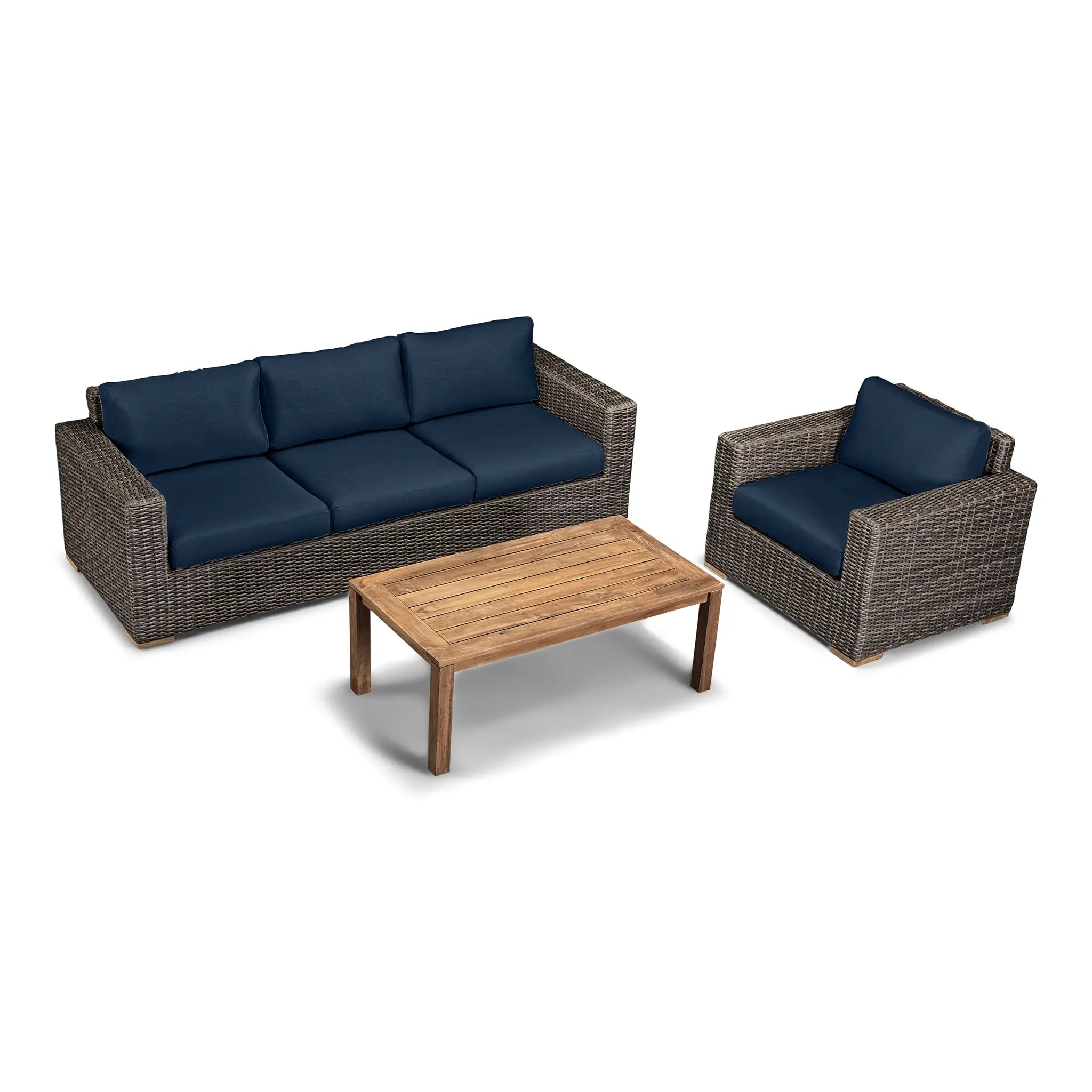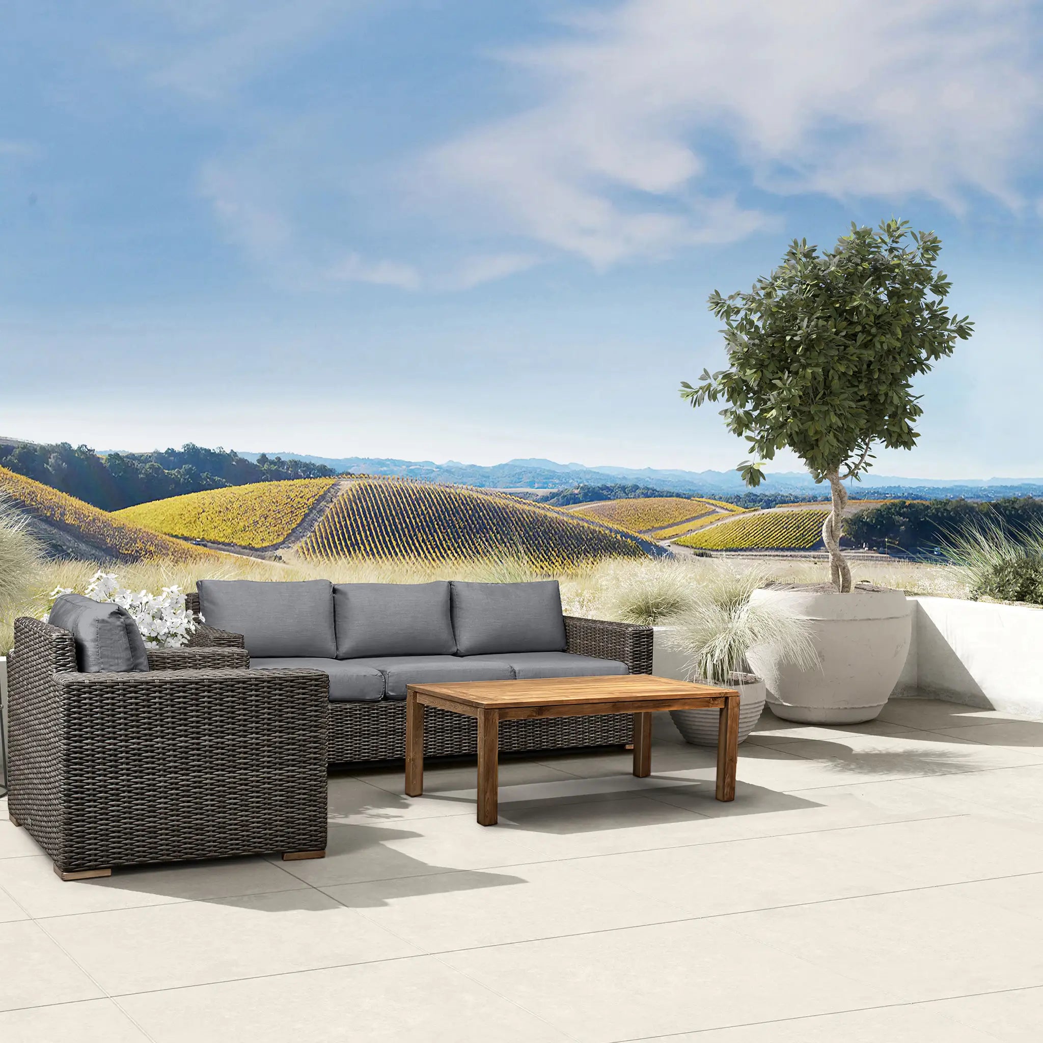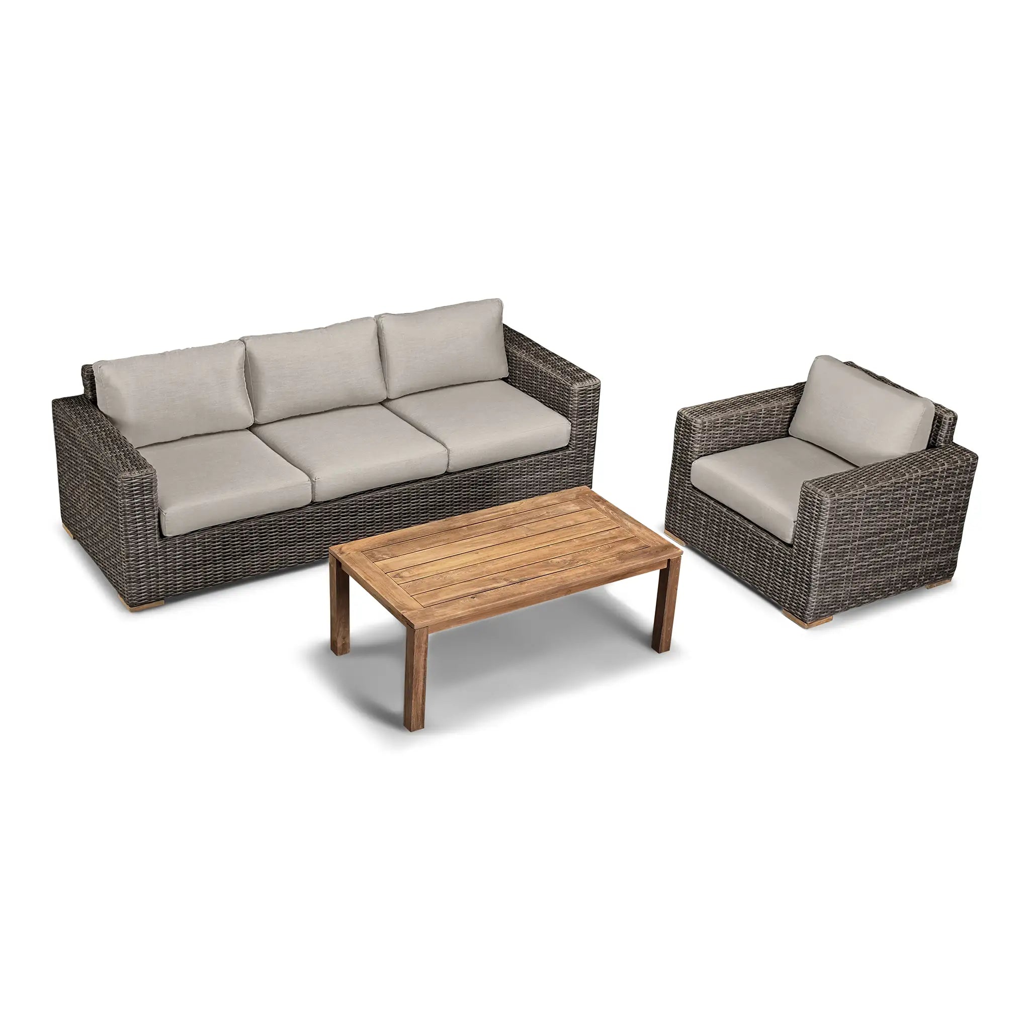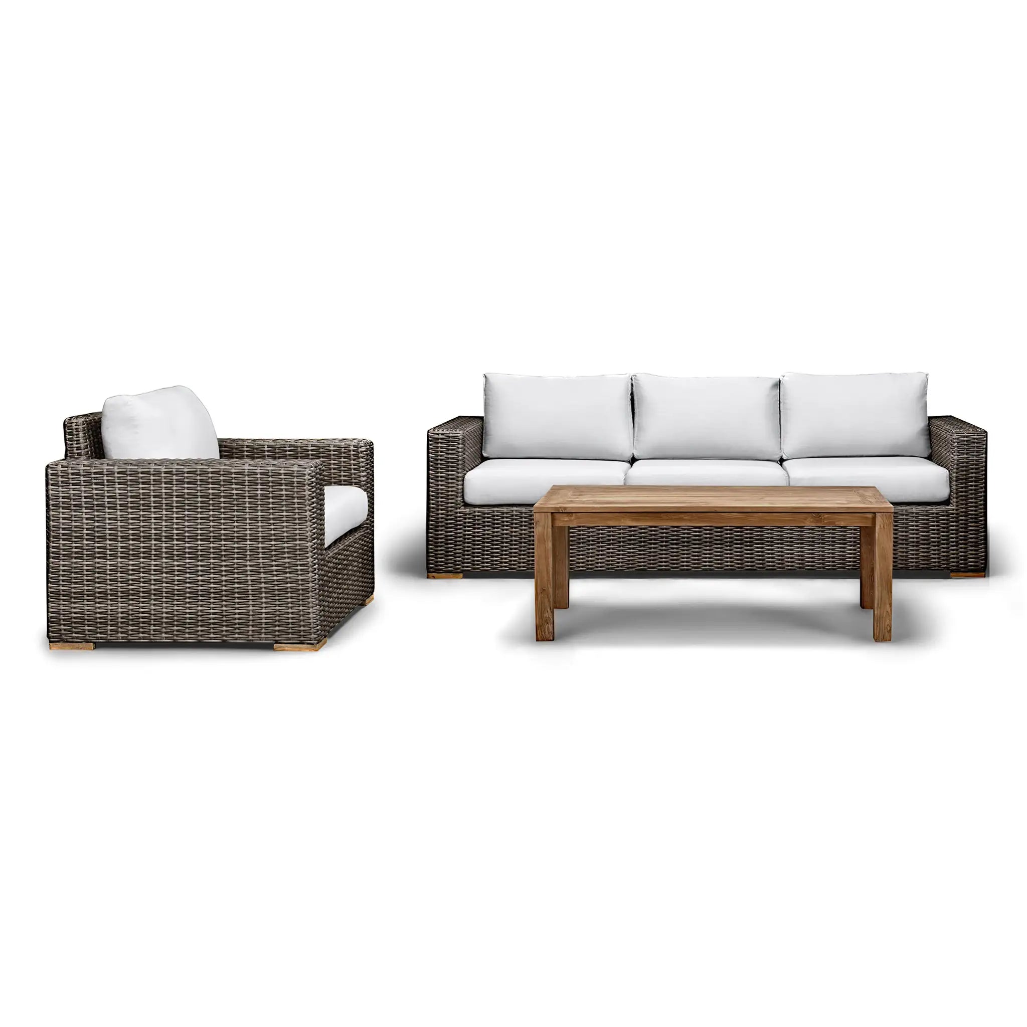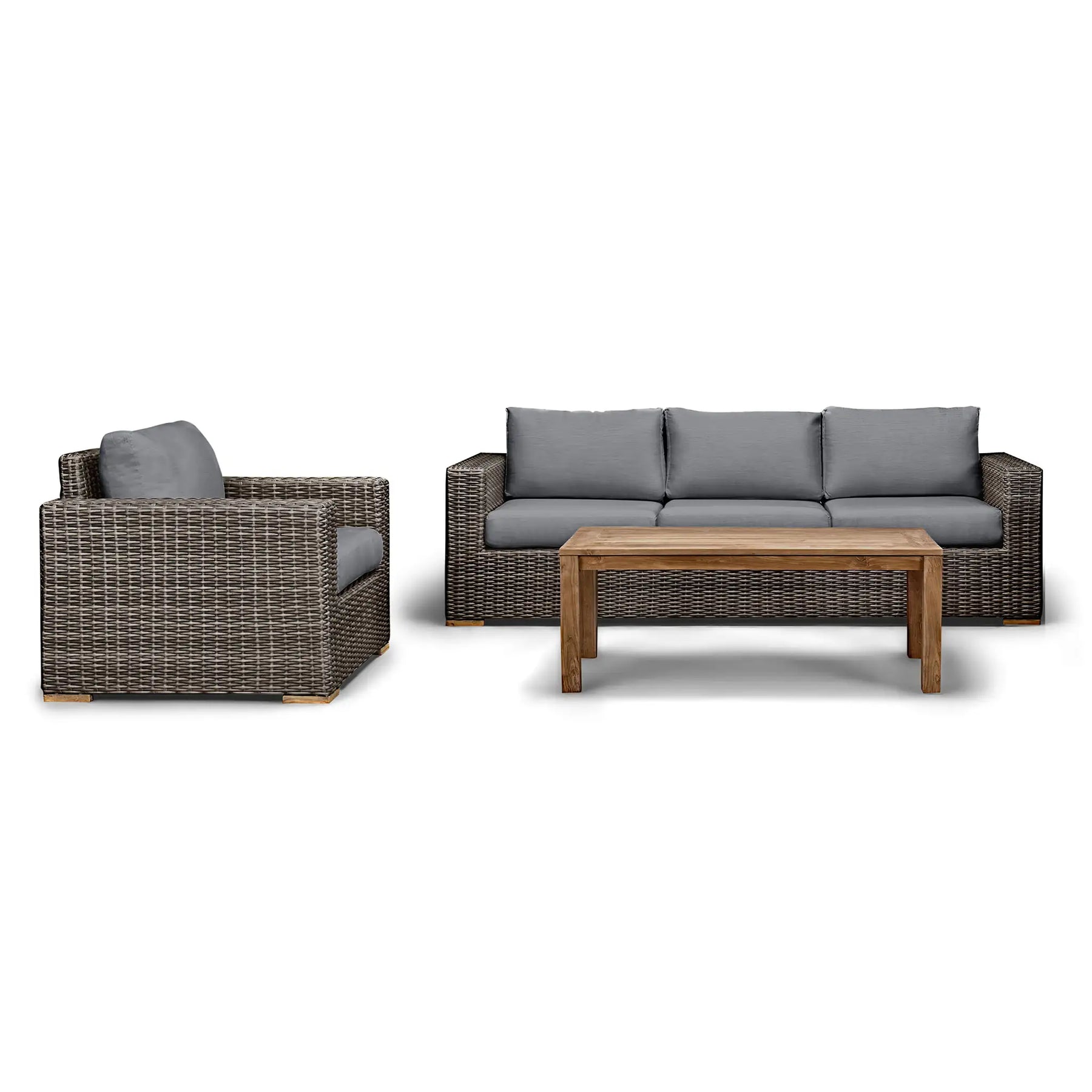 Designed for both residential and commercial settings, the Dune Teak 3 Piece Sofa Set offers a blend of sophistication, durability, and premium comfort, transforming any patio or outdoor lounge into a relaxing retreat.