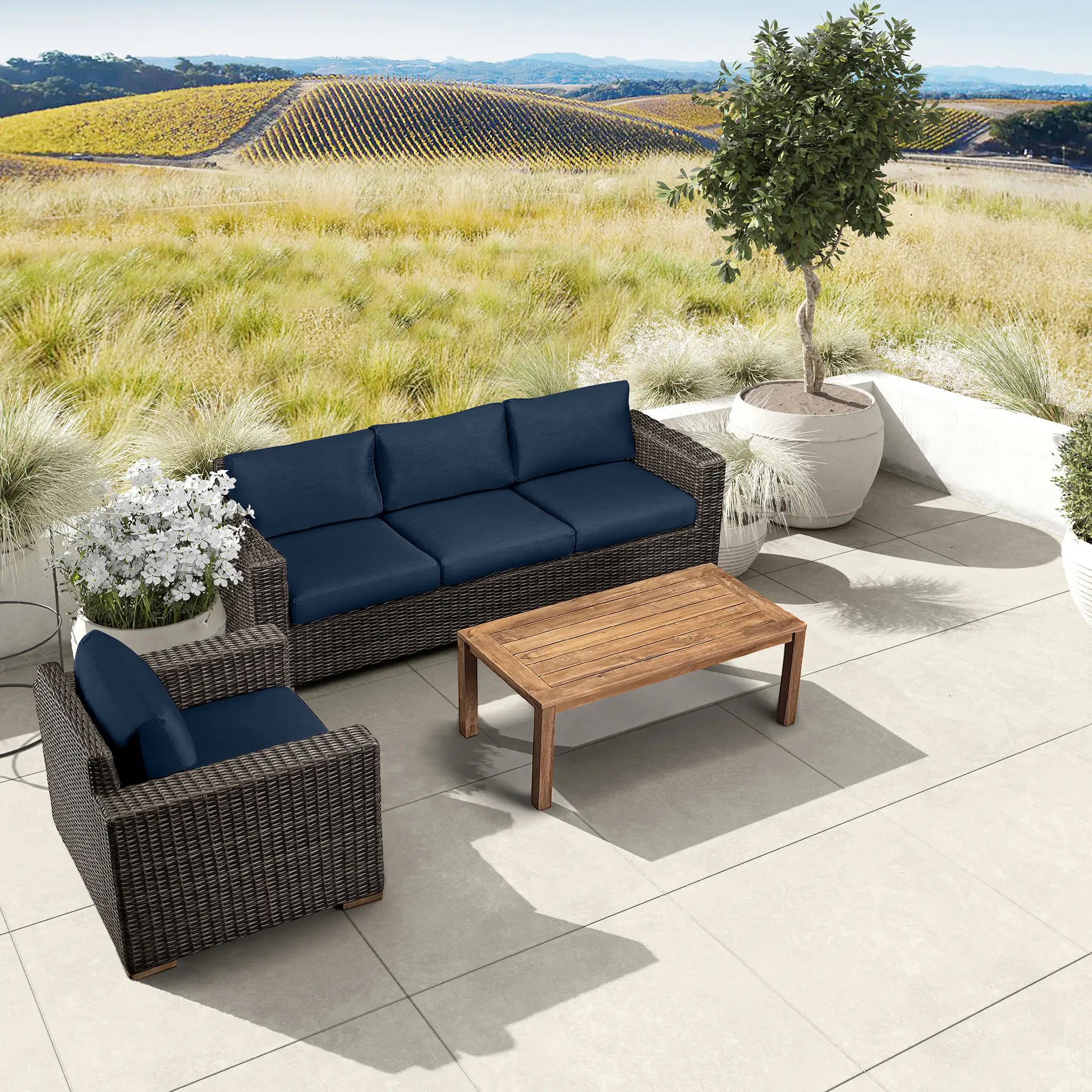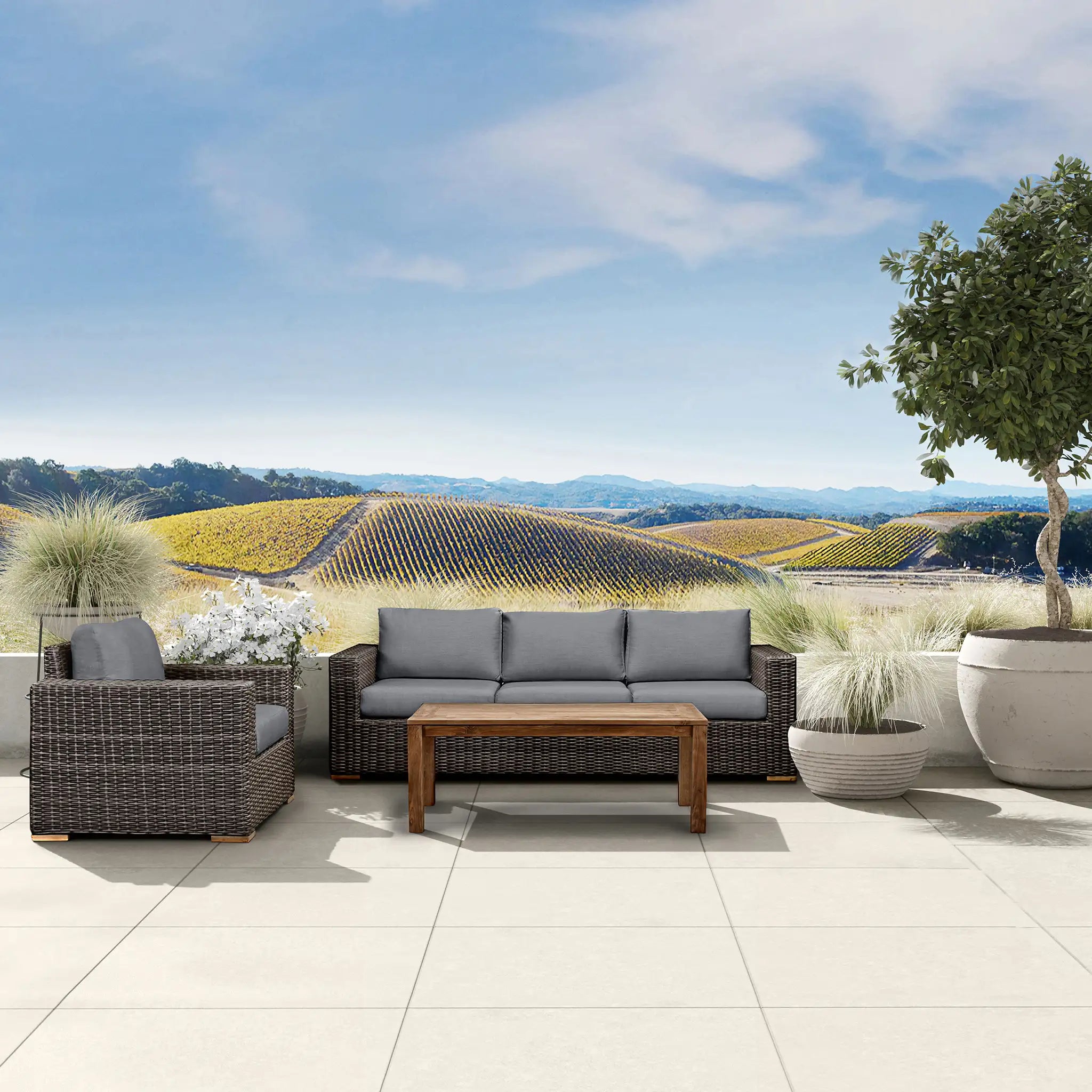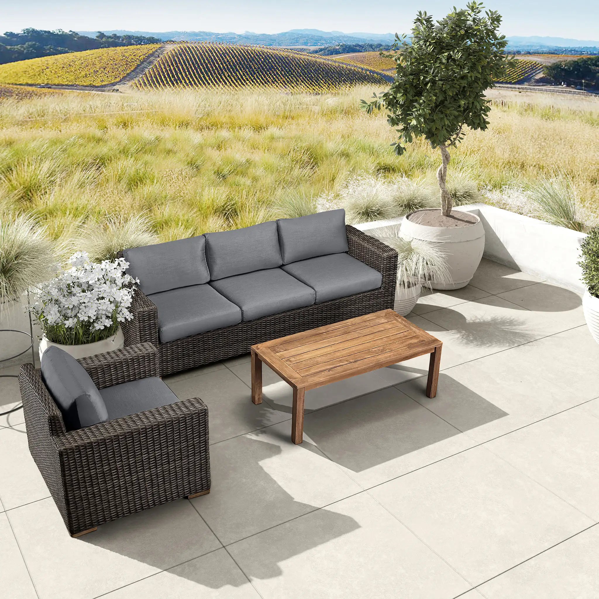 The Harmonia Living Viento Teak 3 Piece Aluminum Sofa Set blends timeless elegance, durable craftsmanship, and all-weather comfort, making it a perfect addition to any outdoor space.