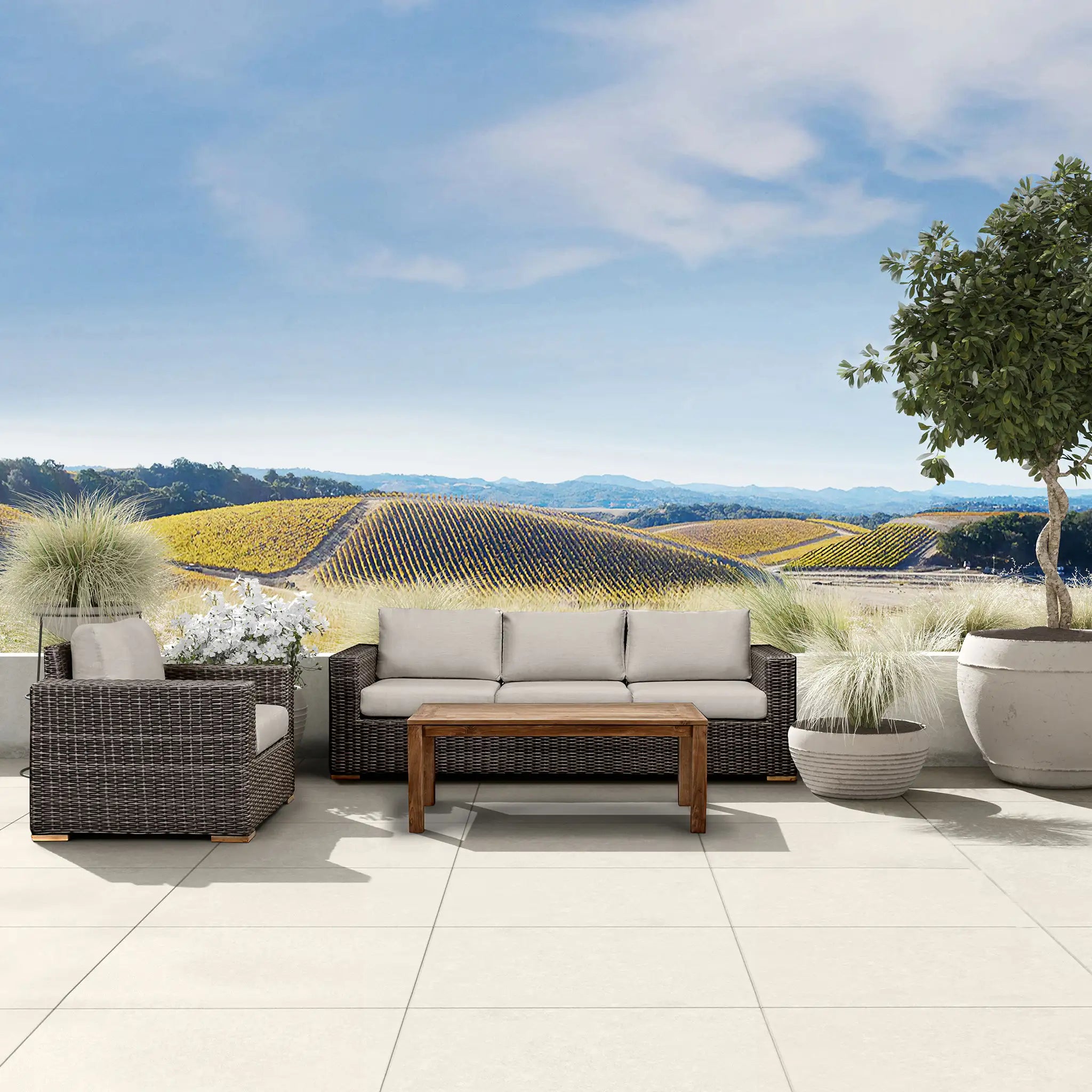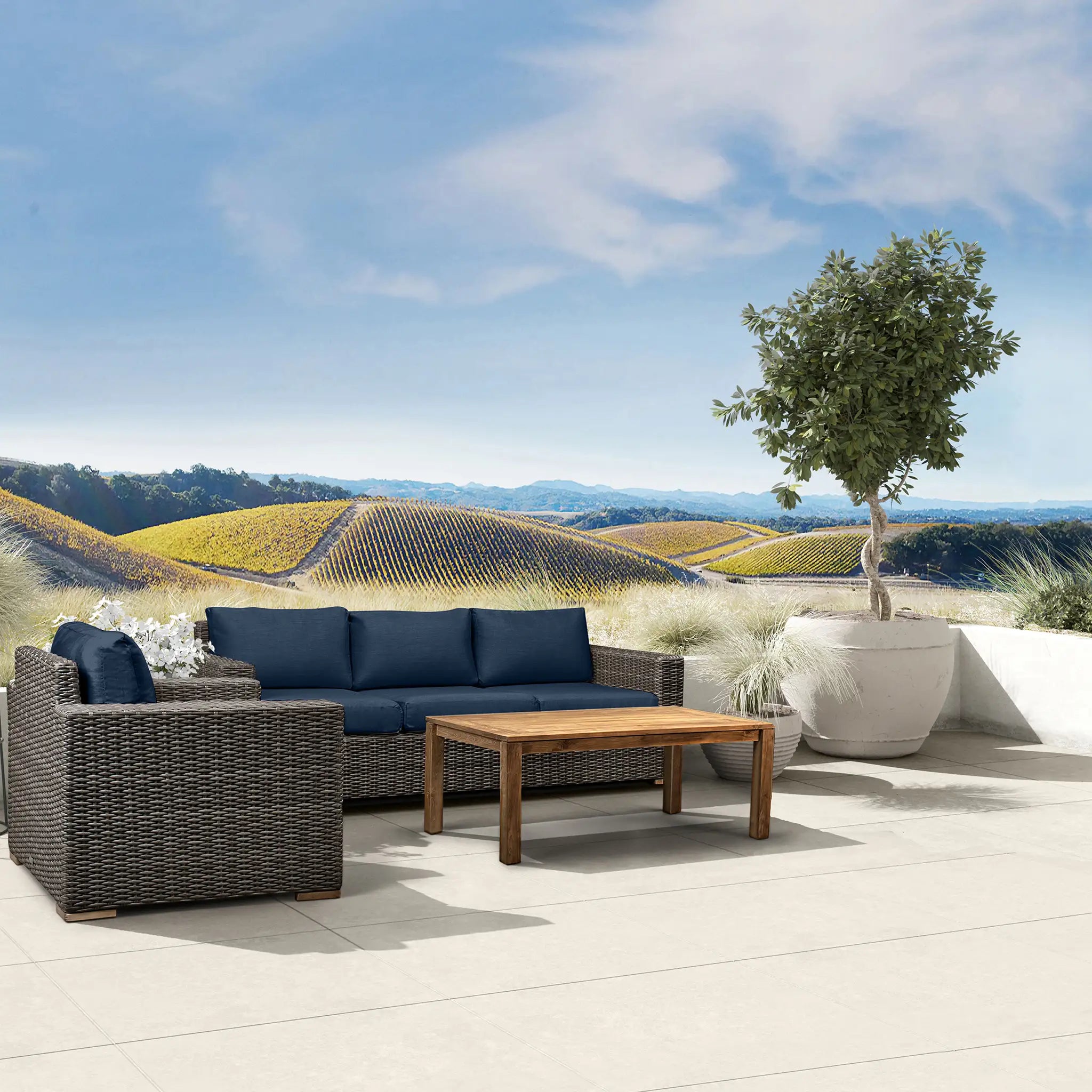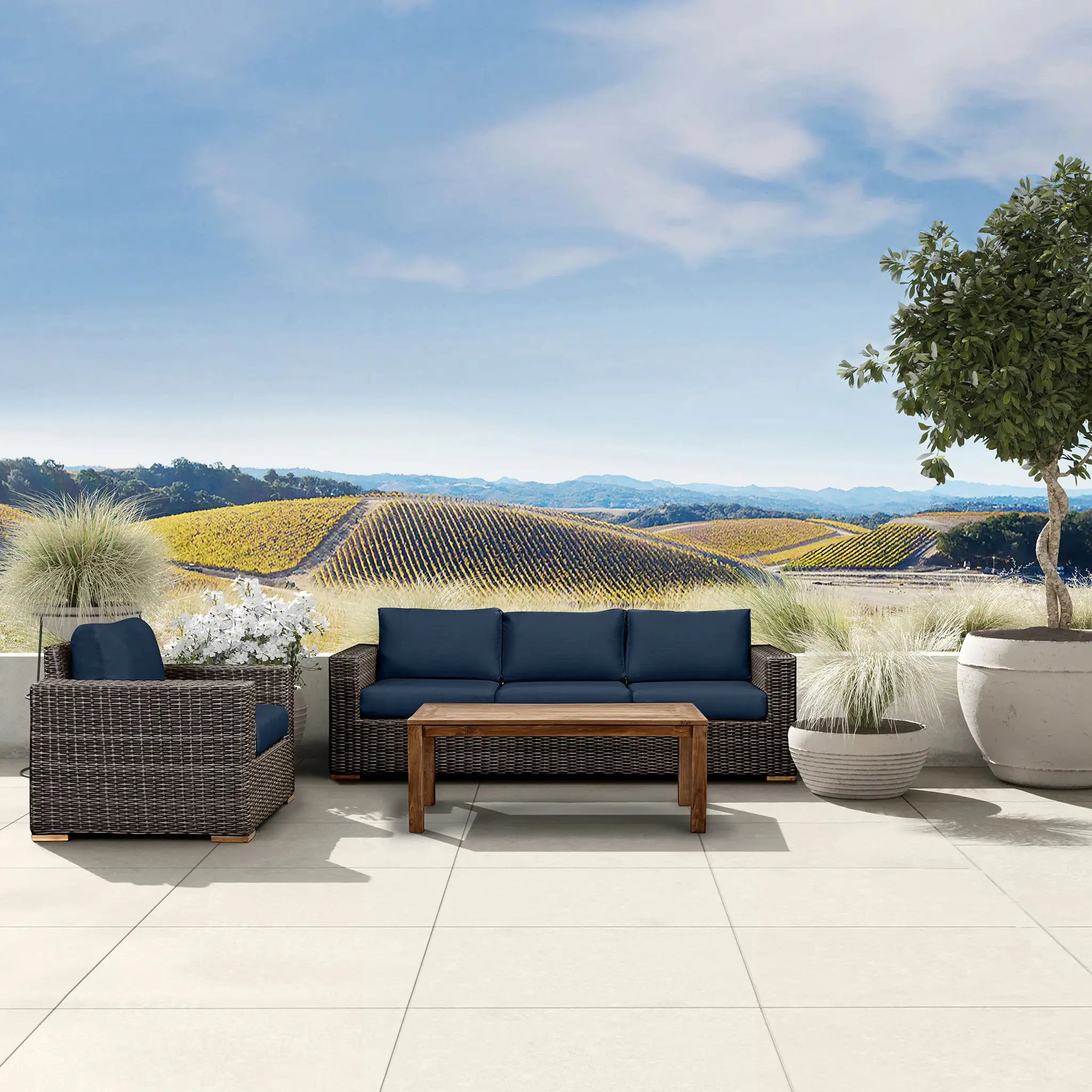 The Harmonia Living Viento Teak 3 Piece Aluminum Sofa Set blends timeless elegance, durable craftsmanship, and all-weather comfort, making it a perfect addition to any outdoor space.