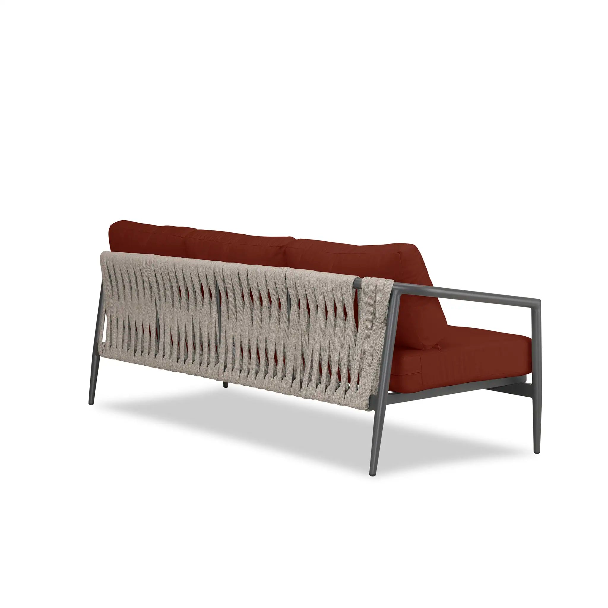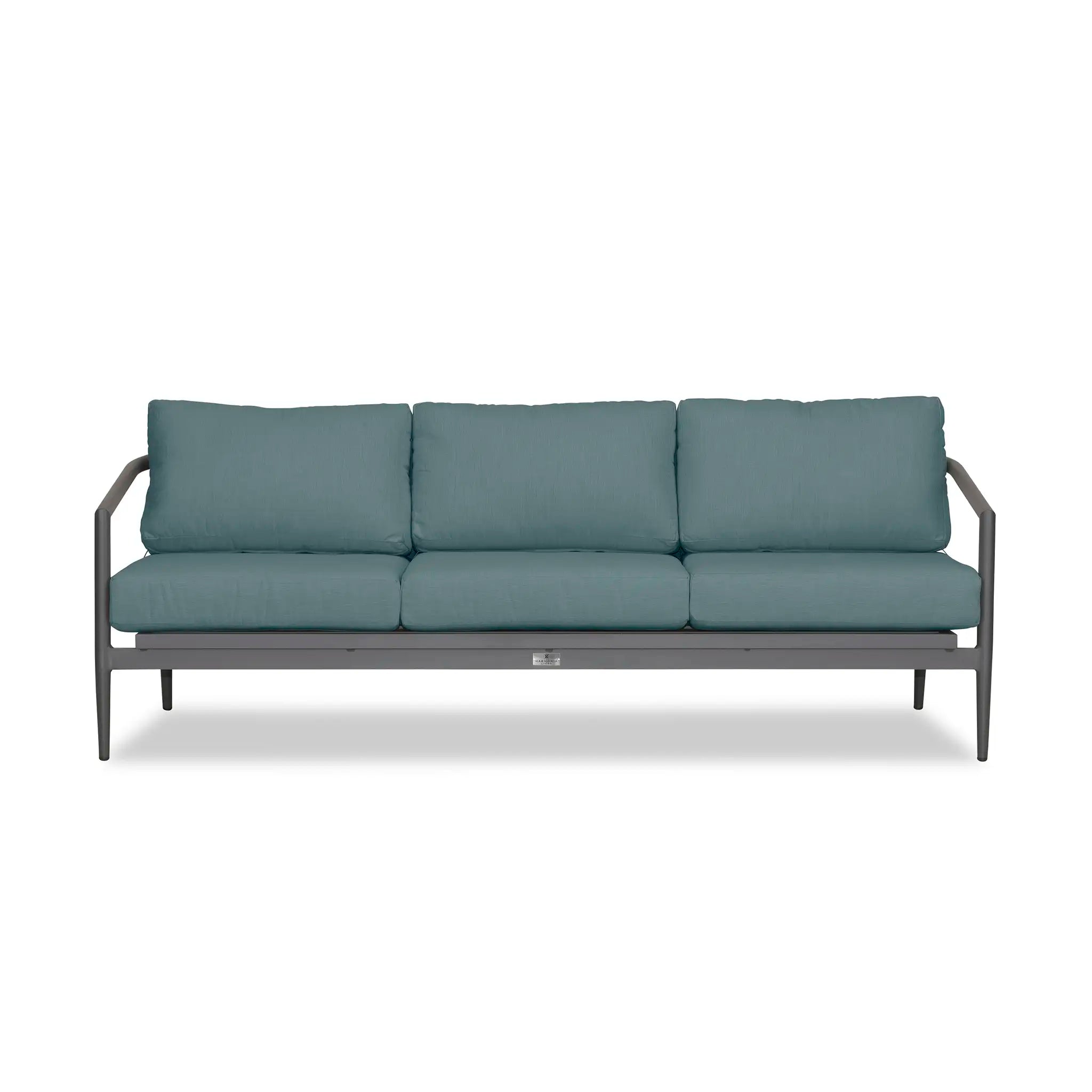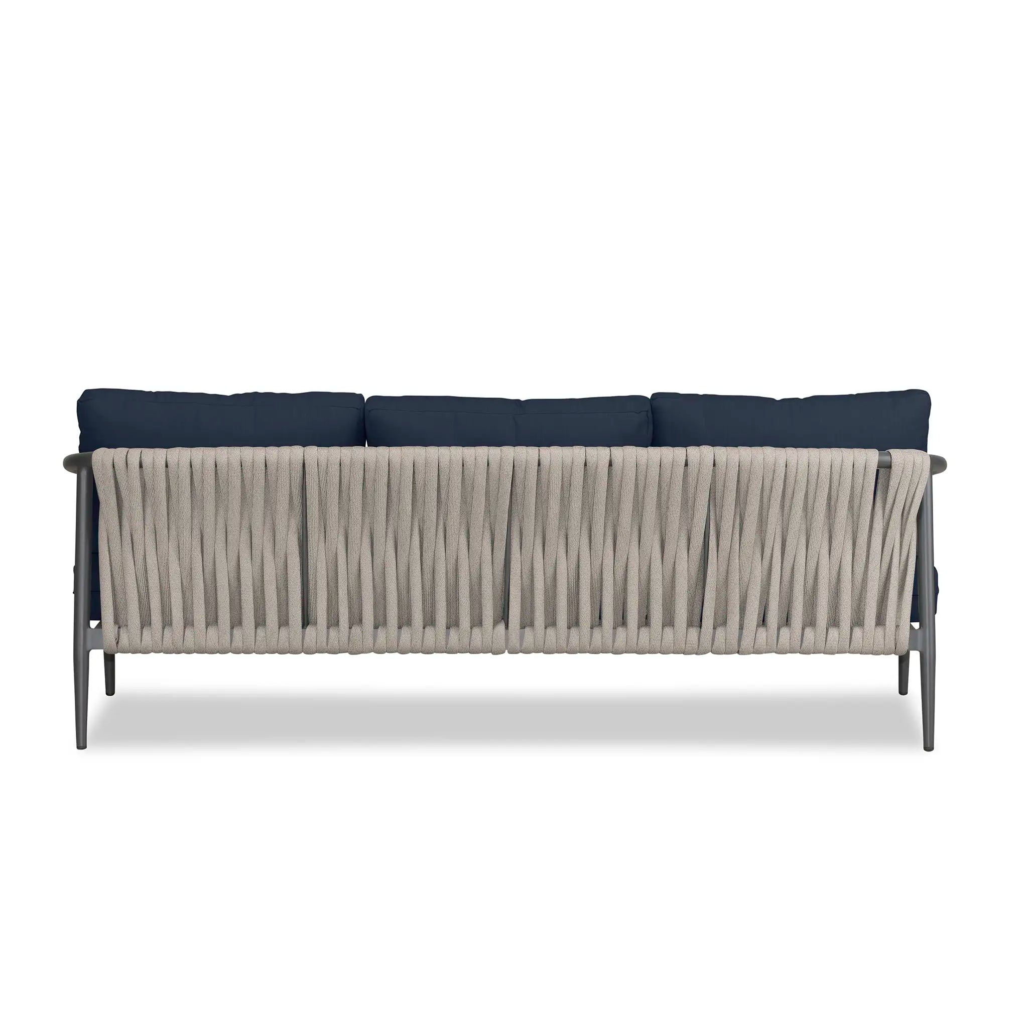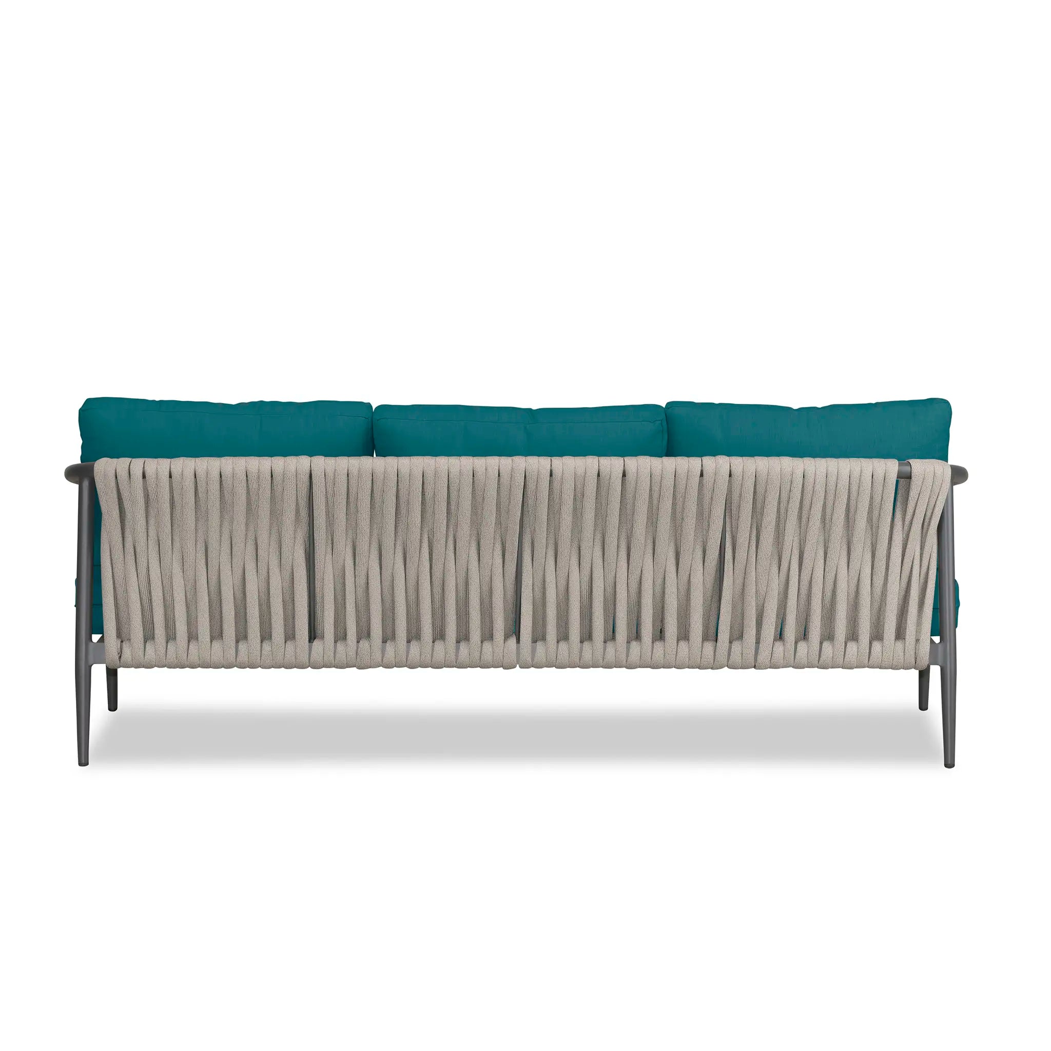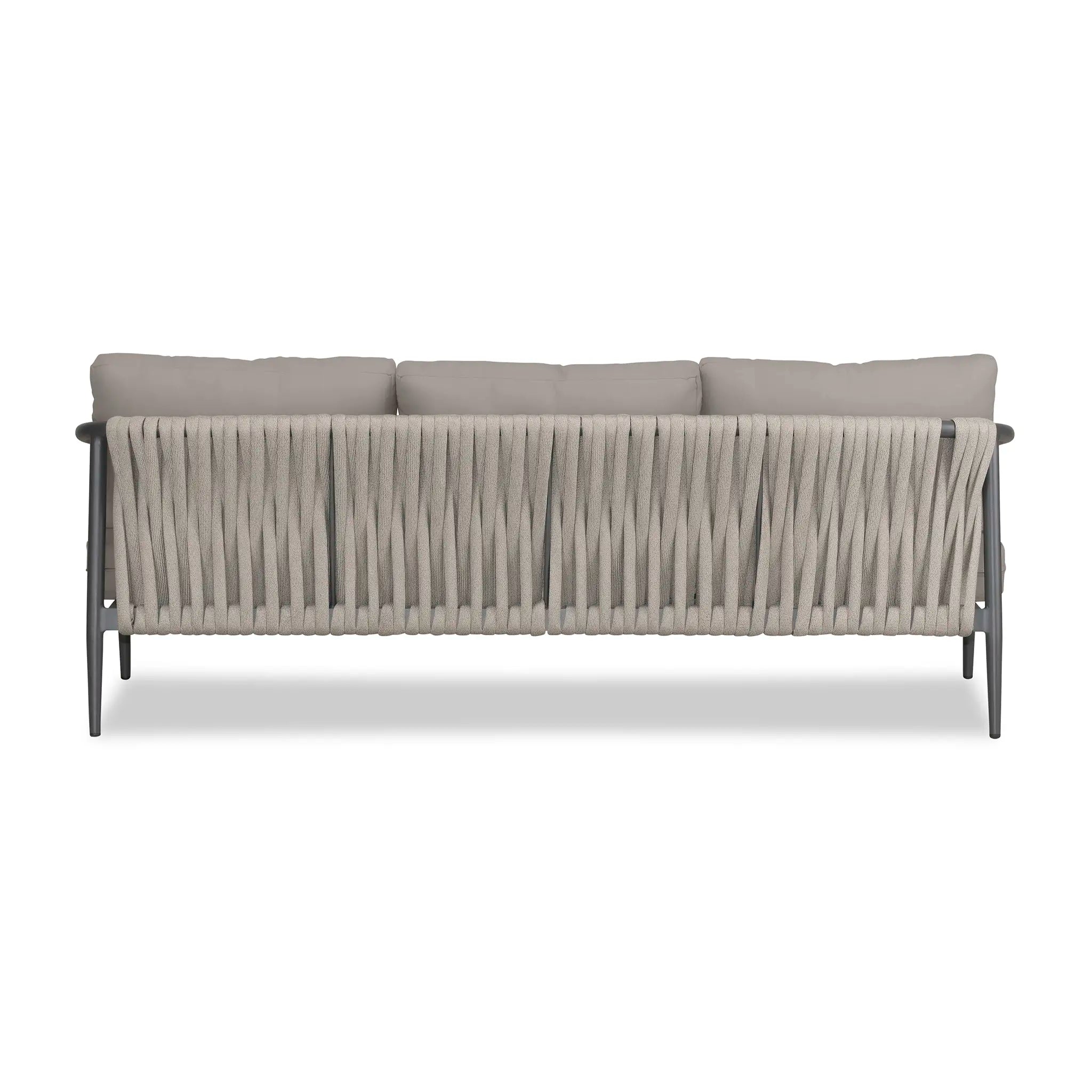 With a mixture of elegant materials, the Harmonia Living Olio Aluminum Sofa - Slate/Pebble Gray is a Mid-Century Modern design brought to life with Olefin rope. Accented with tapered legs, subtle curves, and an intertwining roped back, the sophisticated silhouette of the Olio collection is a true work of art. Designed with efficiency in mind, it features a compact footprint while still offering full-sized deep seating comfort.