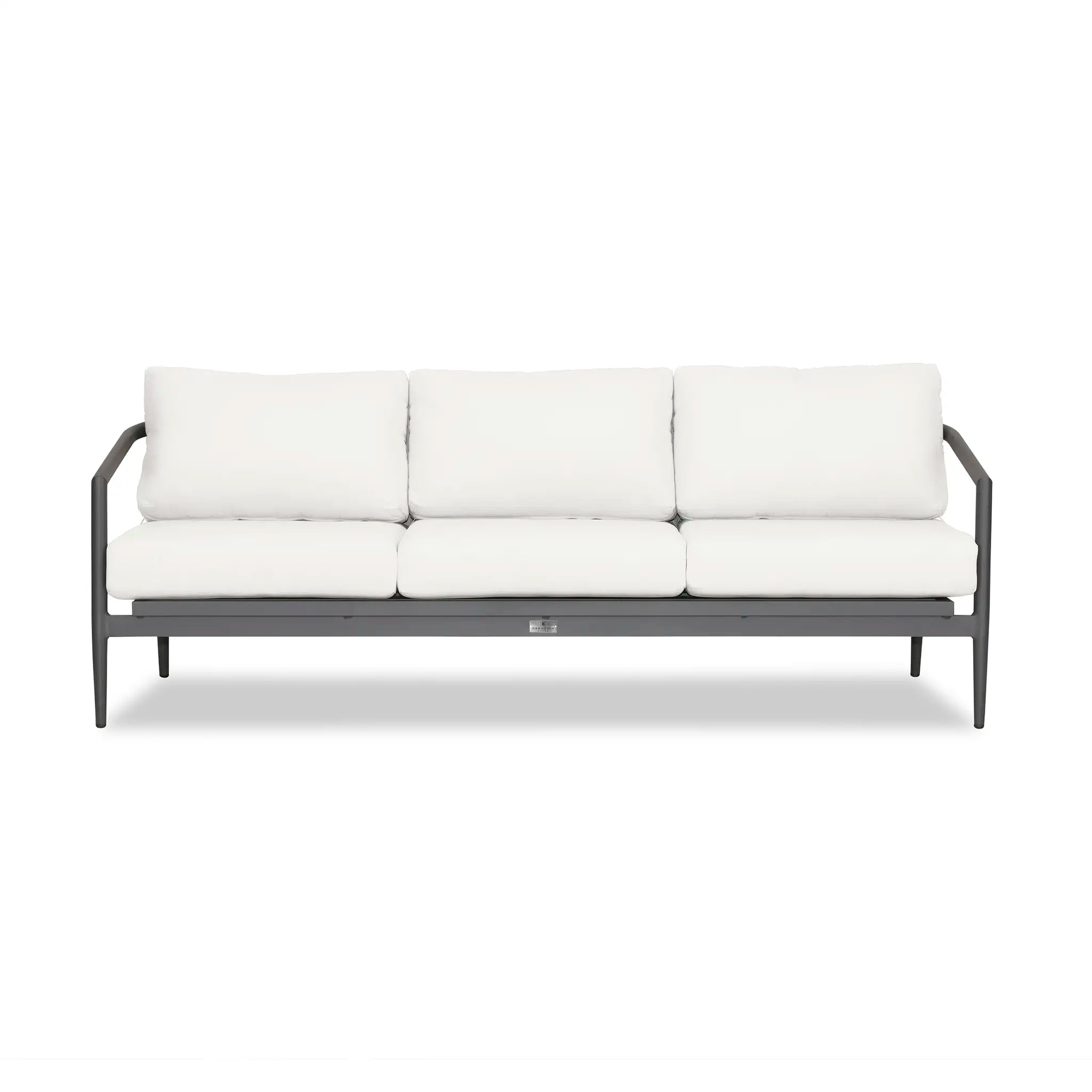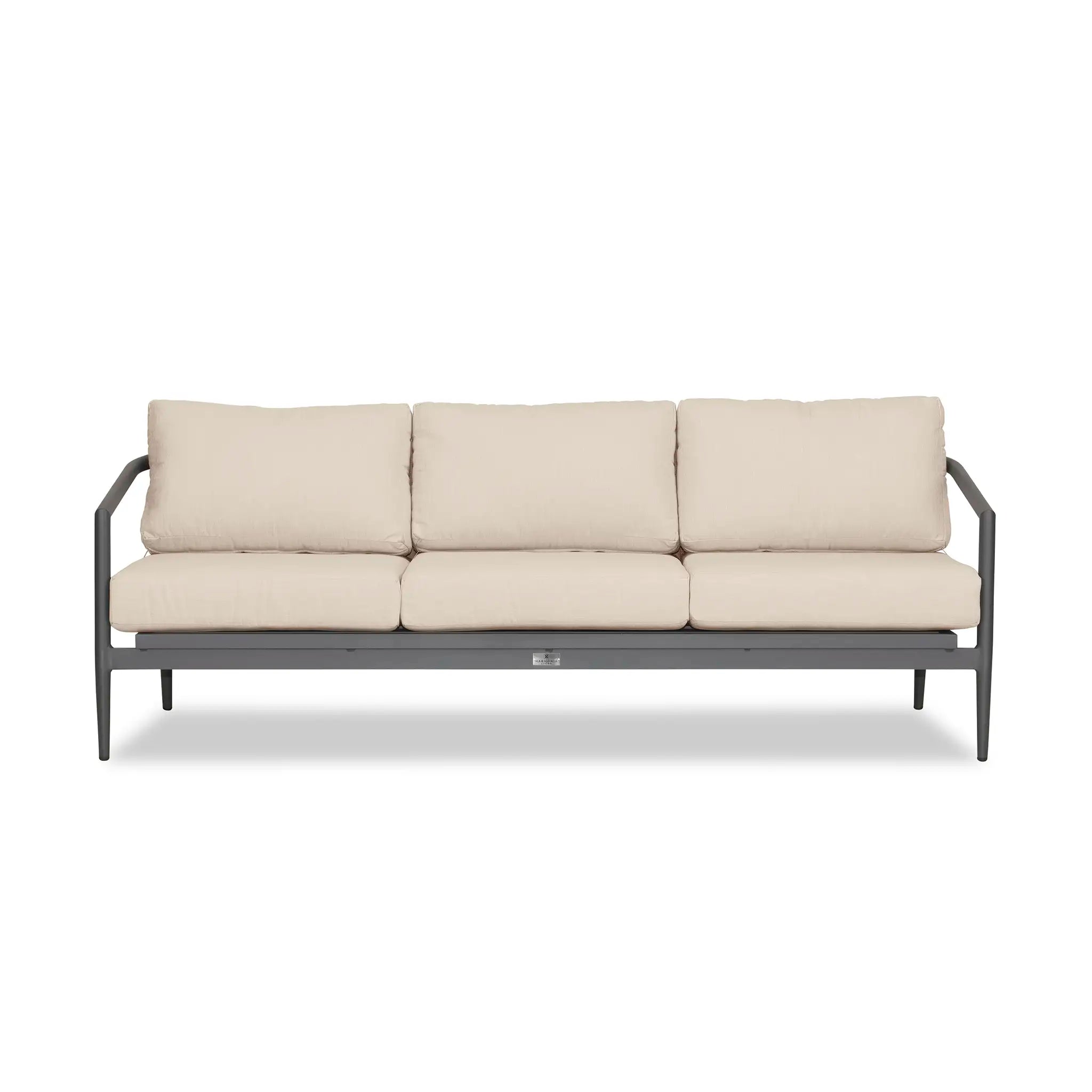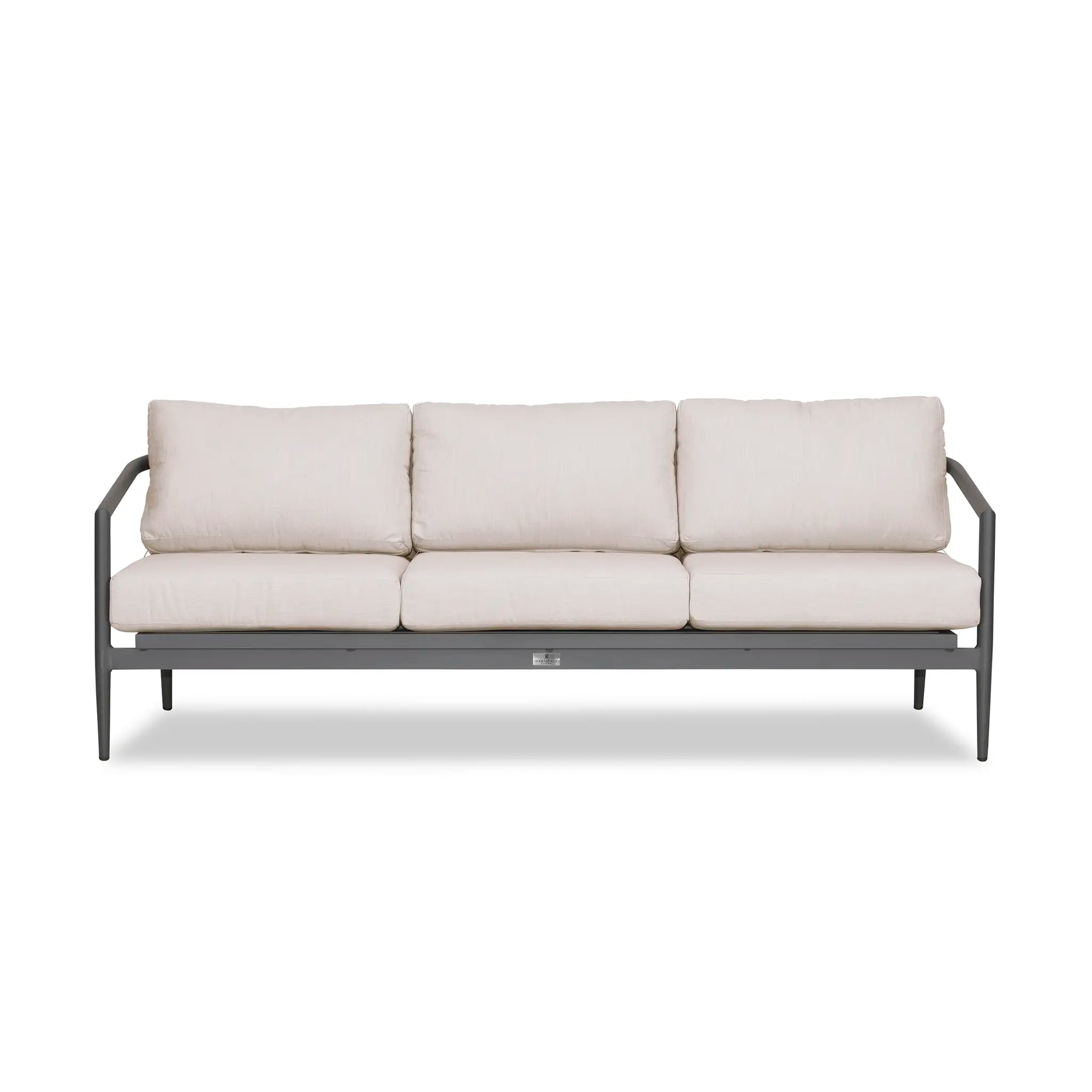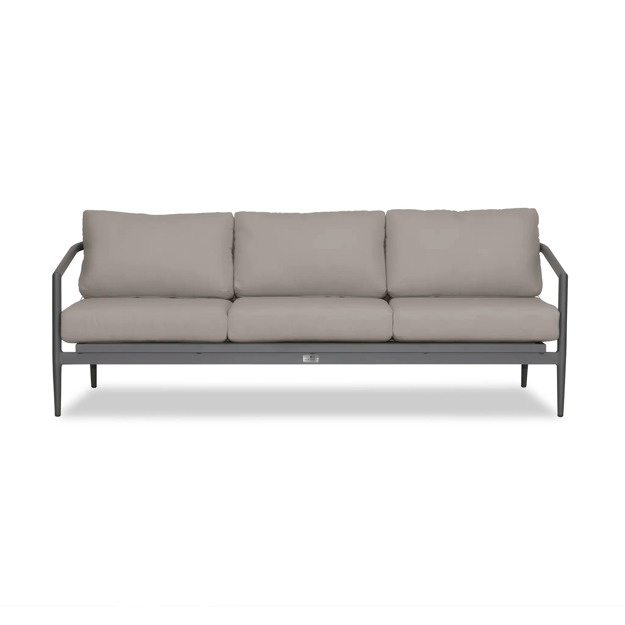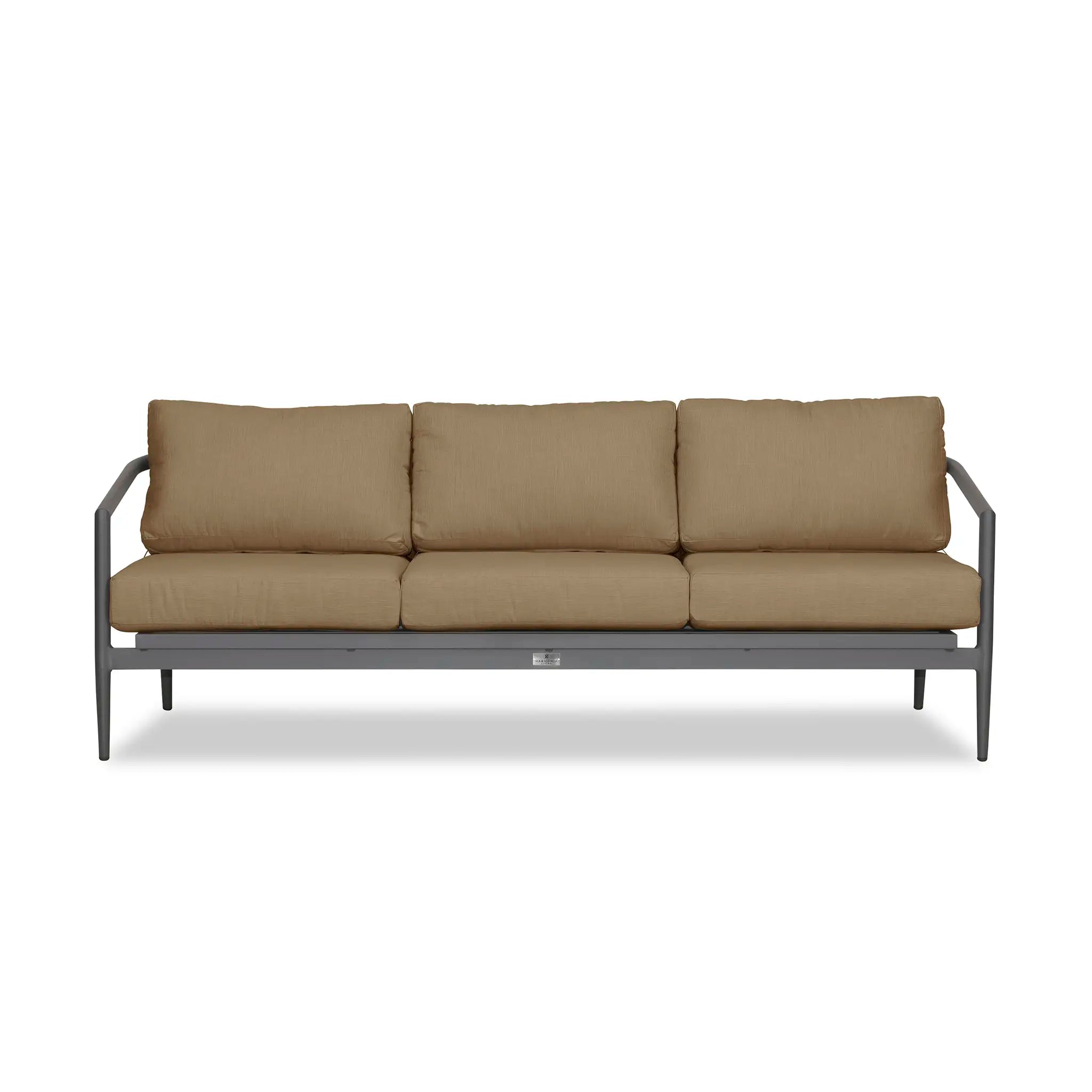 With a mixture of elegant materials, the Harmonia Living Olio Aluminum Sofa - Slate/Pebble Gray is a Mid-Century Modern design brought to life with Olefin rope. Accented with tapered legs, subtle curves, and an intertwining roped back, the sophisticated silhouette of the Olio collection is a true work of art. Designed with efficiency in mind, it features a compact footprint while still offering full-sized deep seating comfort.
