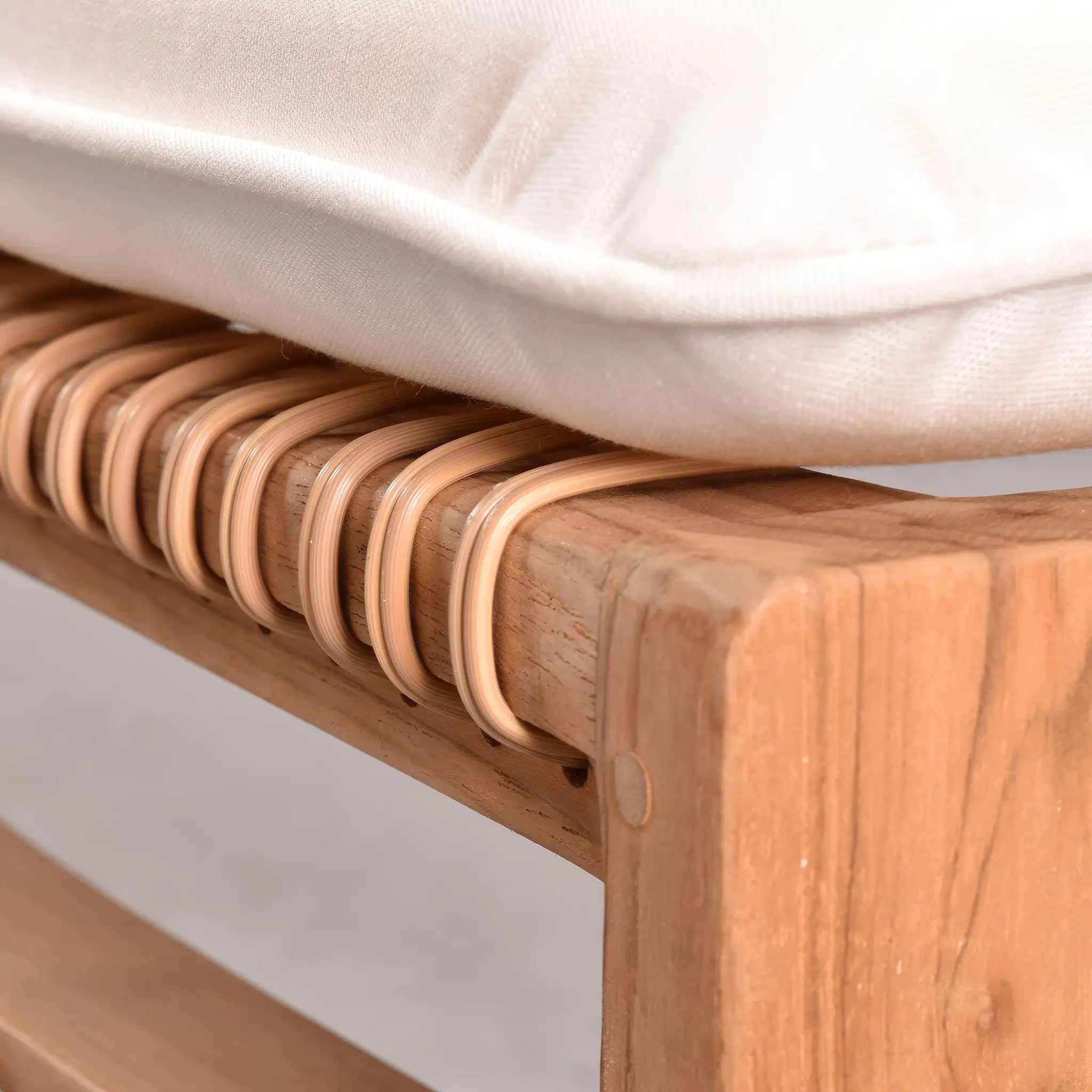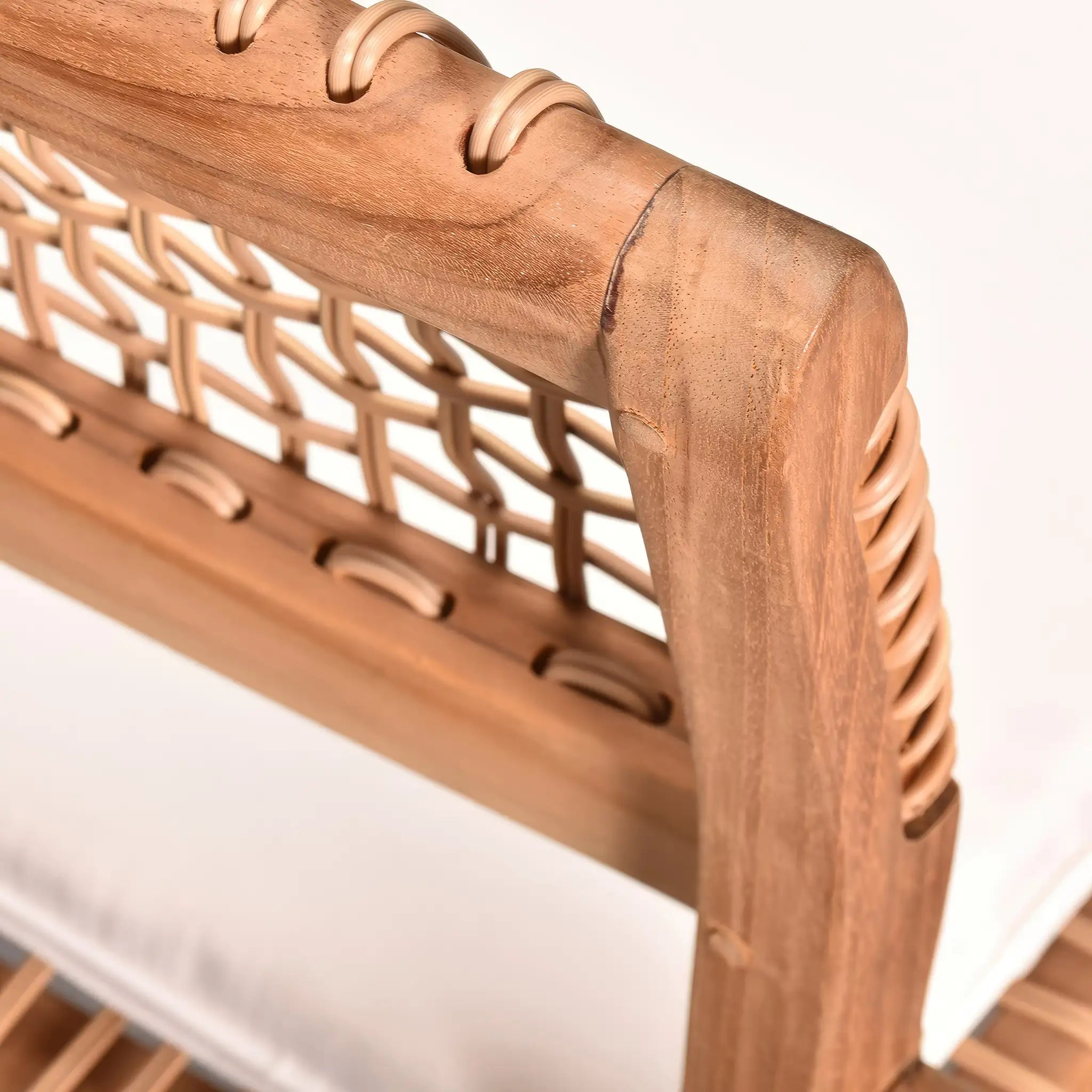 The Sands Dining Chairs feature handwoven High-Density Polyethylene (HDPE) wicker, a premium material known for its exceptional durability and resistance to cracking, fading, and wear. Infused with rich color throughout, the Sand Dune wicker finish mimics the natural texture of rattan while offering superior performance against the elements. This combination of teak and wicker not only enhances visual interest but also ensures that each piece remains stunning and functional for years to come.