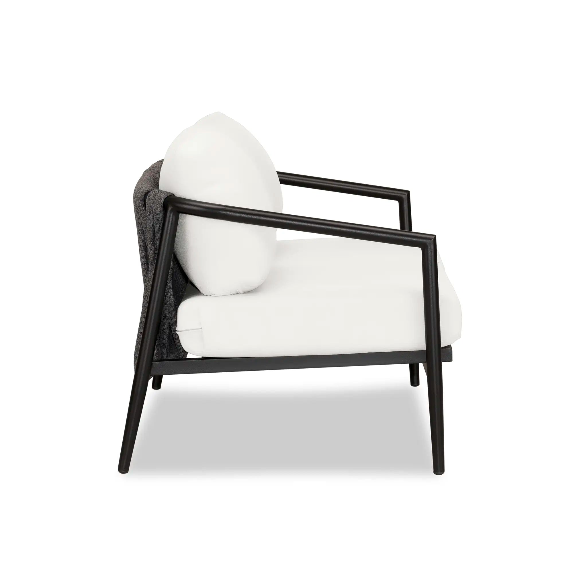 Built for lasting durability, the fully-welded aluminum frame is powder-coated for enhanced weather resistance and longevity. The elegant Olefin rope detailing is more than just a visual statement-it provides reinforced durability, resistance to the elements, and a unique textural contrast to the sleek frame. The USA-made cushions feature quick-drying Dacron fill and UV-treated, marine-grade PremoBond thread, ensuring they retain their shape, support, and comfort through changing seasons. Wrapped in premium Sunbrella, Outdura, and Revolution performance fabrics, these cushions come with a 5-year fade warranty and are designed to resist stains, mold, and mildew for effortless maintenance.