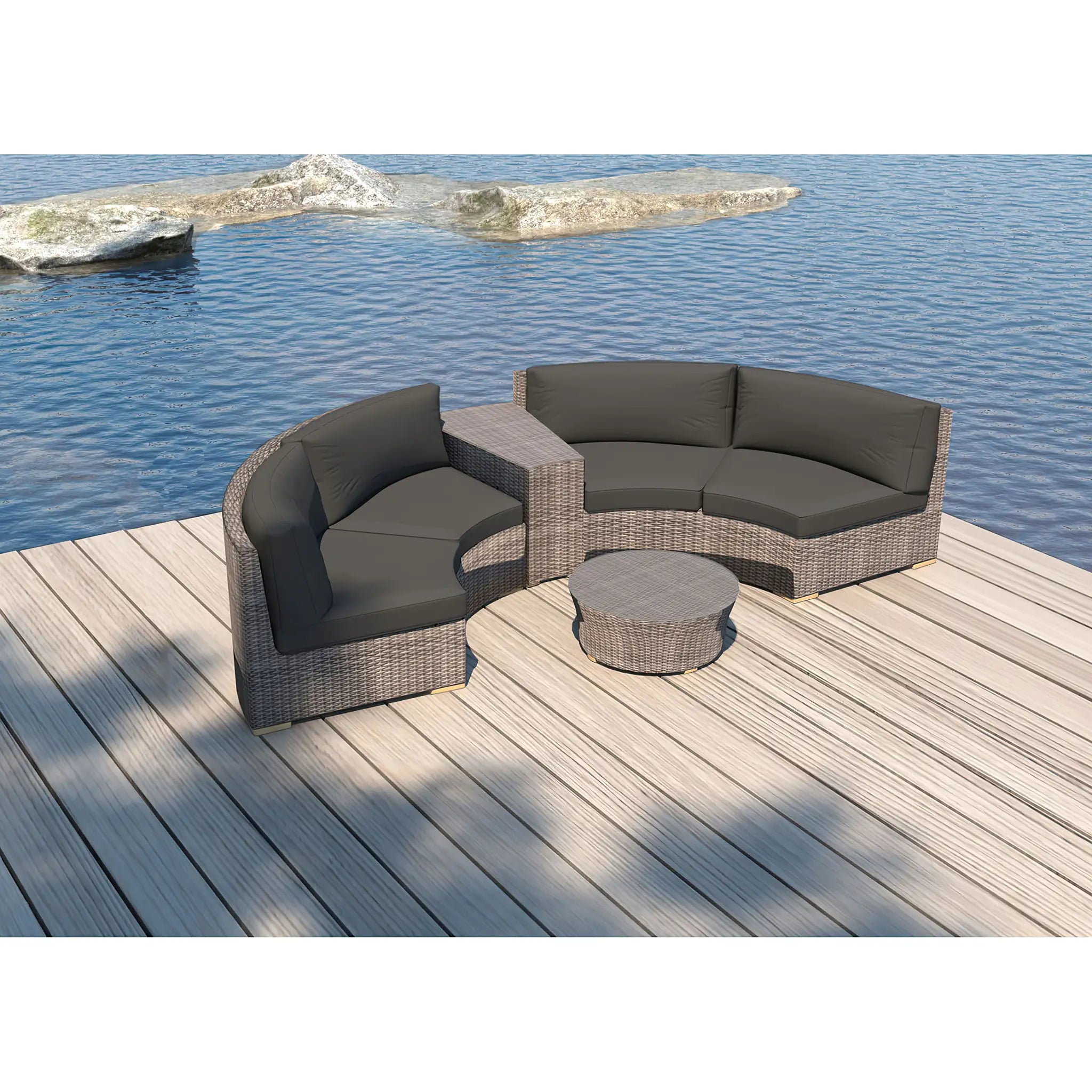 Designed to adapt to both residential and commercial spaces, the Dune 4 Piece Curve Sectional Set is a versatile and stylish addition to any patio, garden, or outdoor lounge area. Elevate your outdoor experience with the timeless craftsmanship and sophisticated design of Harmonia Living.