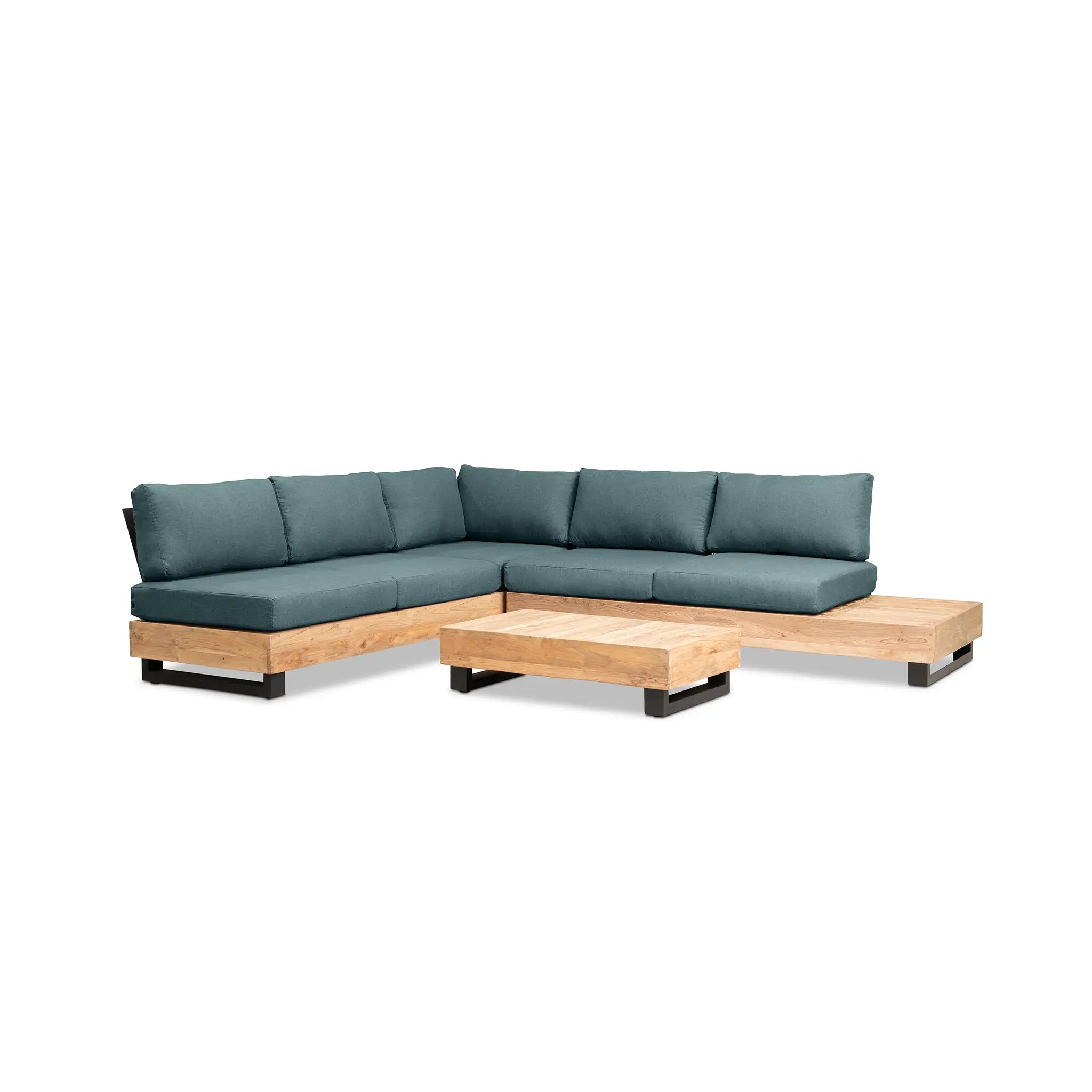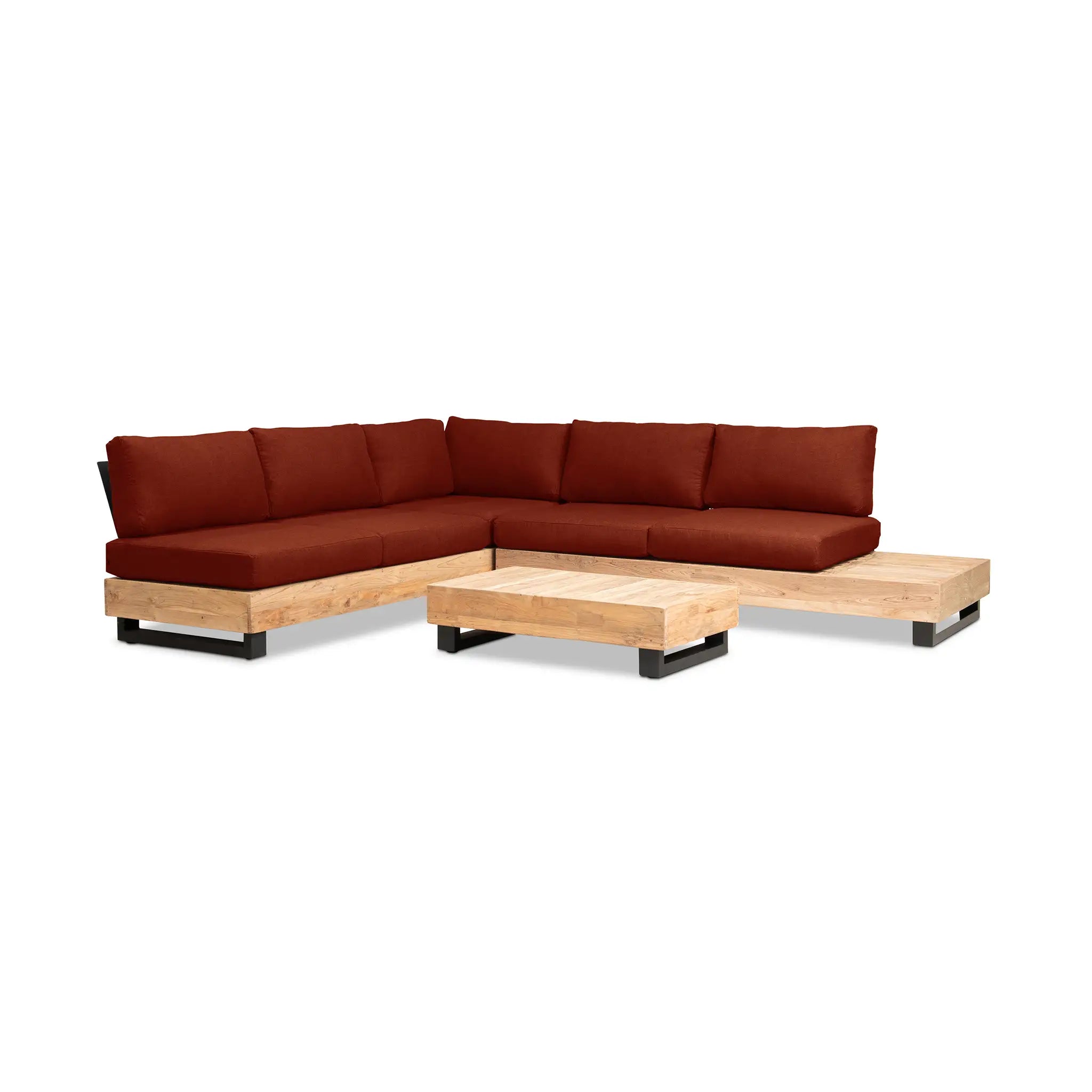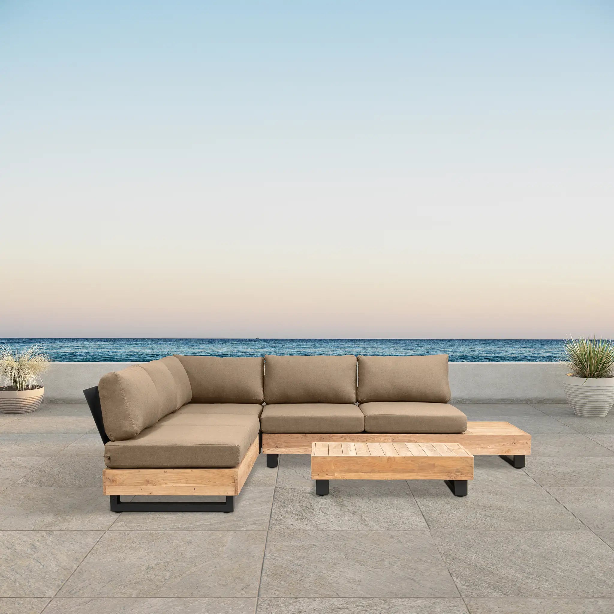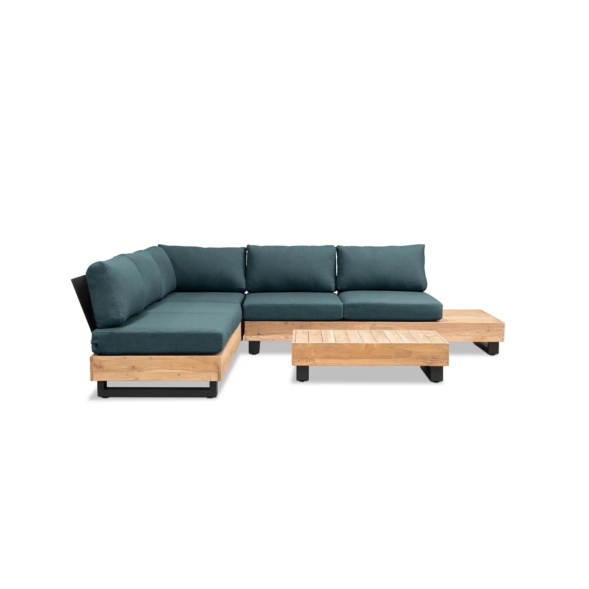Crafted with integrity, sustainability, and expert craftsmanship, this low-profile sectional is simplistic yet inviting, offering a natural touch and timeless appeal. The fully-welded aluminum frame is treated with a powder-coated finish, ensuring long-lasting durability in all seasons. The seating and tabletop are made from Grade A reclaimed teak, sourced from 100% FSC Certified® Indonesian teak, meaning no new trees were harvested. This not only enhances the organic beauty of the furniture but also makes each piece a one-of-a-kind work of art.