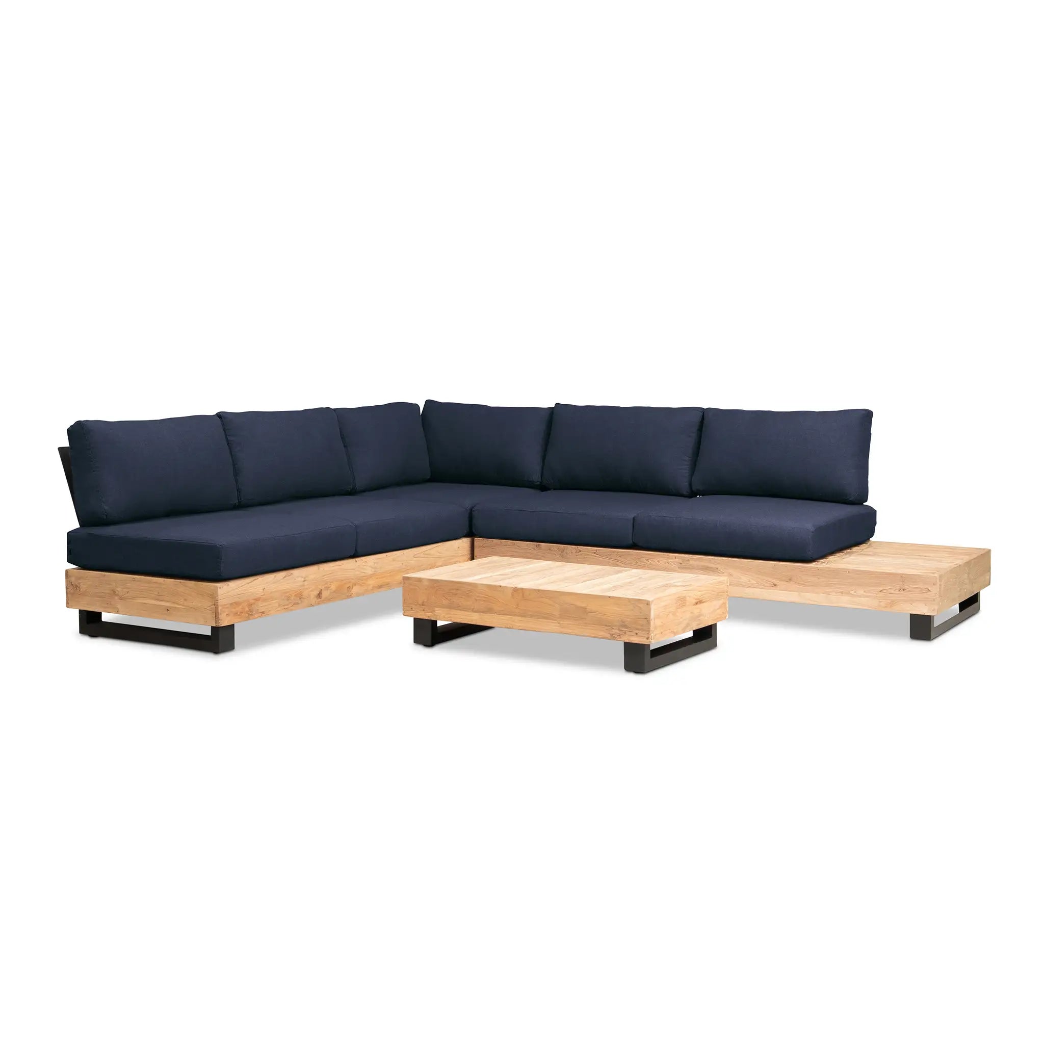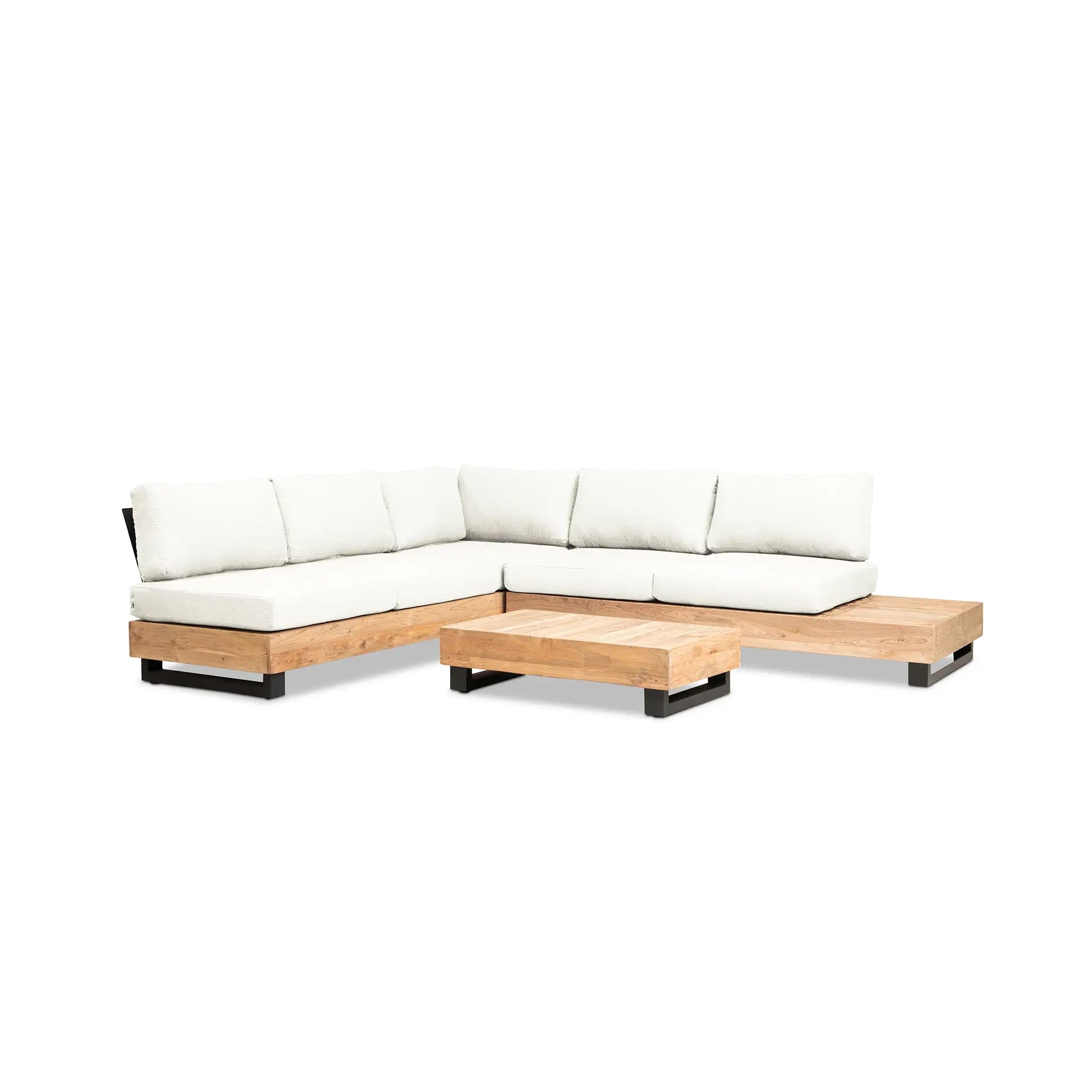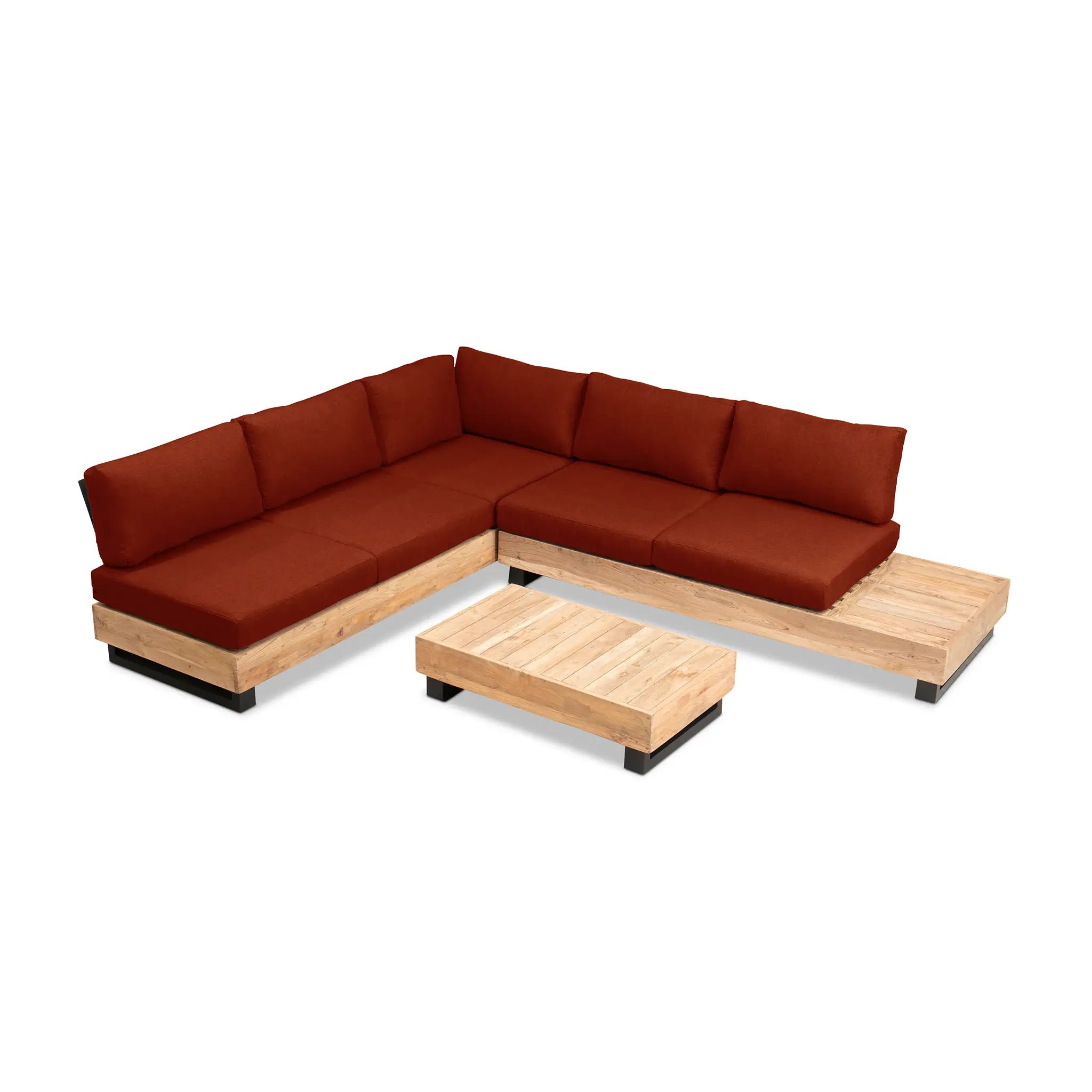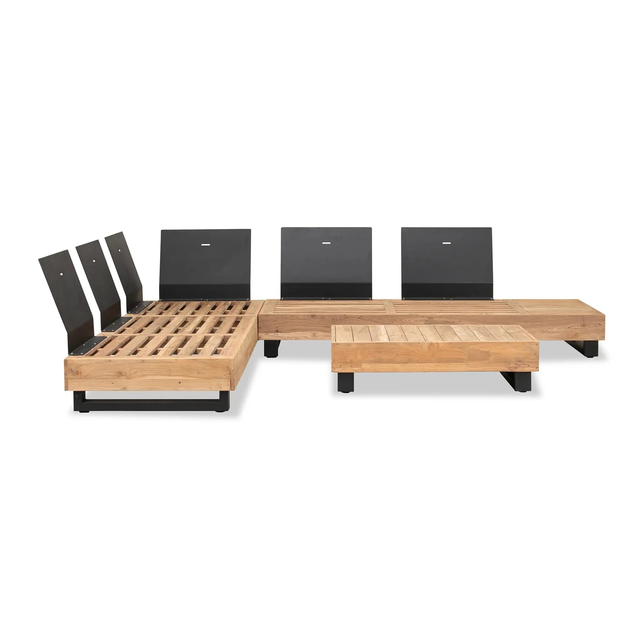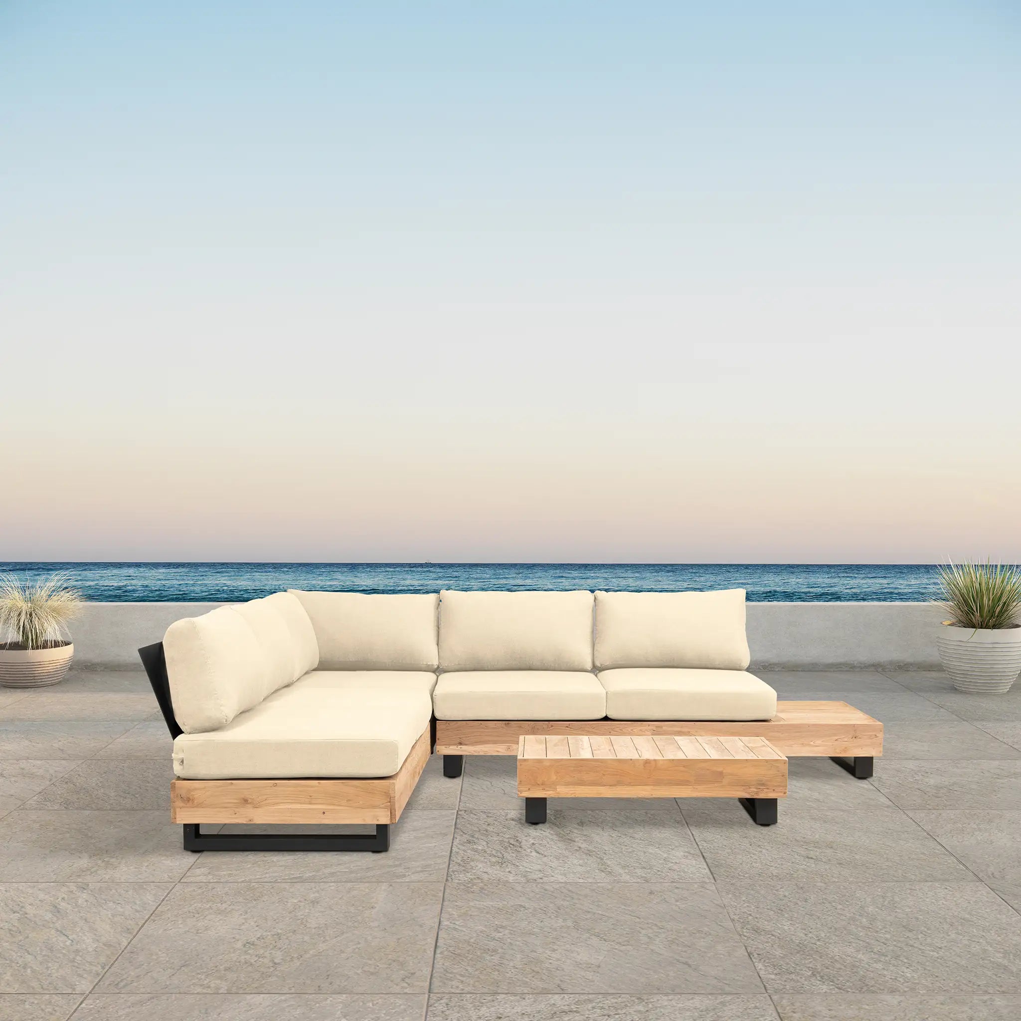 Crafted with integrity, sustainability, and expert craftsmanship, this low-profile sectional is simplistic yet inviting, offering a natural touch and timeless appeal. The fully-welded aluminum frame is treated with a powder-coated finish, ensuring long-lasting durability in all seasons. The seating and tabletop are made from Grade A reclaimed teak, sourced from 100% FSC Certified® Indonesian teak, meaning no new trees were harvested. This not only enhances the organic beauty of the furniture but also makes each piece a one-of-a-kind work of art.