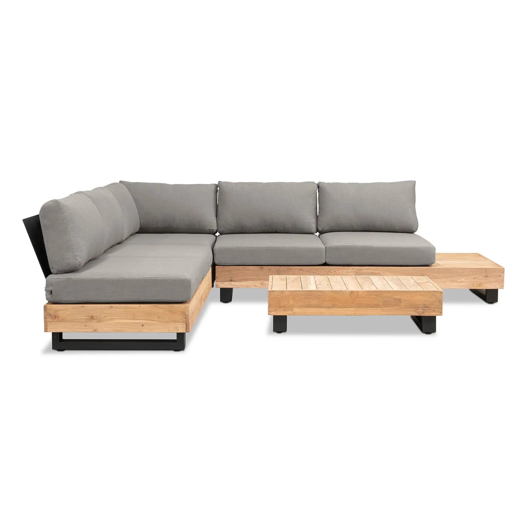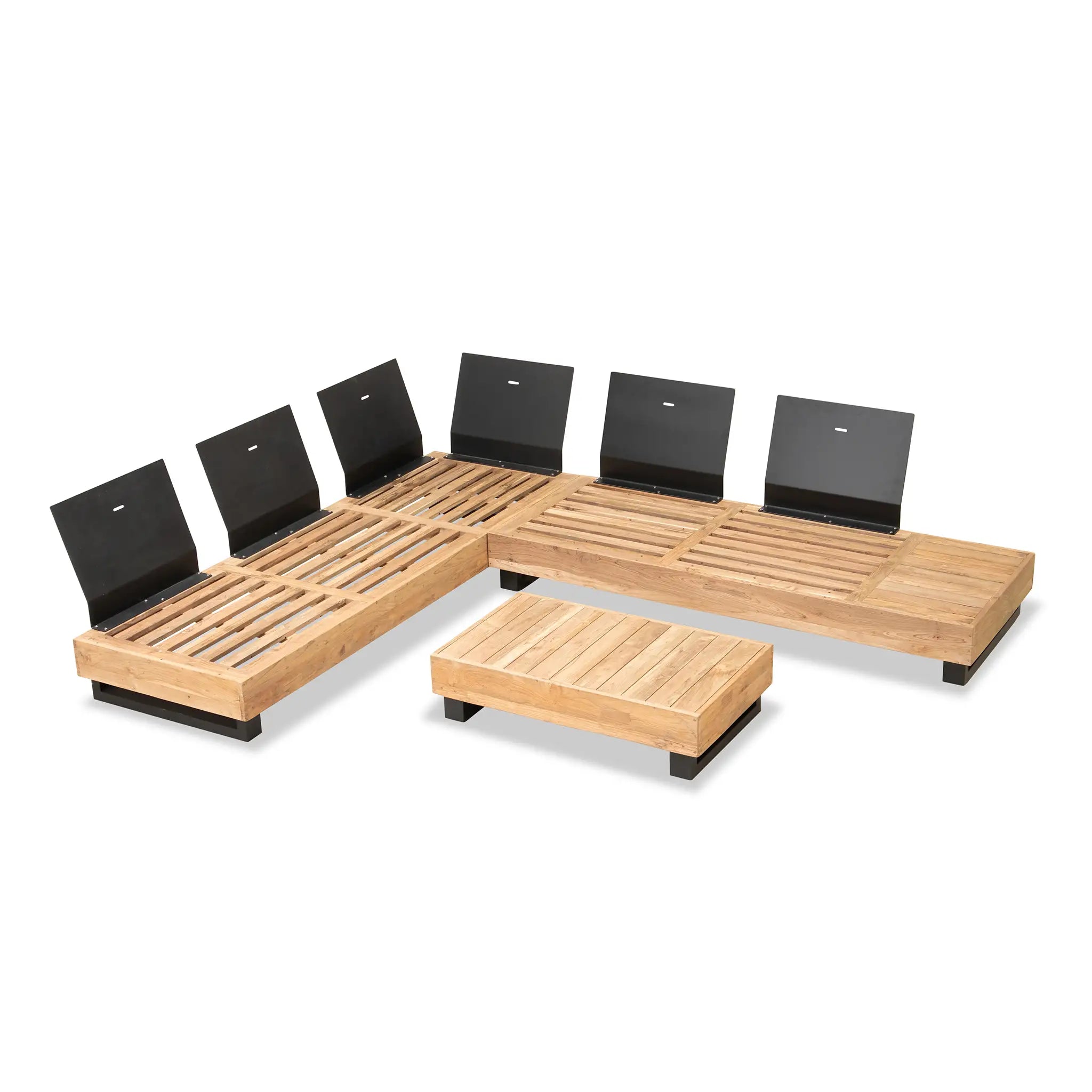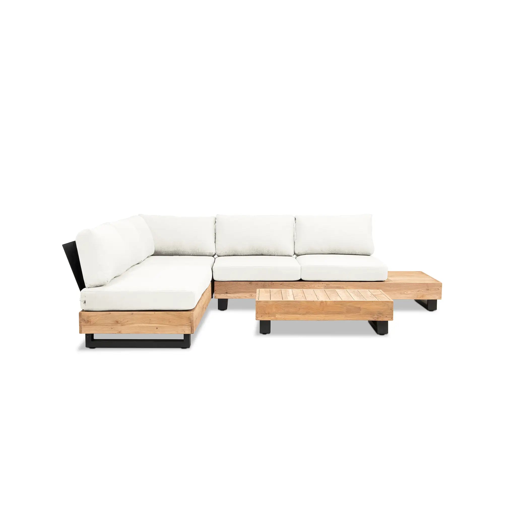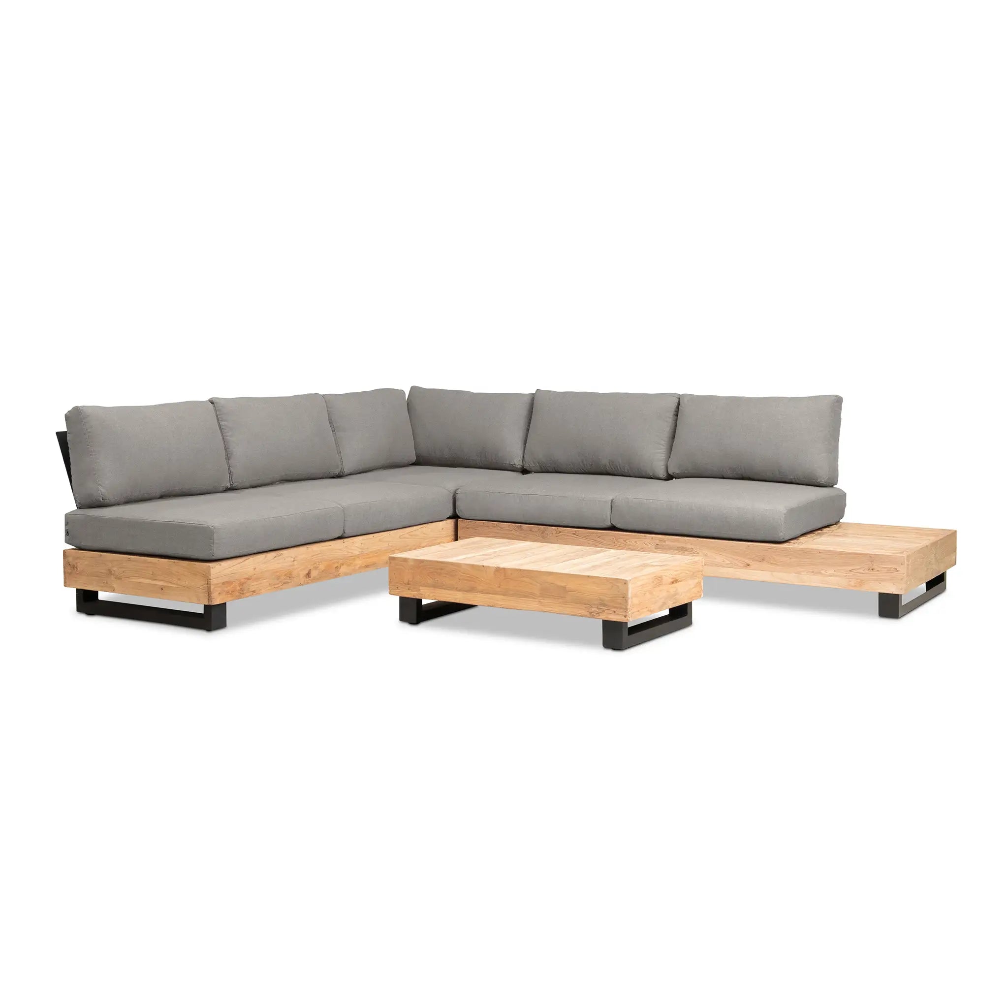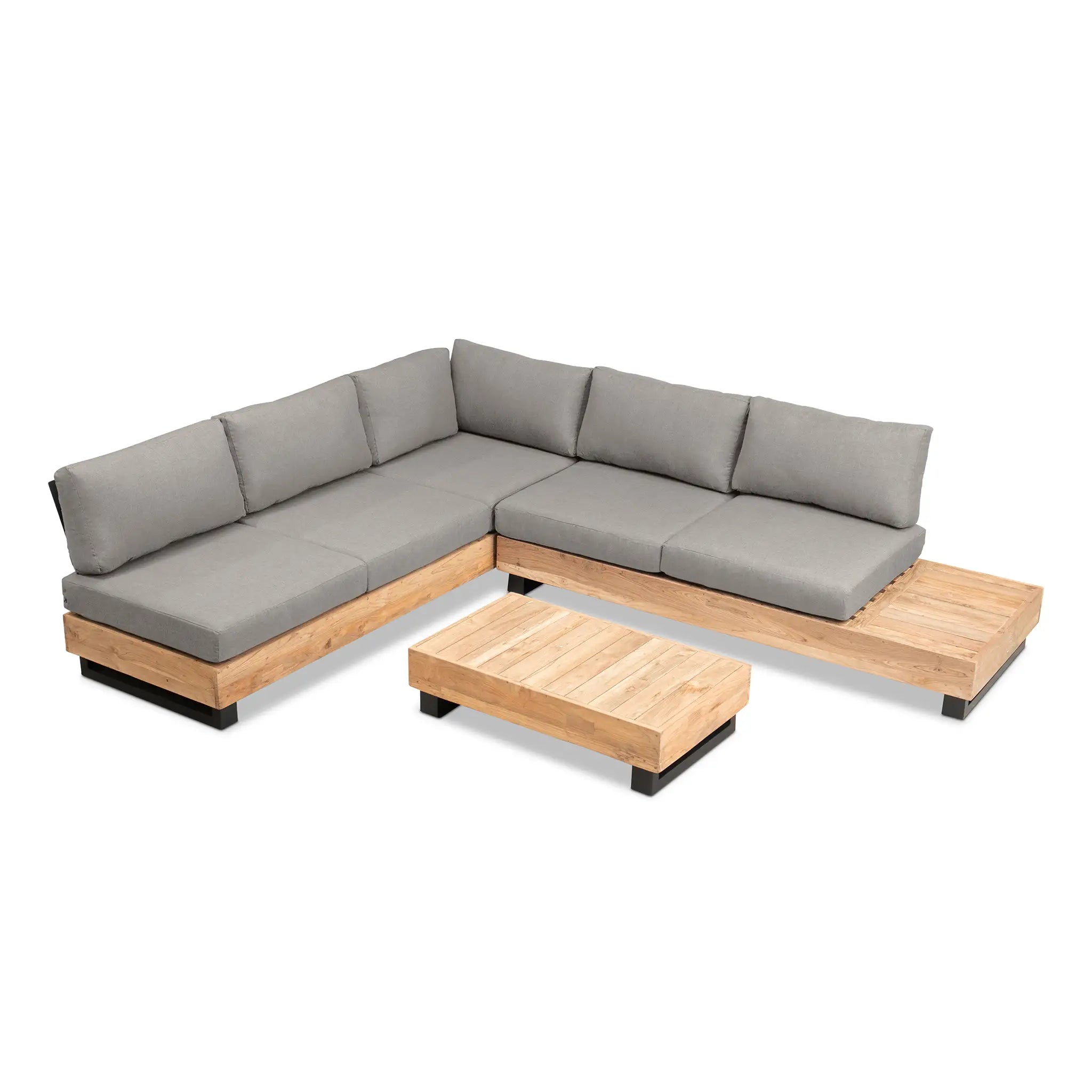 Crafted with integrity, sustainability, and expert craftsmanship, this low-profile sectional is simplistic yet inviting, offering a natural touch and timeless appeal. The fully-welded aluminum frame is treated with a powder-coated finish, ensuring long-lasting durability in all seasons. The seating and tabletop are made from Grade A reclaimed teak, sourced from 100% FSC Certified® Indonesian teak, meaning no new trees were harvested. This not only enhances the organic beauty of the furniture but also makes each piece a one-of-a-kind work of art.