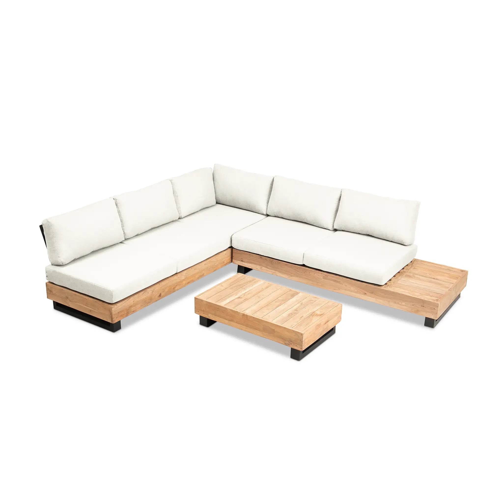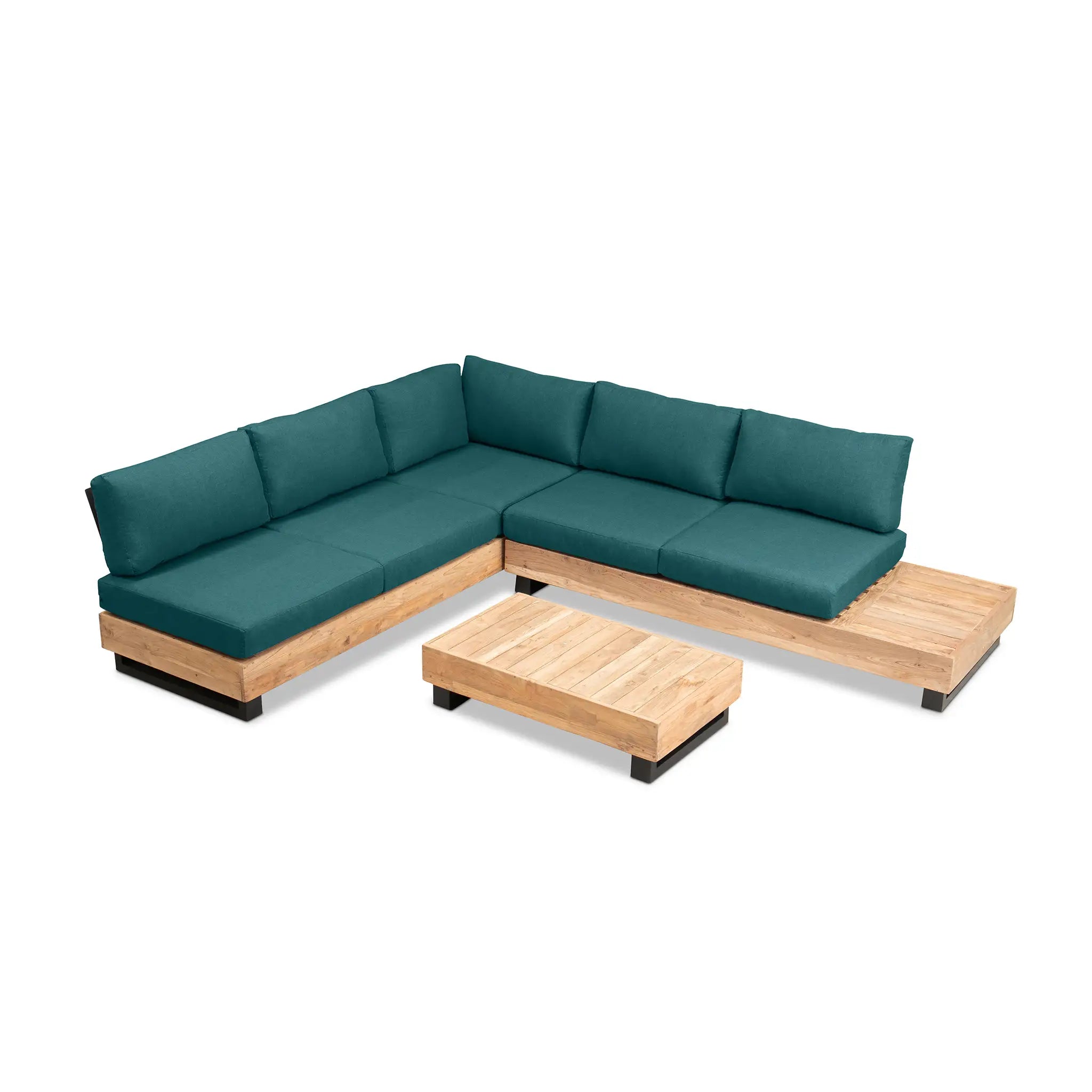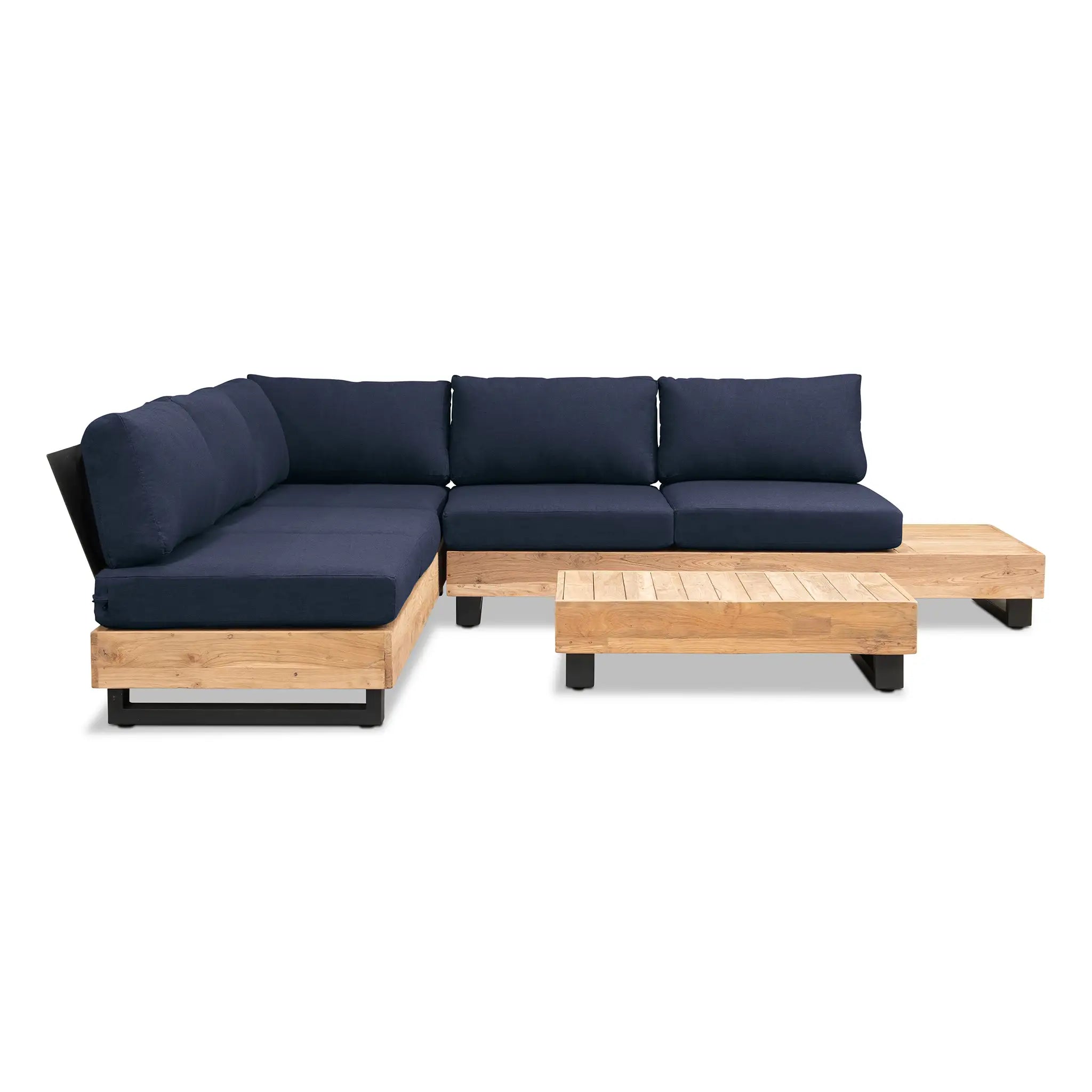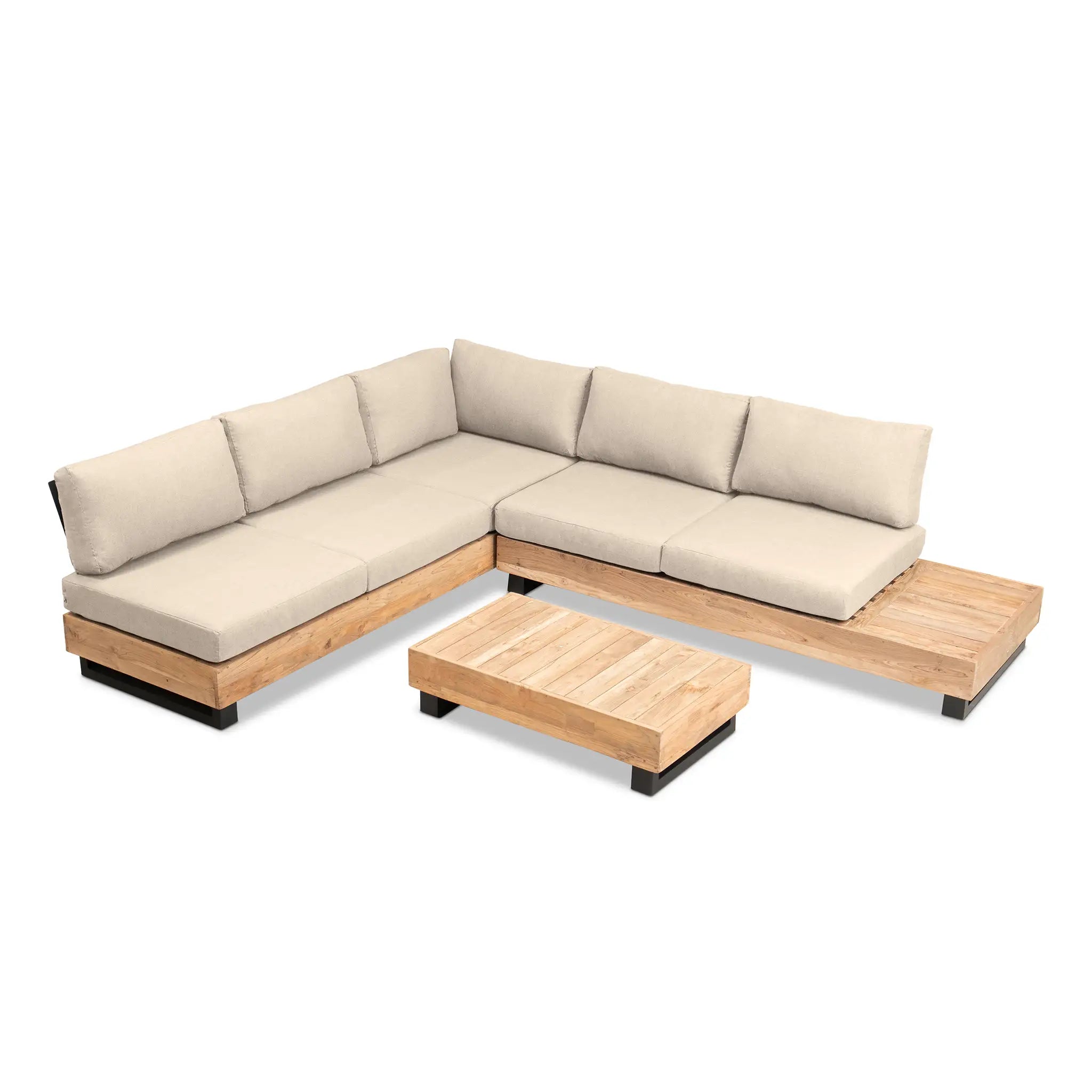 Crafted with integrity, sustainability, and expert craftsmanship, this low-profile sectional is simplistic yet inviting, offering a natural touch and timeless appeal. The fully-welded aluminum frame is treated with a powder-coated finish, ensuring long-lasting durability in all seasons. The seating and tabletop are made from Grade A reclaimed teak, sourced from 100% FSC Certified® Indonesian teak, meaning no new trees were harvested. This not only enhances the organic beauty of the furniture but also makes each piece a one-of-a-kind work of art.