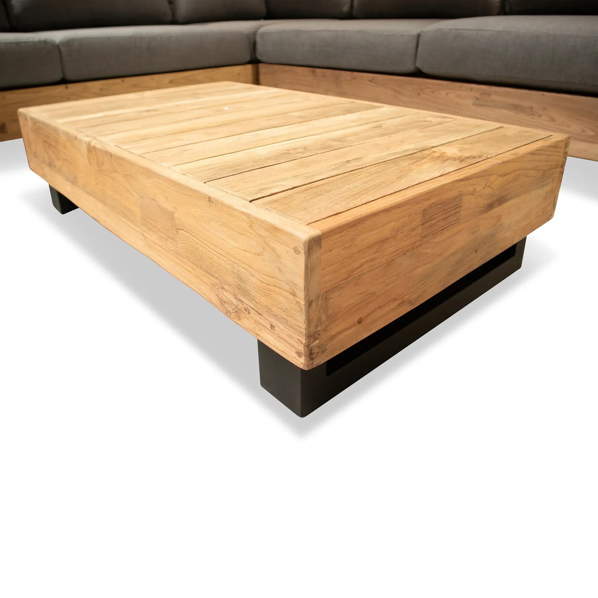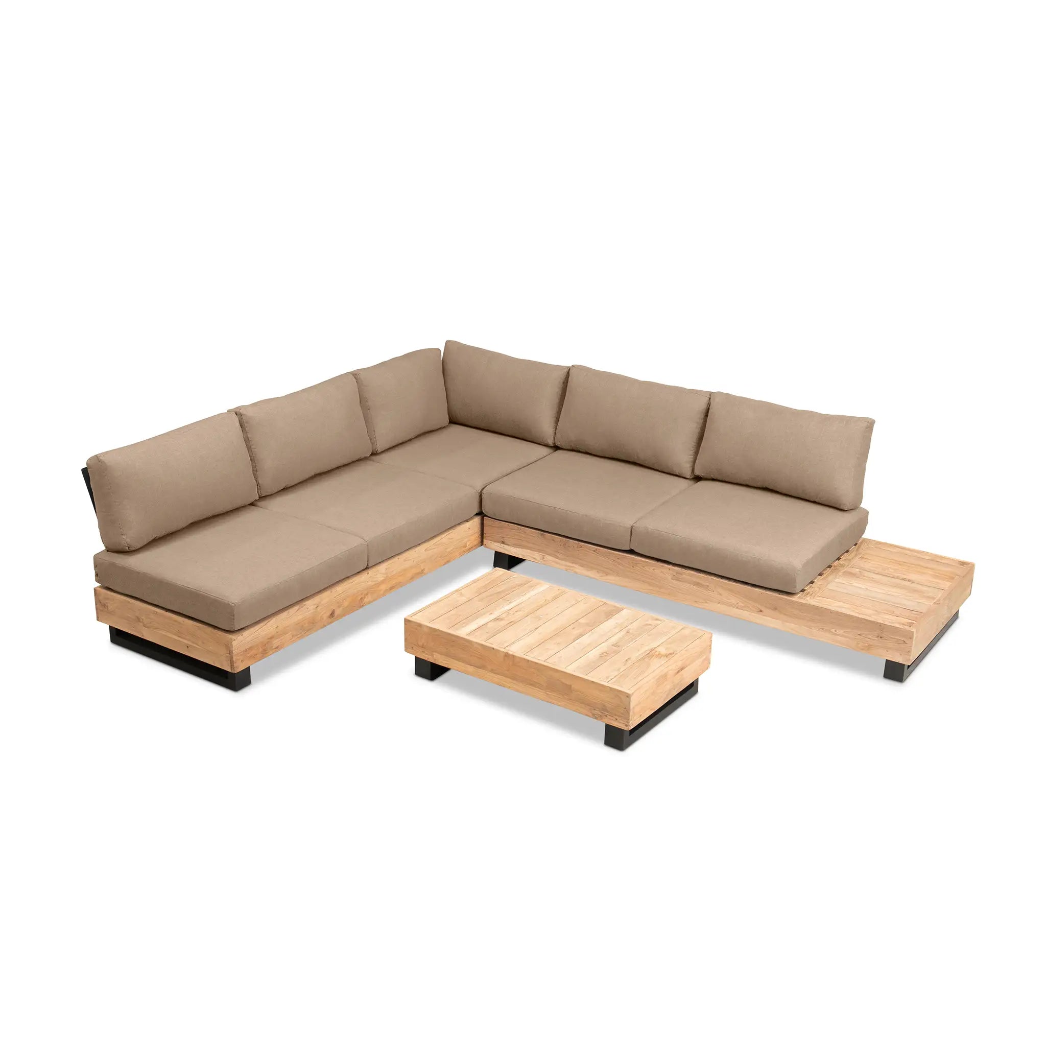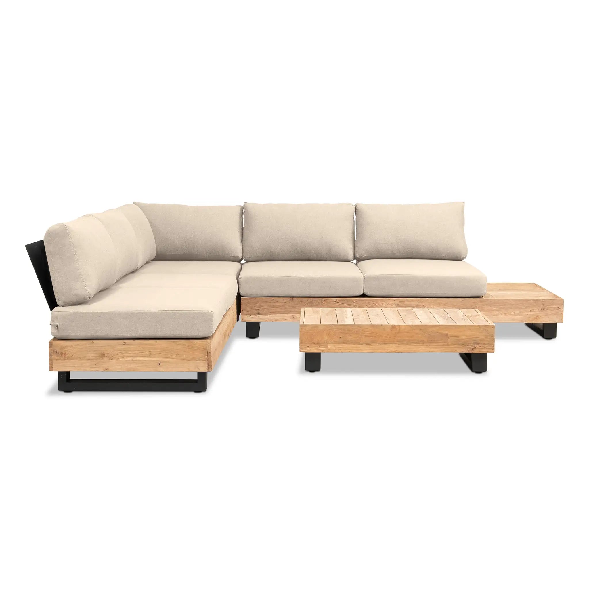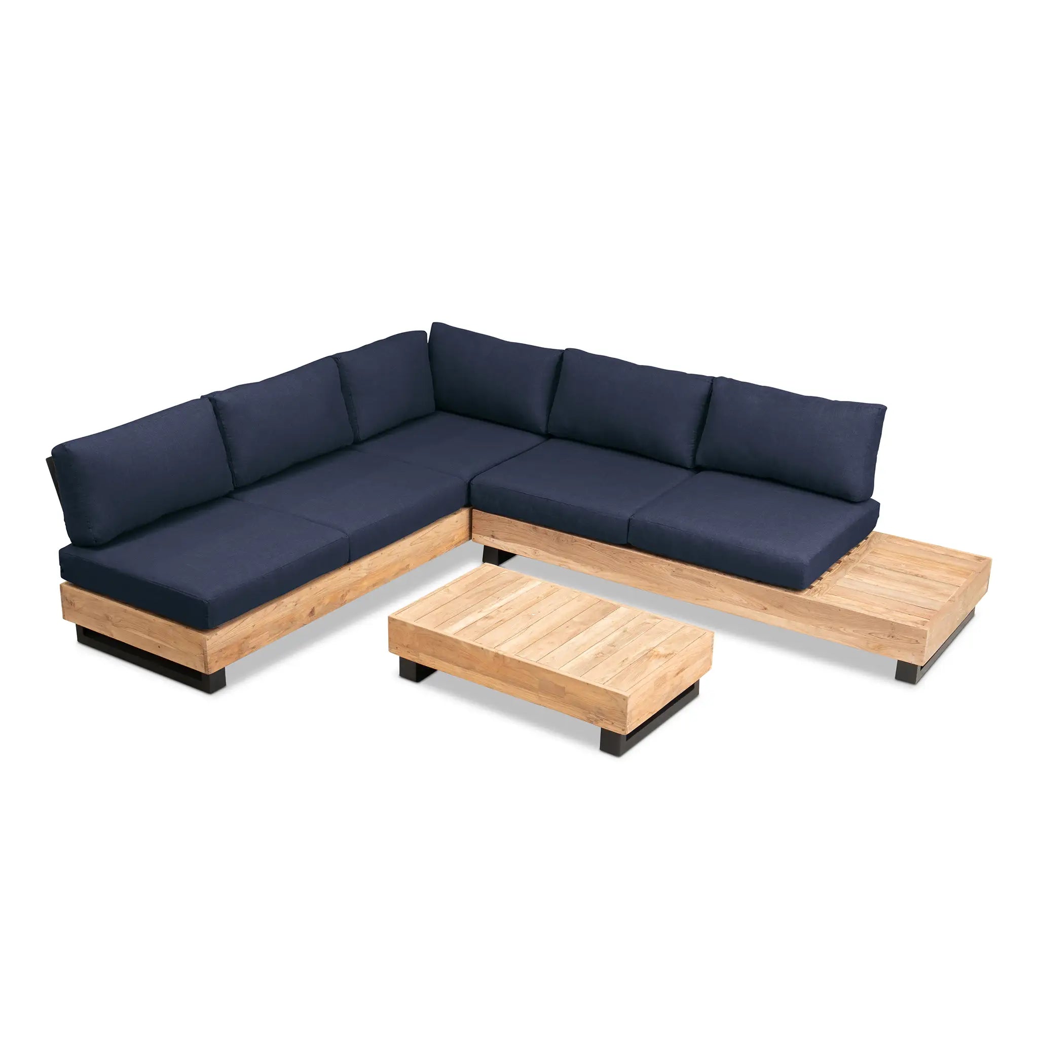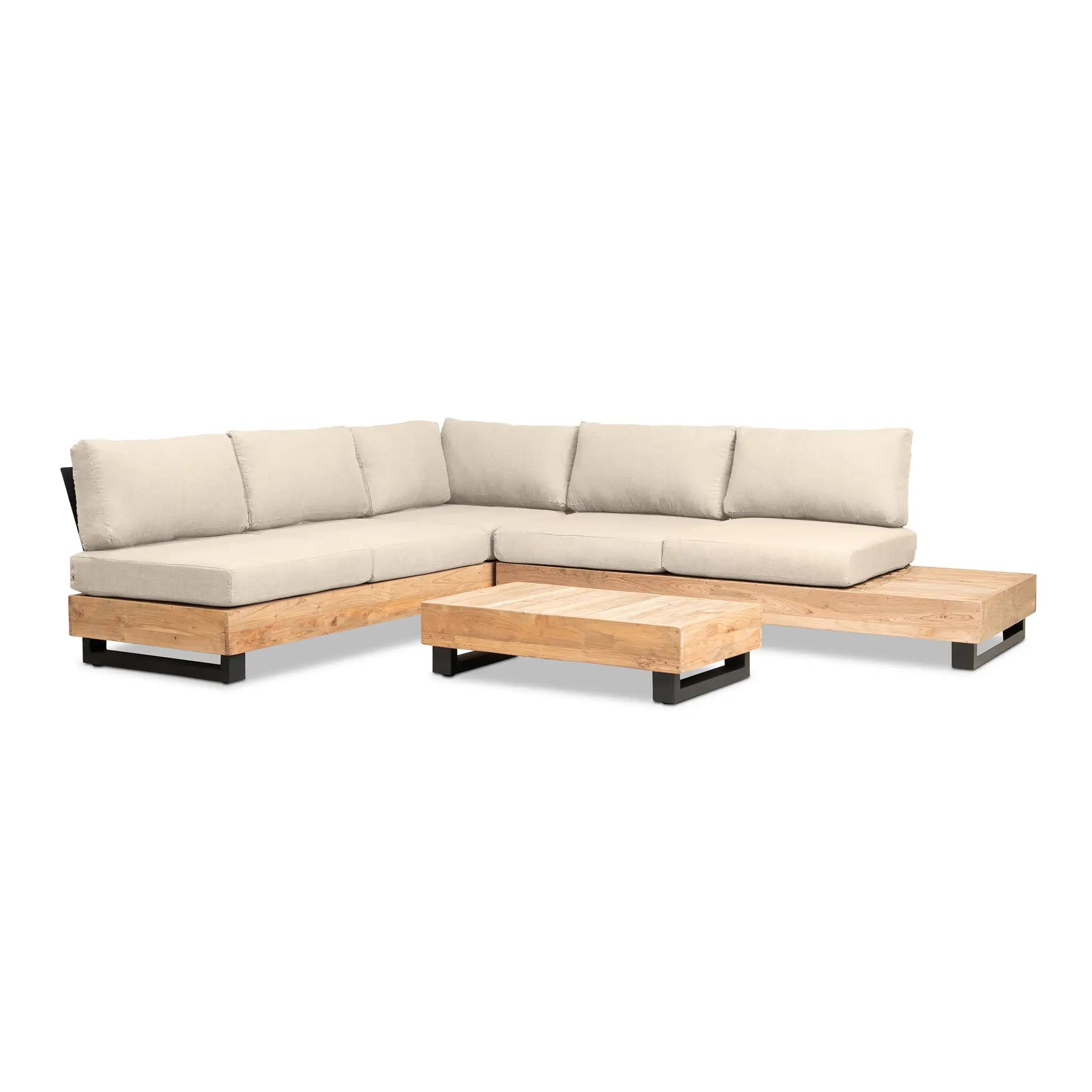 Crafted with integrity, sustainability, and expert craftsmanship, this low-profile sectional is simplistic yet inviting, offering a natural touch and timeless appeal. The fully-welded aluminum frame is treated with a powder-coated finish, ensuring long-lasting durability in all seasons. The seating and tabletop are made from Grade A reclaimed teak, sourced from 100% FSC Certified® Indonesian teak, meaning no new trees were harvested. This not only enhances the organic beauty of the furniture but also makes each piece a one-of-a-kind work of art.