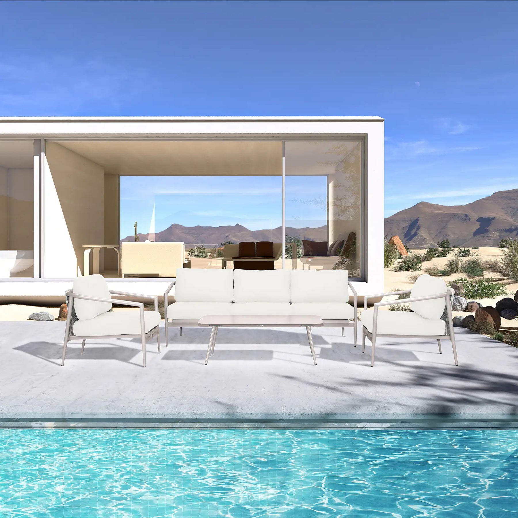 Whether enhancing a residential retreat or elevating a commercial space, the Olio 4 Piece Sofa Set delivers exceptional craftsmanship, enduring comfort, and modern sophistication, making it the perfect choice for those who value both style and substance in outdoor living.