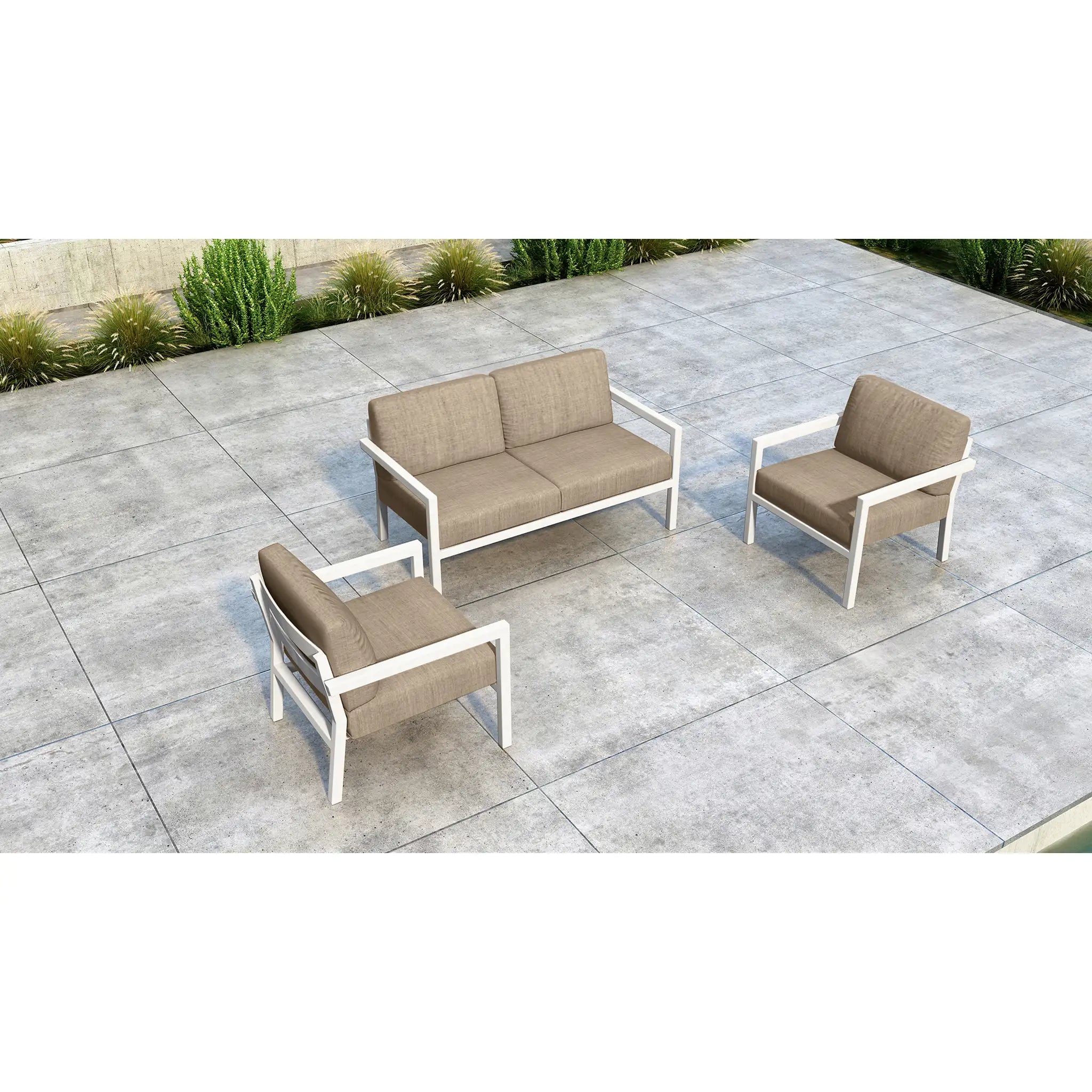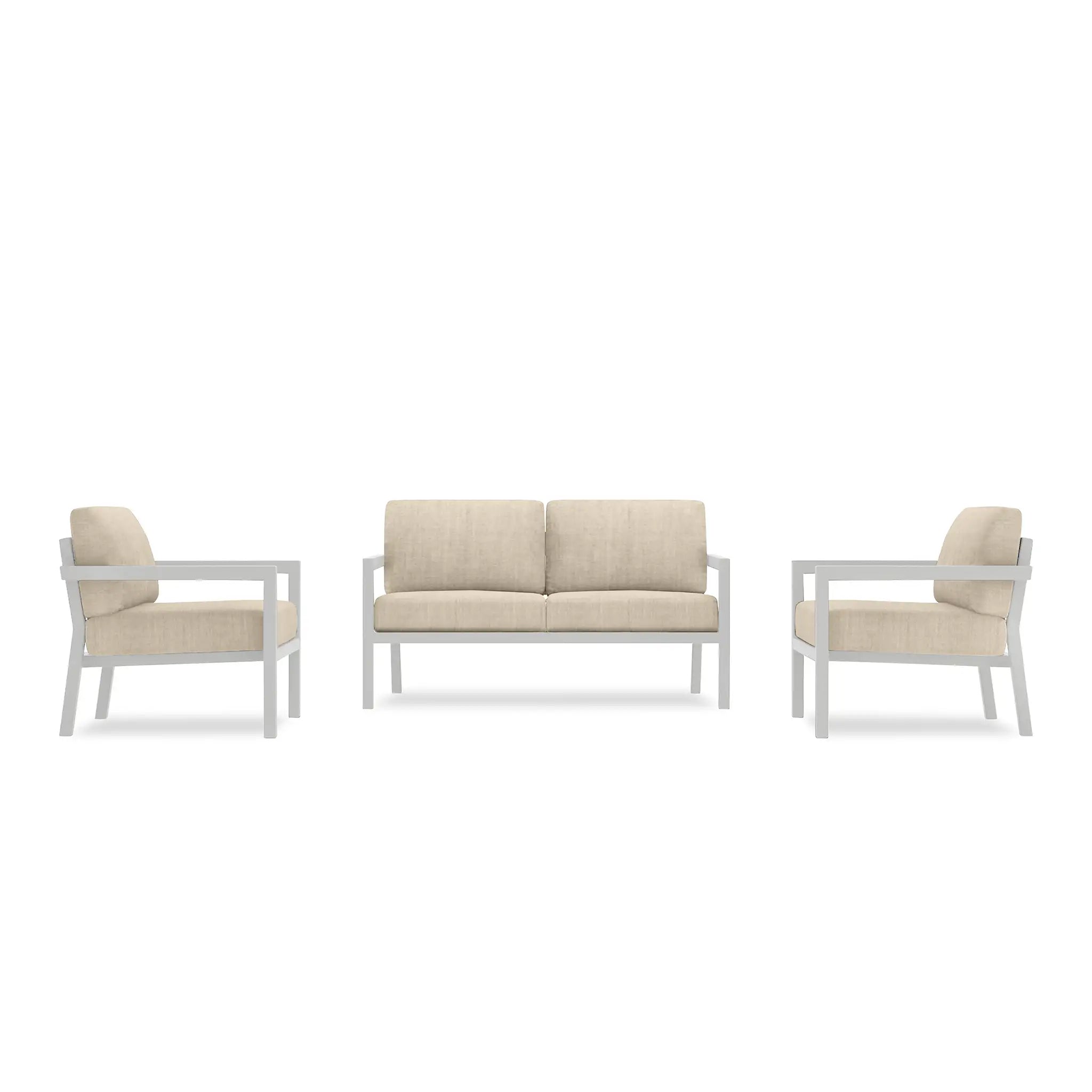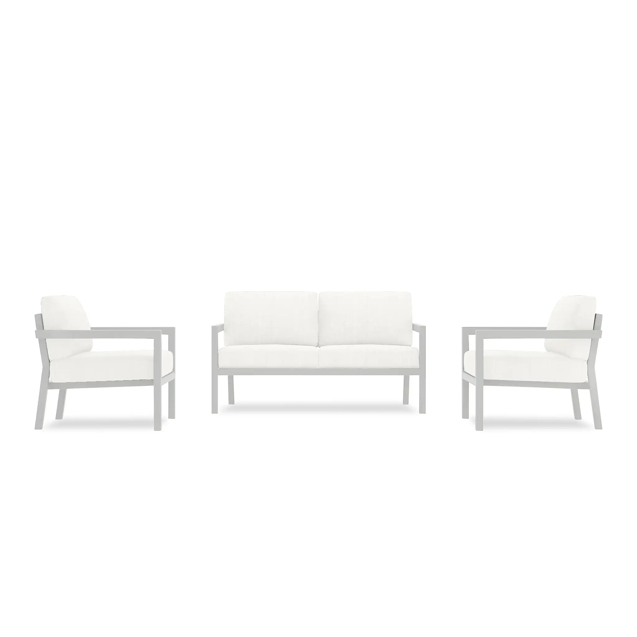 The Harmonia Living Pacifica 3 Piece Aluminum Loveseat Set - White offers a perfect blend of modern elegance and everyday comfort, making it an ideal addition to any outdoor retreat. Designed with clean lines, gentle angles, and plush cushions, this set enhances both spacious patios and cozy balconies, bringing a relaxed yet sophisticated atmosphere to your outdoor living area. Whether you're enjoying quiet mornings with a cup of coffee or entertaining guests under the stars, the Pacifica Loveseat Set provides the perfect balance of style and functionality.