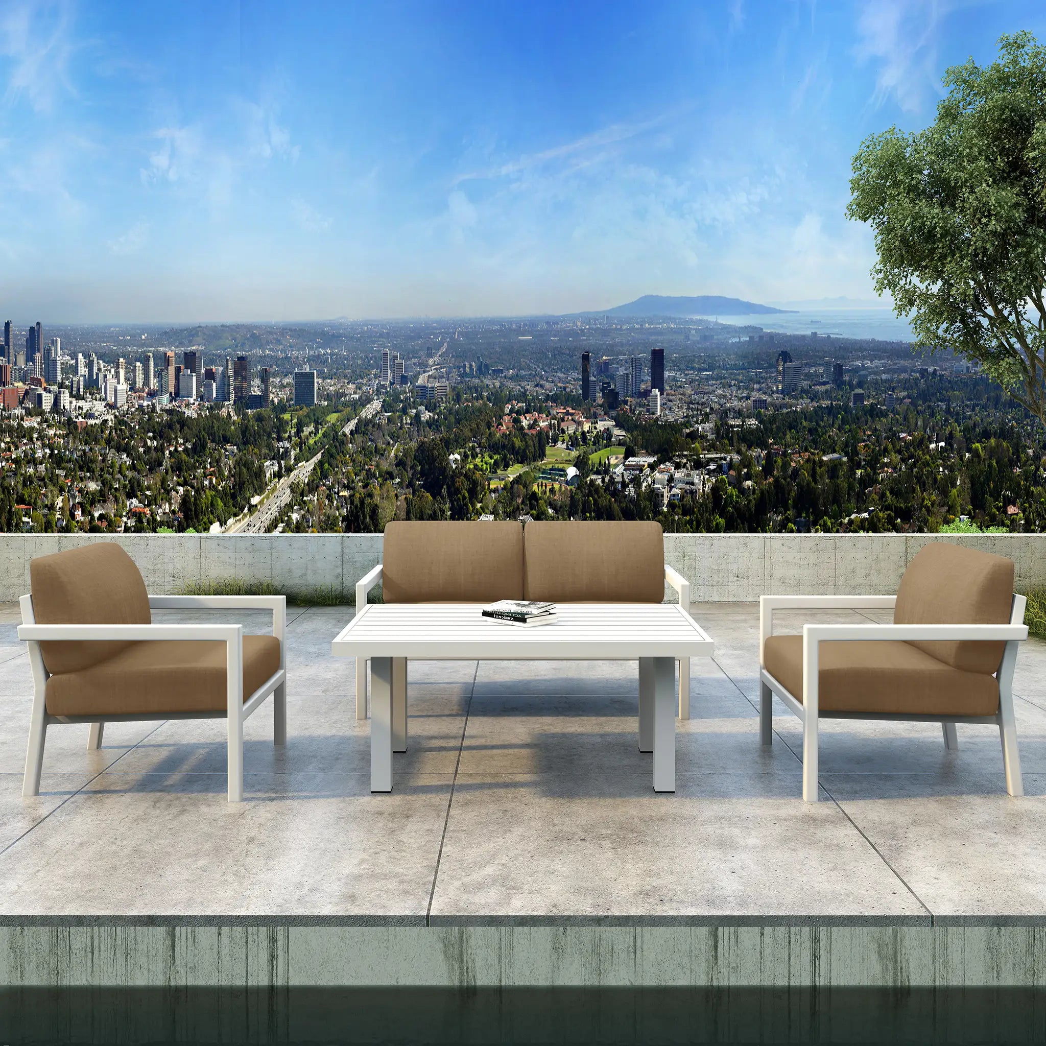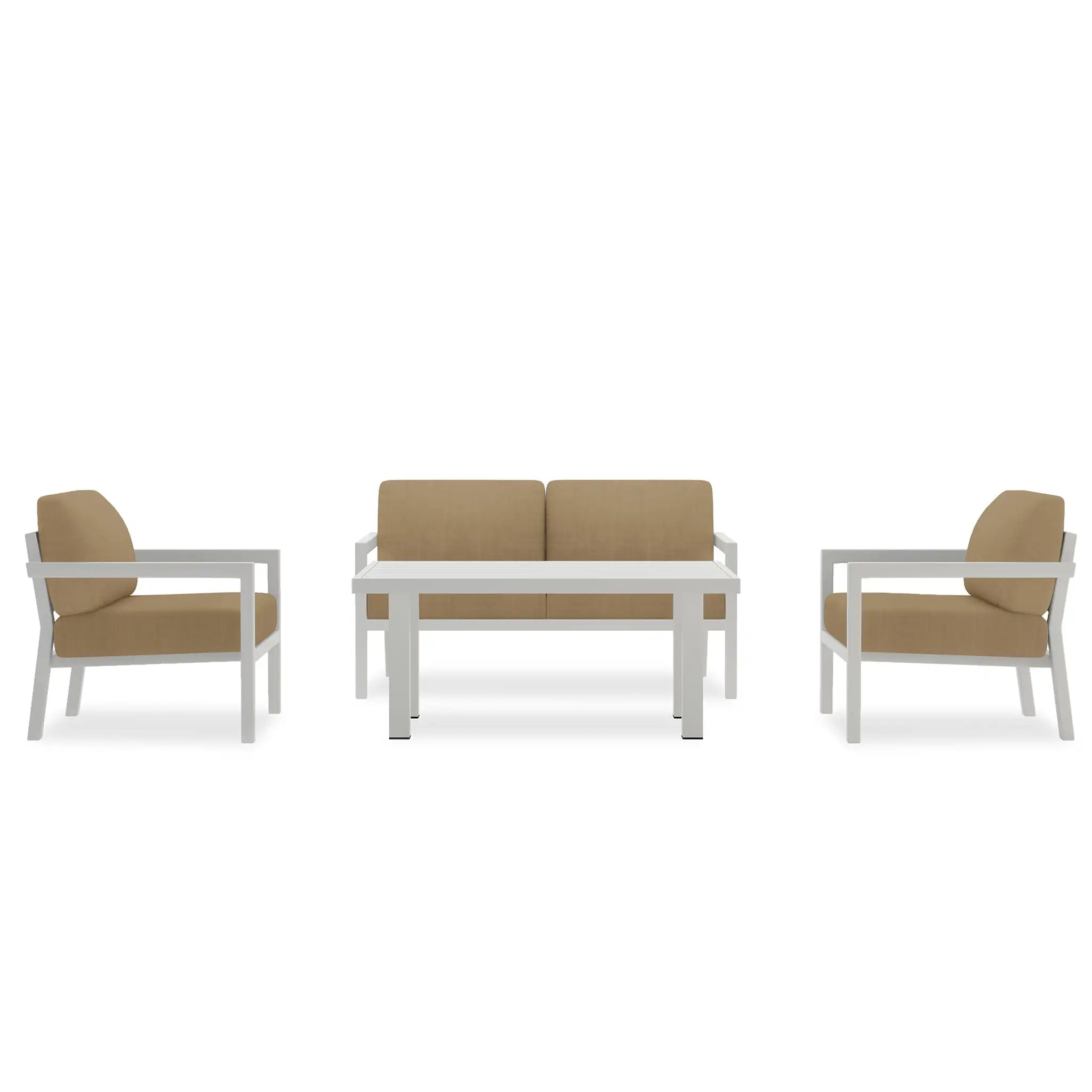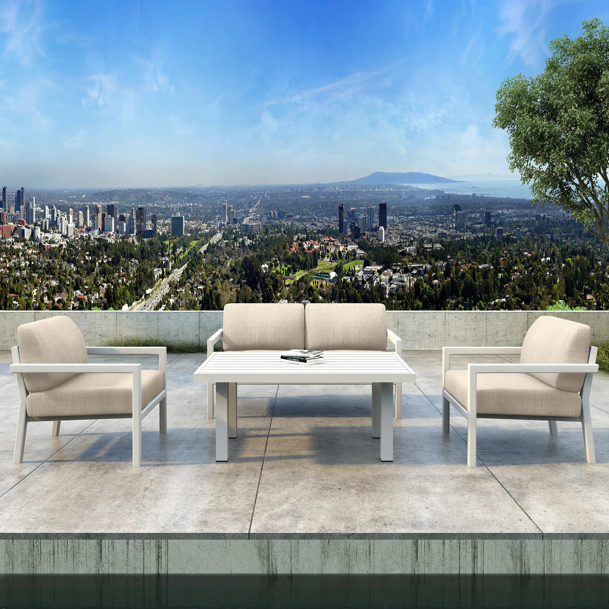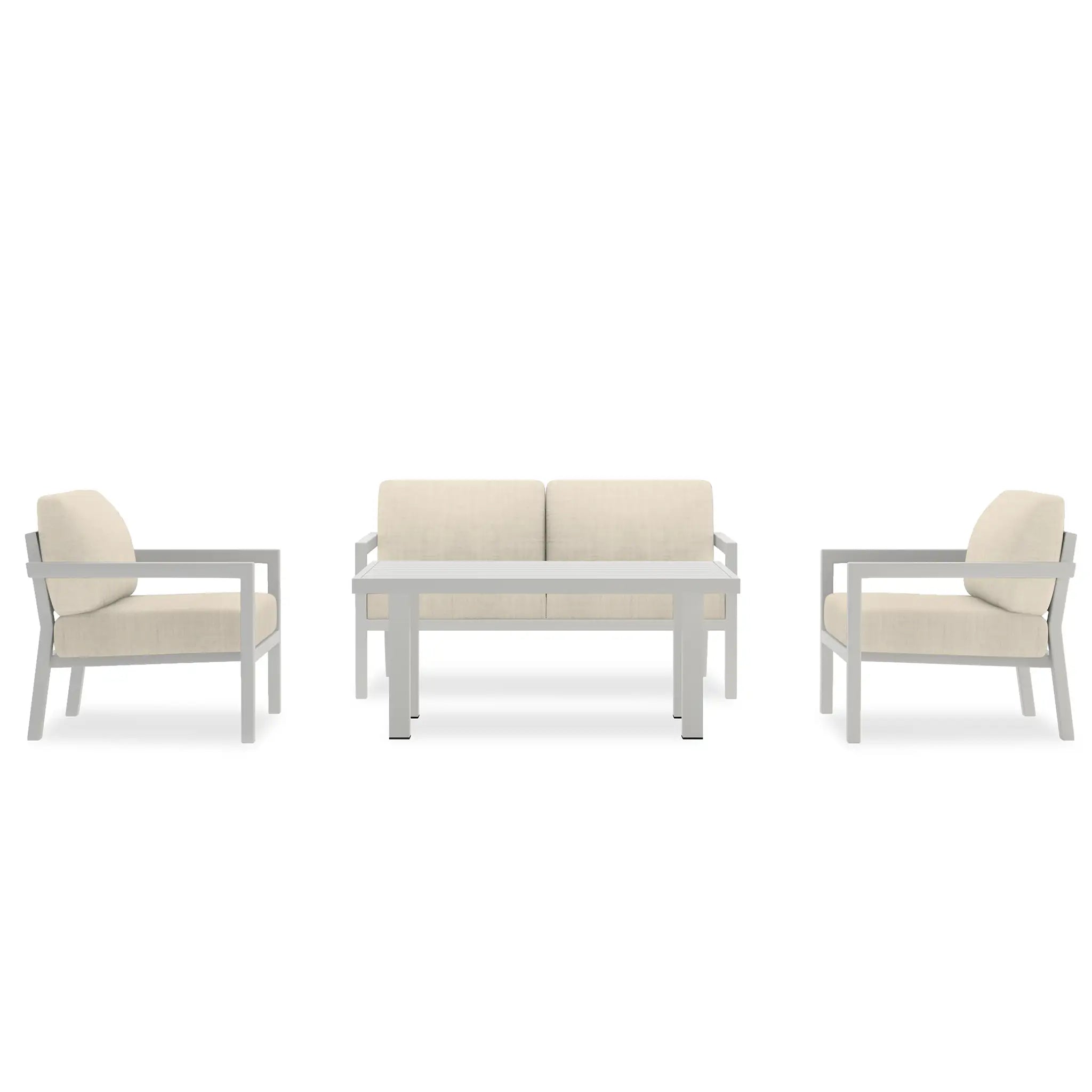 The Harmonia Living Pacifica Classic 4 Piece Aluminum Loveseat Set - White brings a perfect balance of elegance and comfort to your outdoor space. Designed with refined simplicity, its gentle angles, plush cushions, and minimalist aesthetic make it ideal for patios of all sizes, whether you're enjoying a quiet morning coffee or hosting guests under the stars.