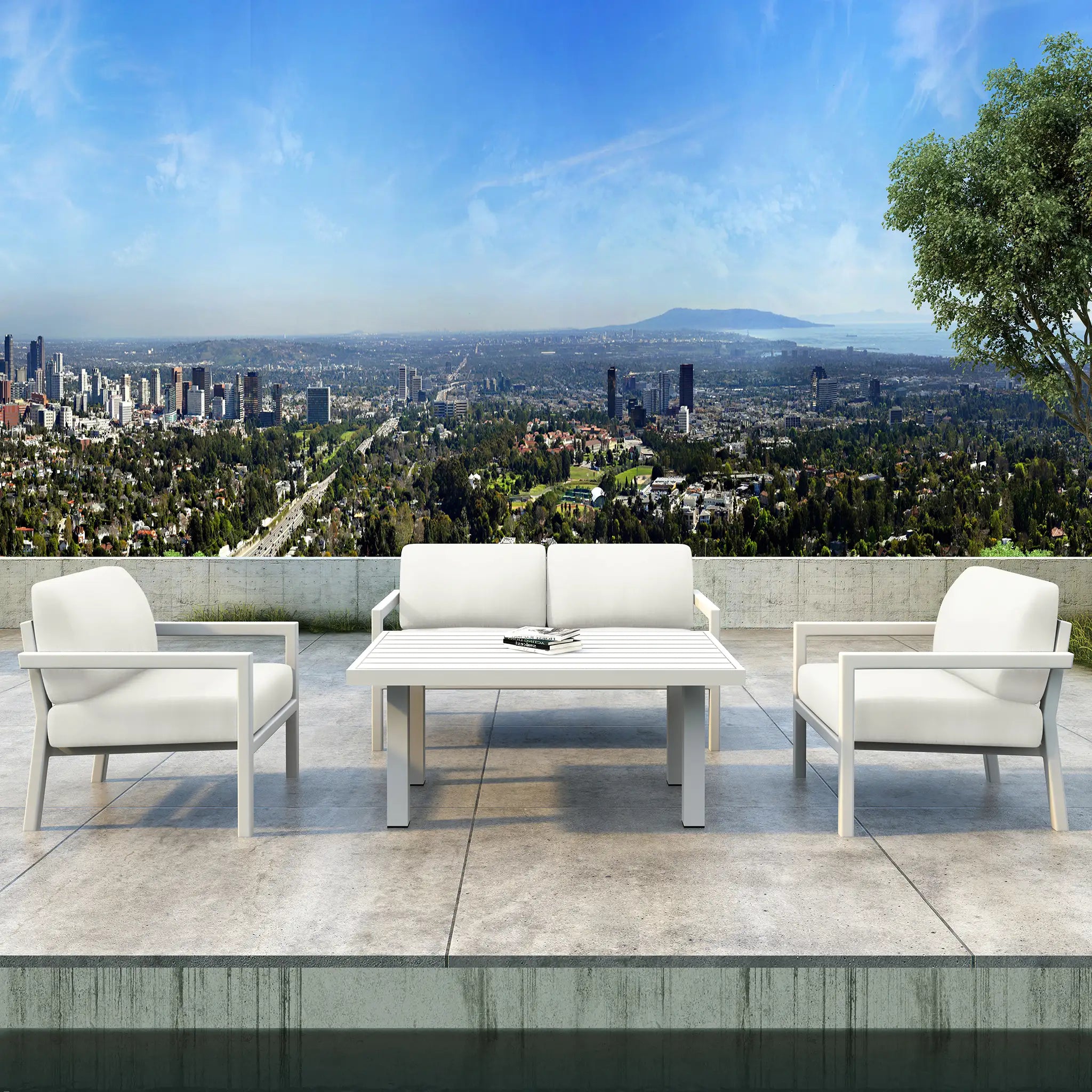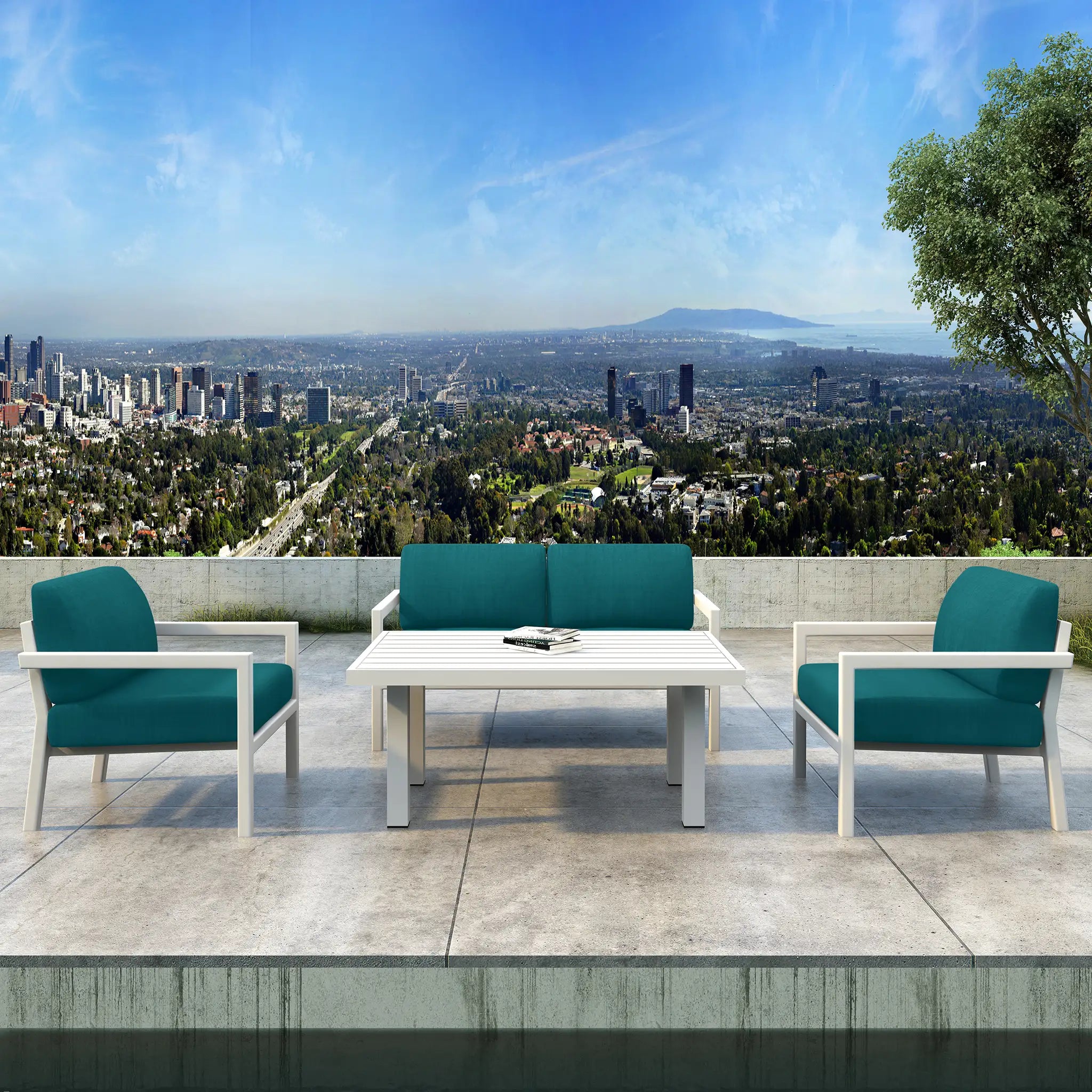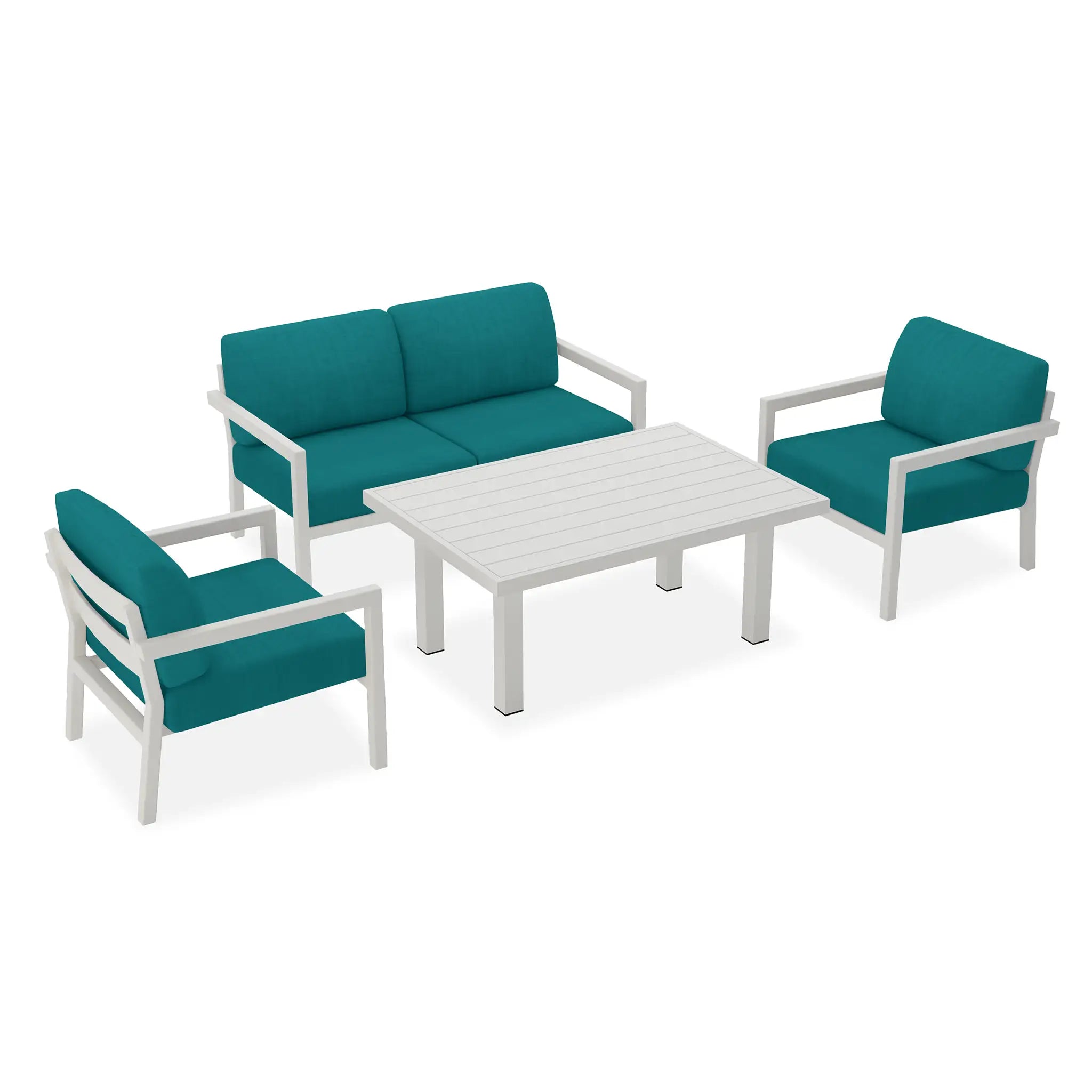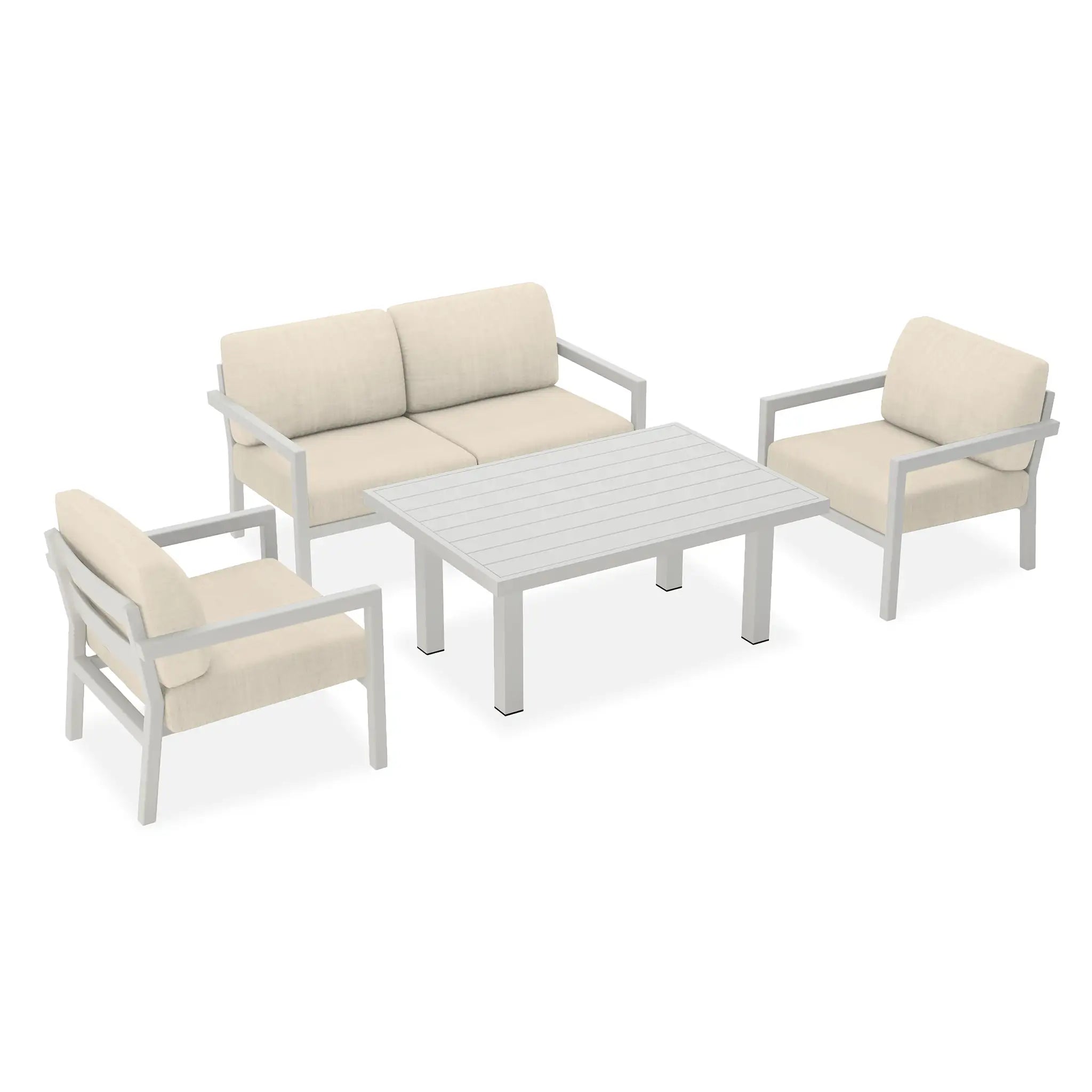 The Harmonia Living Pacifica Classic 4 Piece Aluminum Loveseat Set - White brings a perfect balance of elegance and comfort to your outdoor space. Designed with refined simplicity, its gentle angles, plush cushions, and minimalist aesthetic make it ideal for patios of all sizes, whether you're enjoying a quiet morning coffee or hosting guests under the stars.