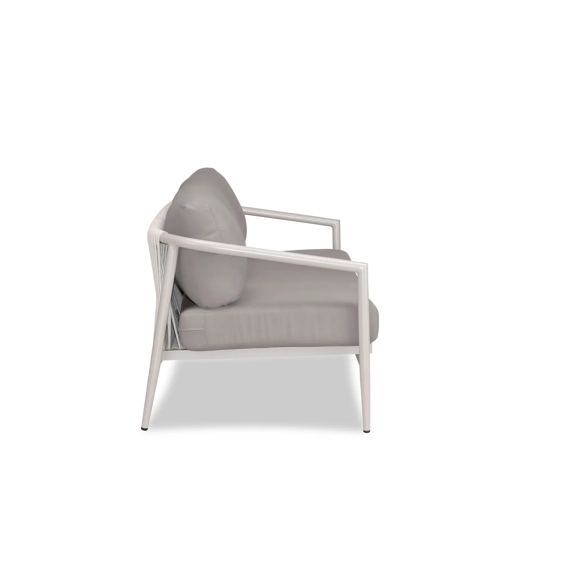 Its fully-welded aluminum frame is treated with a powder-coated finish to ensure lasting durability across the seasons. The beautiful Olefin rope detailing enhances the frame's visual appeal while providing durability in all types of climates.