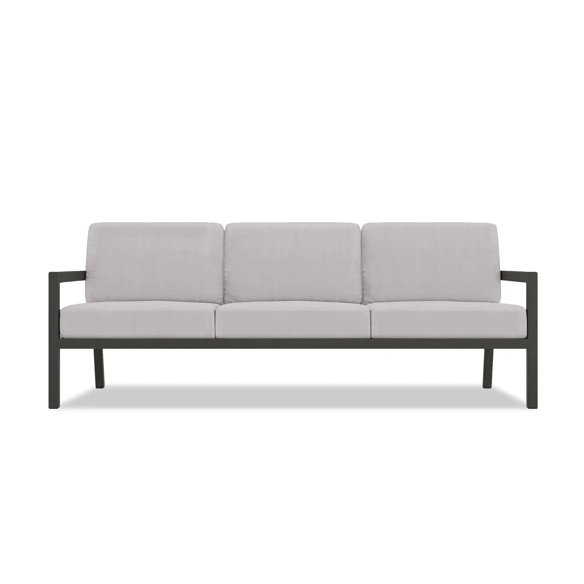 The Harmonia Living Pacifica Aluminum Sofa - Slate is a sophisticated addition to any outdoor space, designed to provide both style and comfort. Featuring a sleek, minimalist design, this sofa is the perfect blend of modern elegance and practicality, making it ideal for patios of all sizes. The sofa's plush cushions and gentle angles offer a relaxing seating experience, while the overall design creates a chic, contemporary look that can complement various outdoor settings.