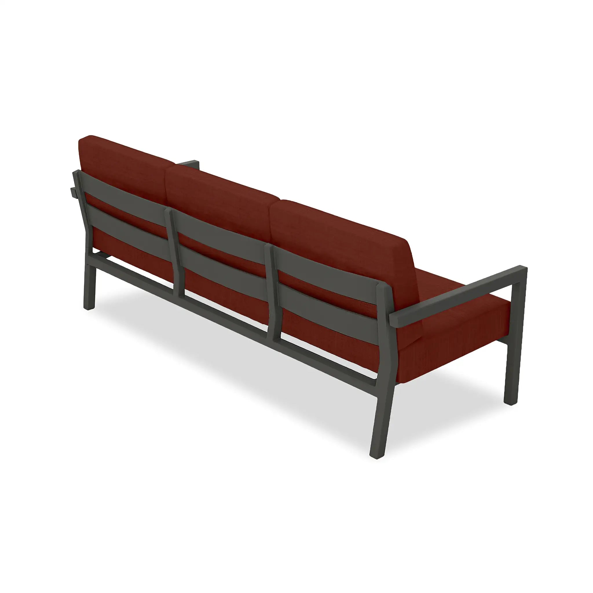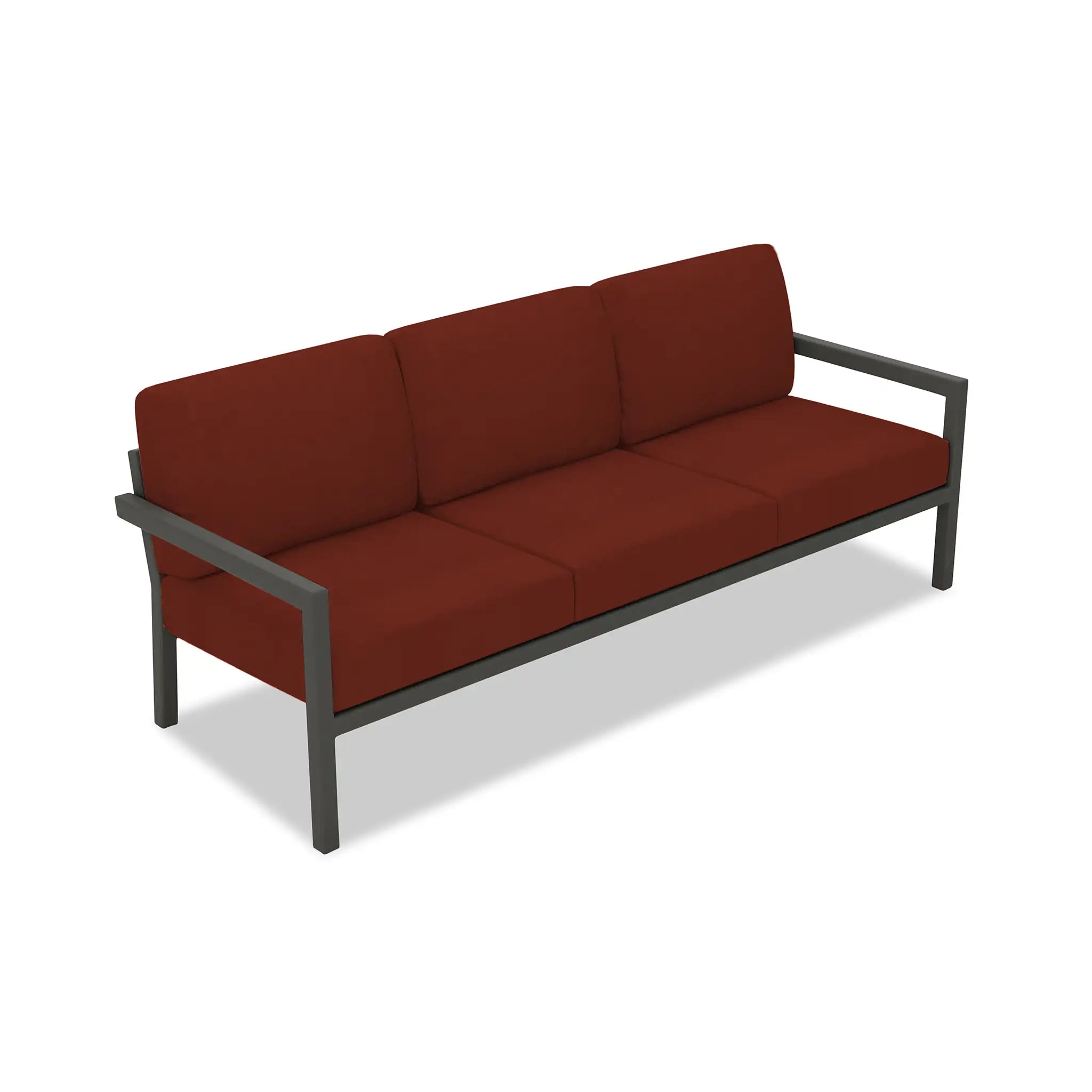 Constructed with fully-welded aluminum frames, this sofa is built to withstand the rigors of outdoor use. The frames are treated with a powder-coated finish, providing protection against the elements and ensuring long-lasting durability through every season. The optional cushions are made in the USA using quick-drying Dacron and UV-treated, marine-grade PremoBond thread, which not only enhance comfort but also provide support, making this sofa perfect for long-lasting outdoor relaxation.