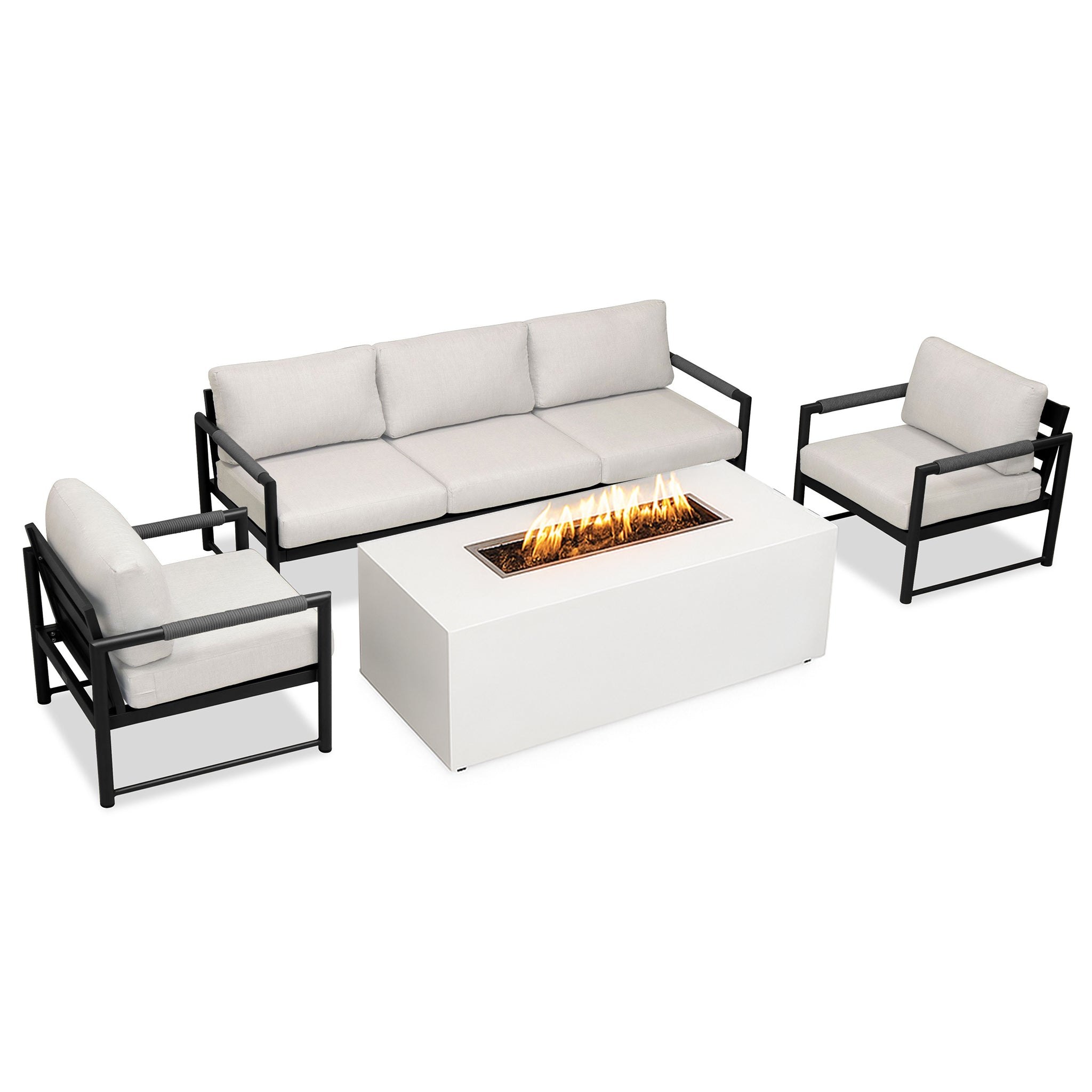 - Complete outdoor bundle featuring the Alto Sofa & Club Chair Set with the 72" Beton Concrete Gas Fire Pit.