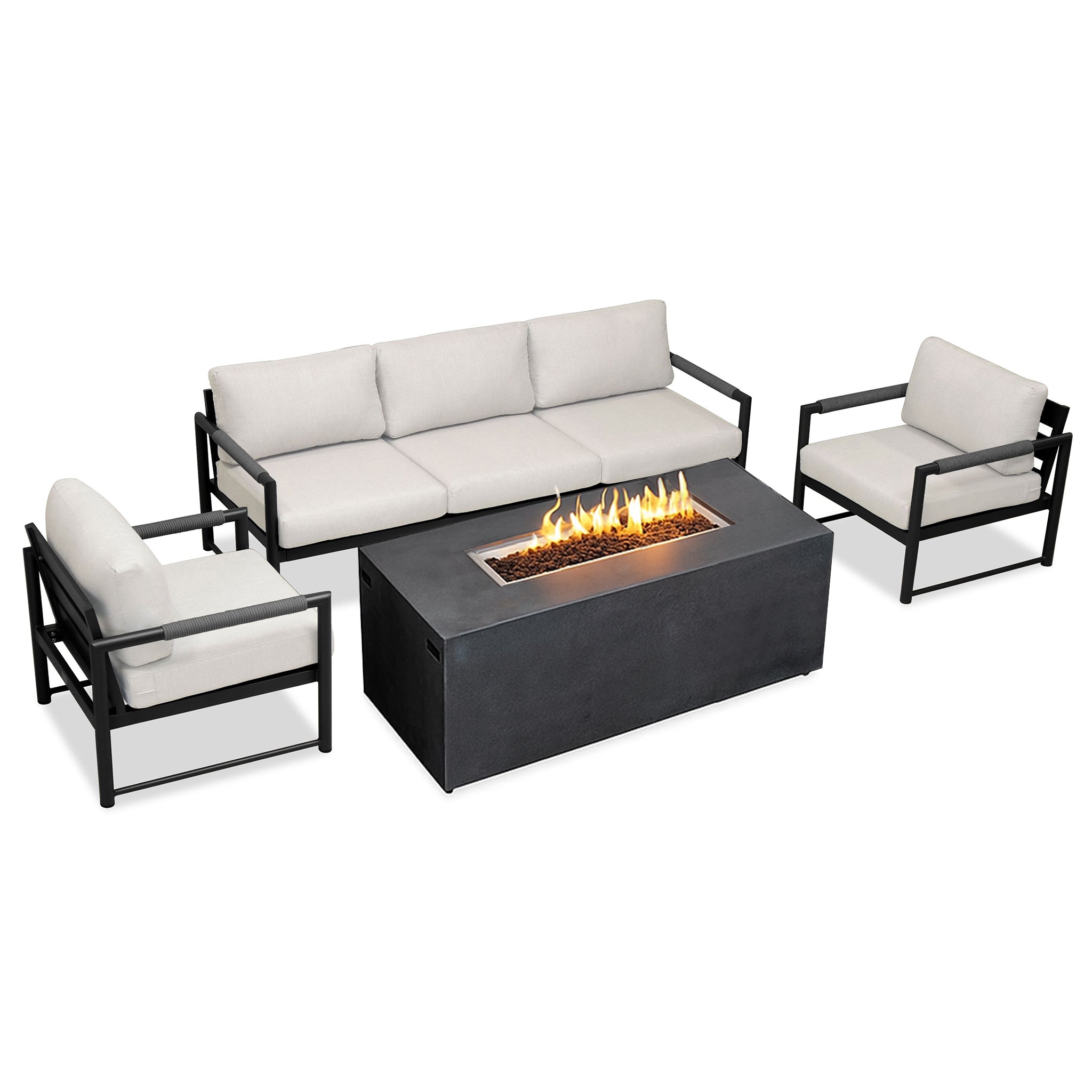 - Complete outdoor bundle featuring the Alto Sofa & Club Chair Set with the 72" Beton Concrete Gas Fire Pit.