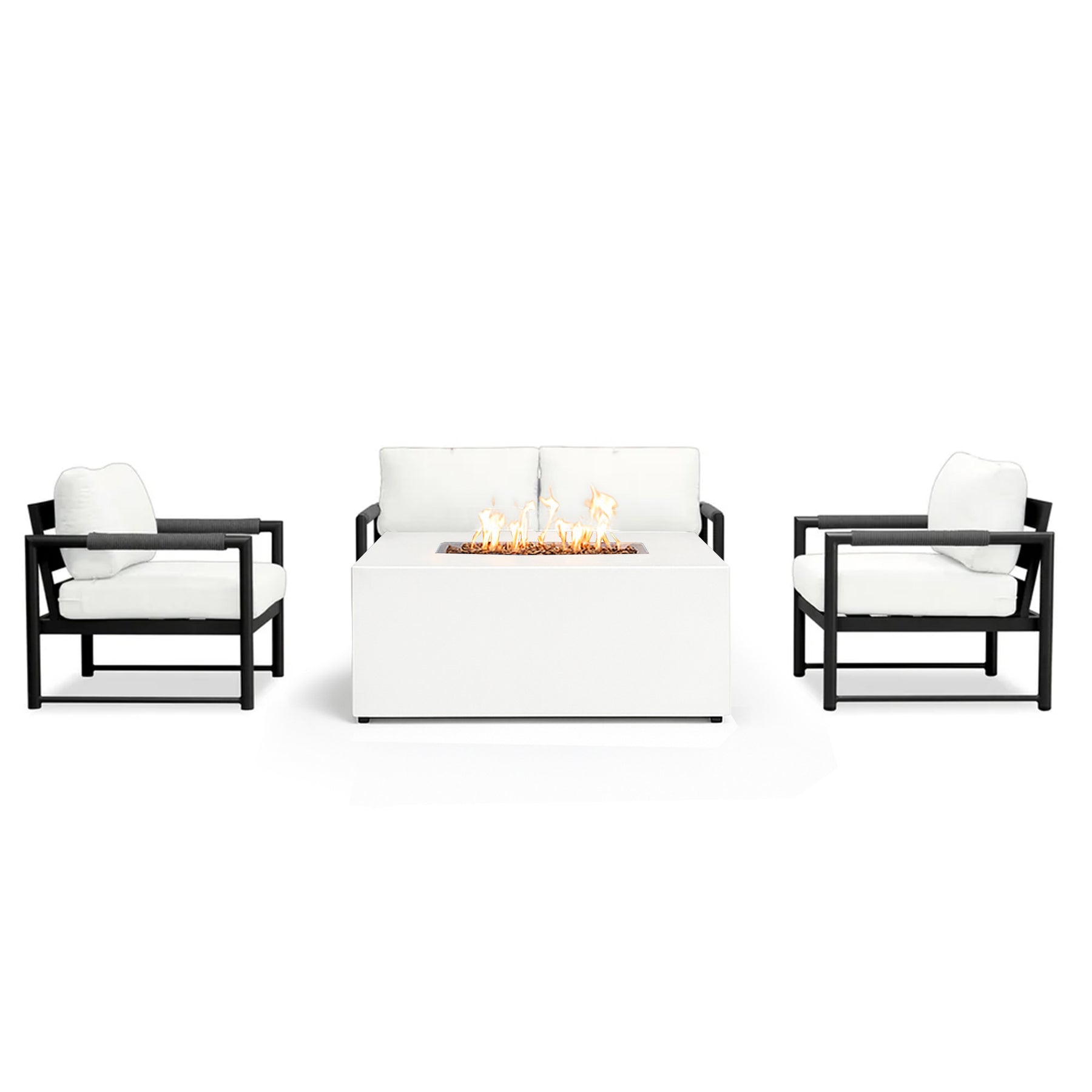 - Complete outdoor lounge bundle featuring the Alto 3 Piece Loveseat Set and 55" Beton Concrete Gas Fire Pit.