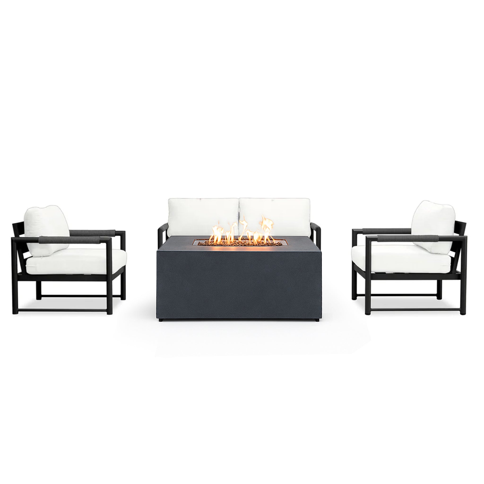 - Complete outdoor lounge bundle featuring the Alto 3 Piece Loveseat Set and 55" Beton Concrete Gas Fire Pit.