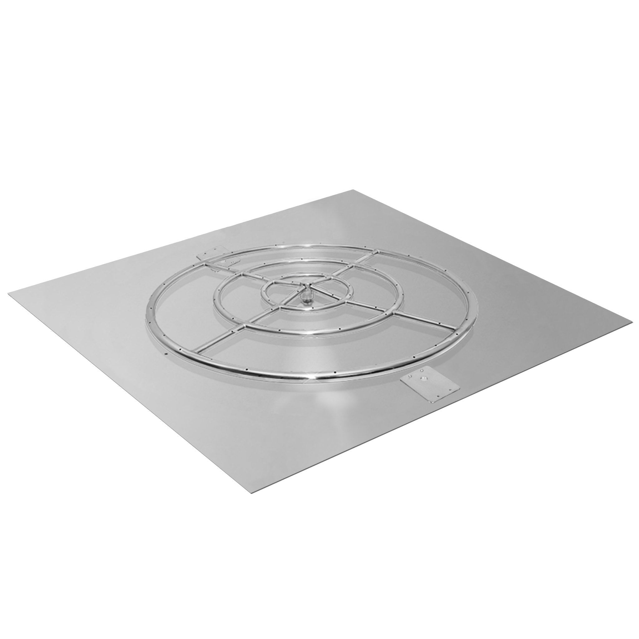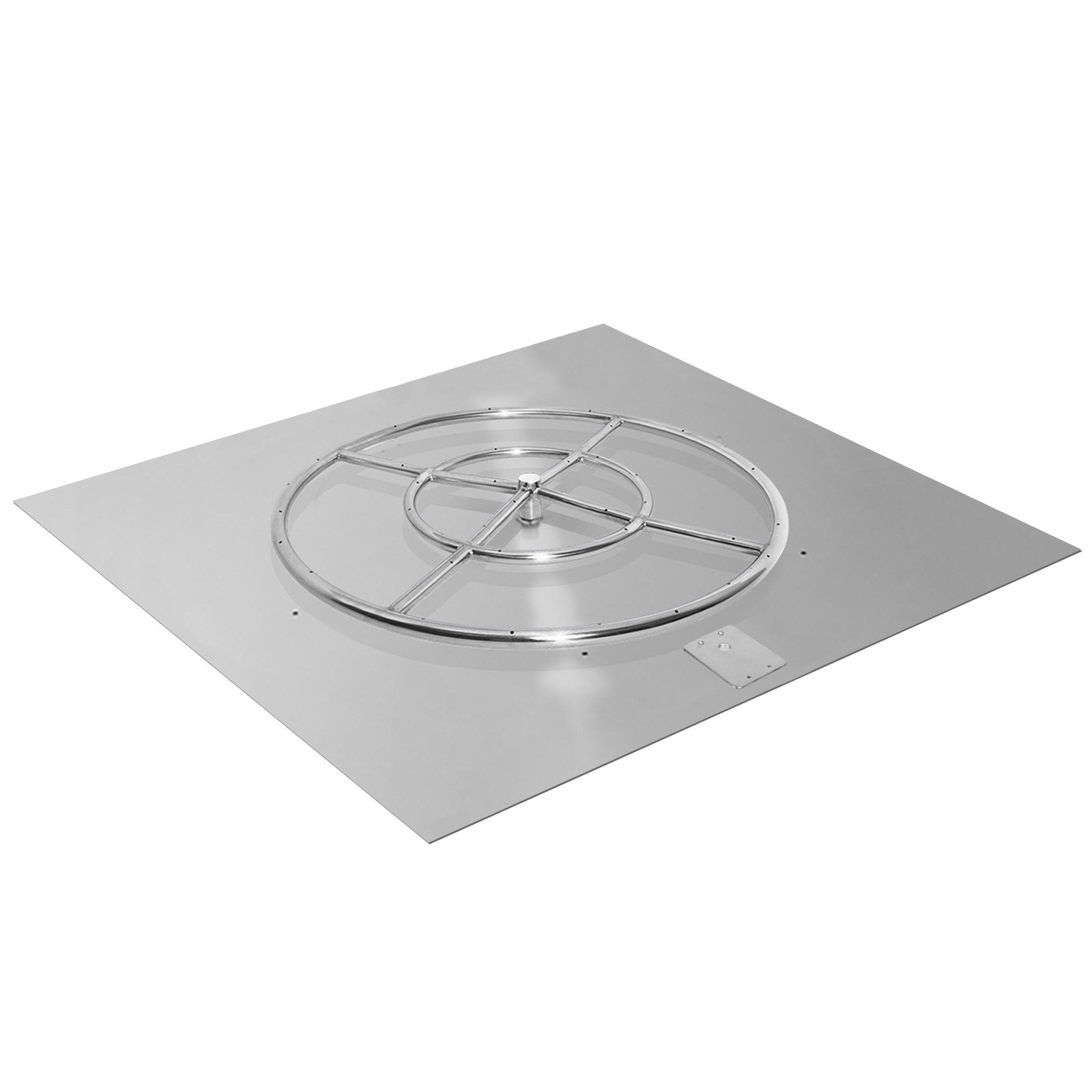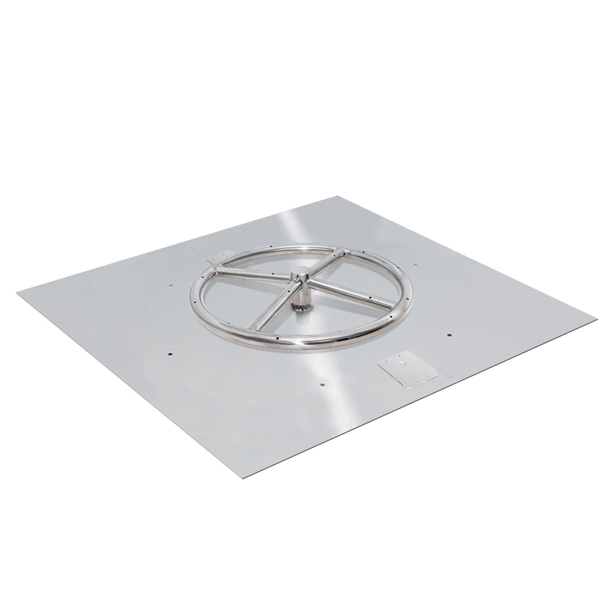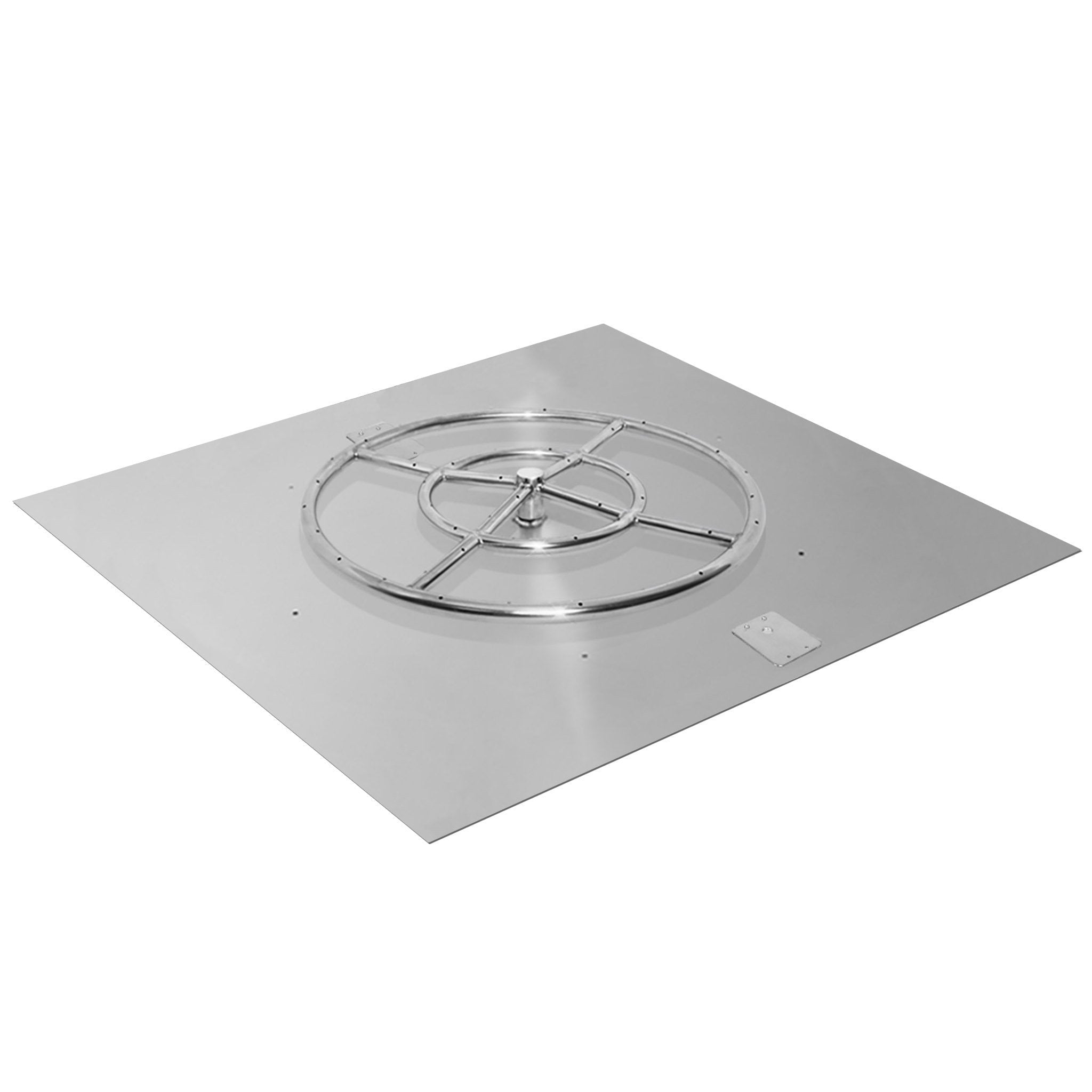 Also included with this kit is a stainless steel burner pan that is specially designed to eliminate the need for fillers. This cost-effective component allows a bed for fire media, such as fire glass, to lay across the pan. Not only does this make for a stunning centerpiece display, the empty interior space beneath the pan helps improve airflow for optimal combustion and flame display. If your fire pit will be using propane gas or an ignition system, a burner pan is absolutely required. Installation is a cinch as the pan can be simply dropped into place over the ledge inside the fire pit's opening. For quick ledge solution, check out our Form Fitting Fire Pit Ledges (sold separately). Weep holes featured on the burner pan's design enables water to drain should the fire feature be exposed to rain. The removable tri-purpose ignition port cover plate that comes standard on all Starfire Designs pans allows for the use of match lit, battery spark, or electronic ignition systems.