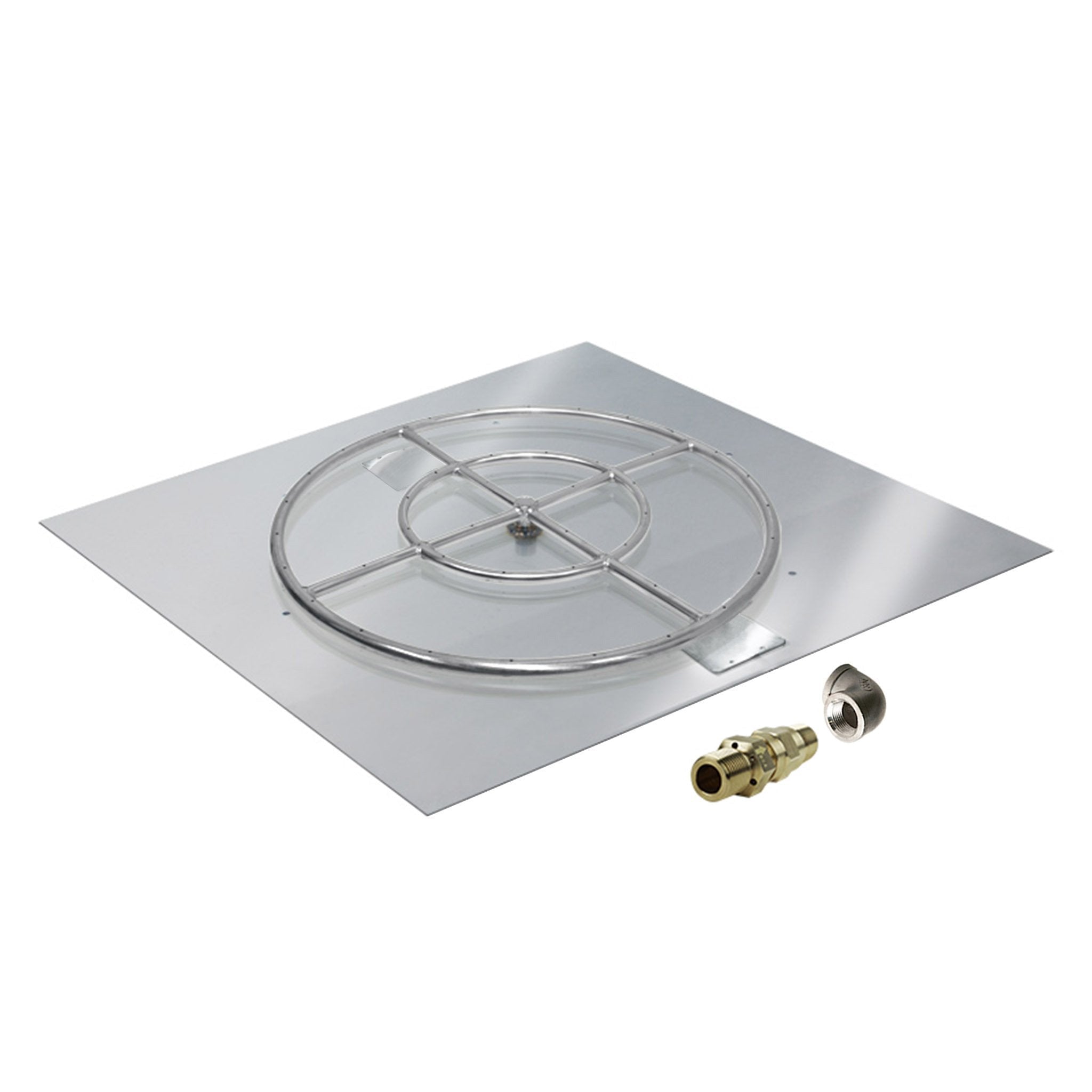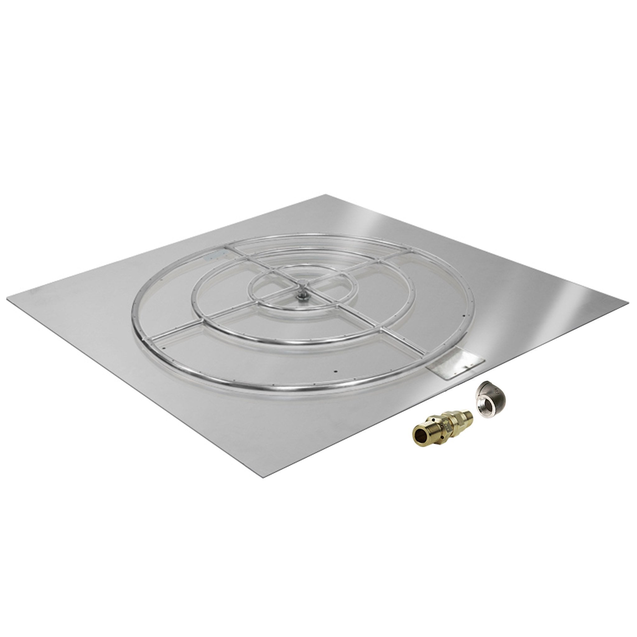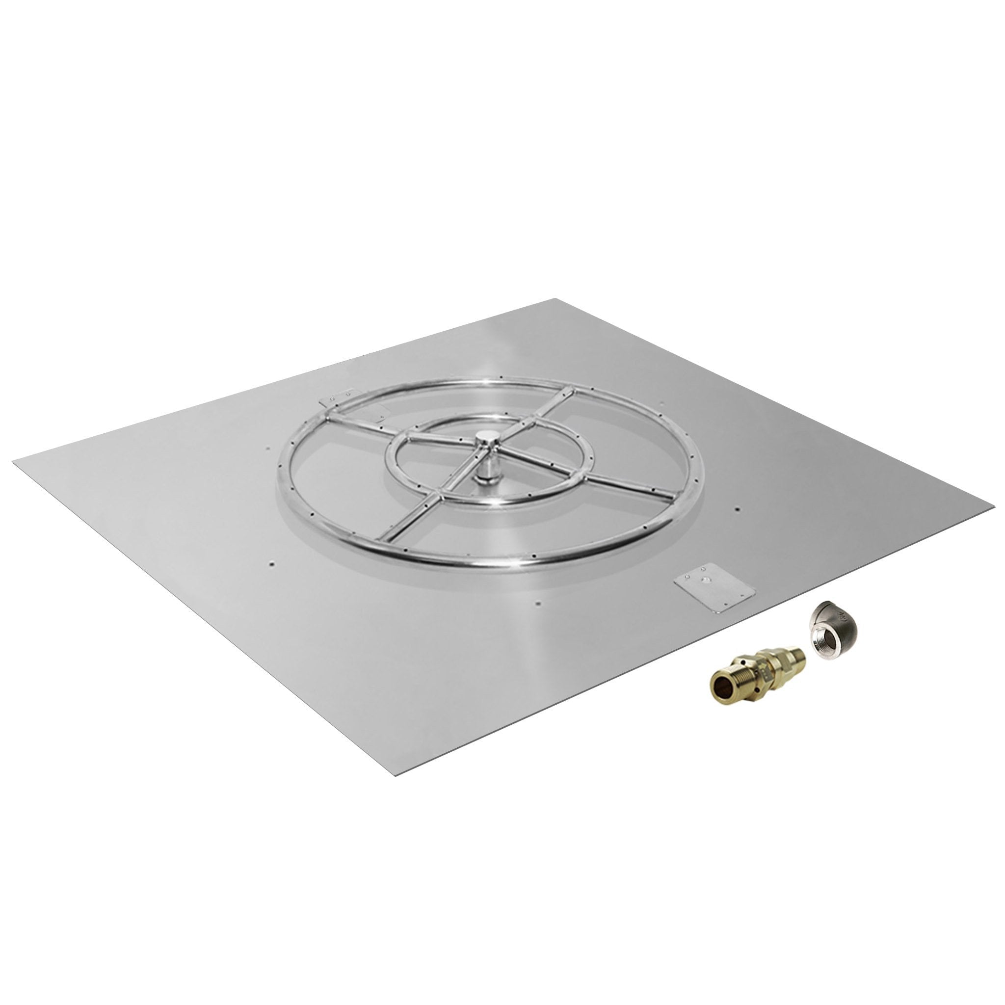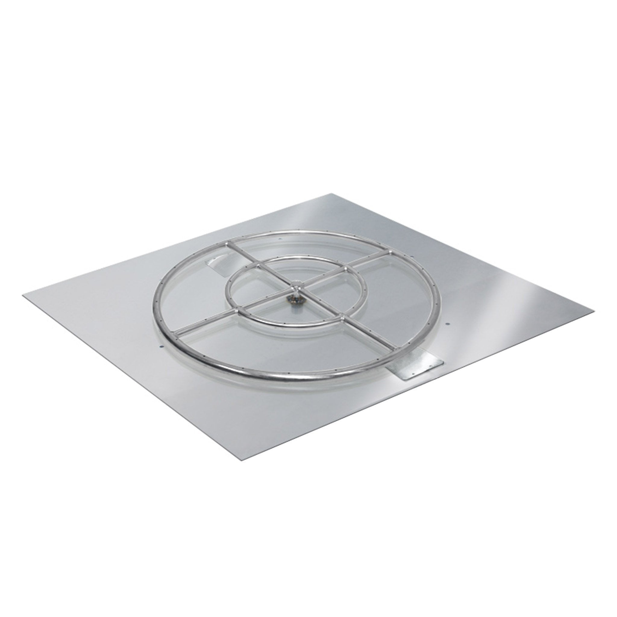 Also included with this kit is a stainless steel burner pan that is specially designed to eliminate the need for fillers. This cost-effective component allows a bed for fire media, such as fire glass, to lay across the pan. Not only does this make for a stunning centerpiece display, the empty interior space beneath the pan helps improve airflow for optimal combustion and flame display. If your fire pit will be using propane gas or an ignition system, a burner pan is absolutely required. Installation is a cinch as the pan can be simply dropped into place over the ledge inside the fire pit's opening. For quick ledge solution, check out our Form Fitting Fire Pit Ledges (sold separately). Weep holes featured on the burner pan's design enables water to drain should the fire feature be exposed to rain. The removable tri-purpose ignition port cover plate that comes standard on all Starfire Designs pans allows for the use of match lit, battery spark, or electronic ignition systems.