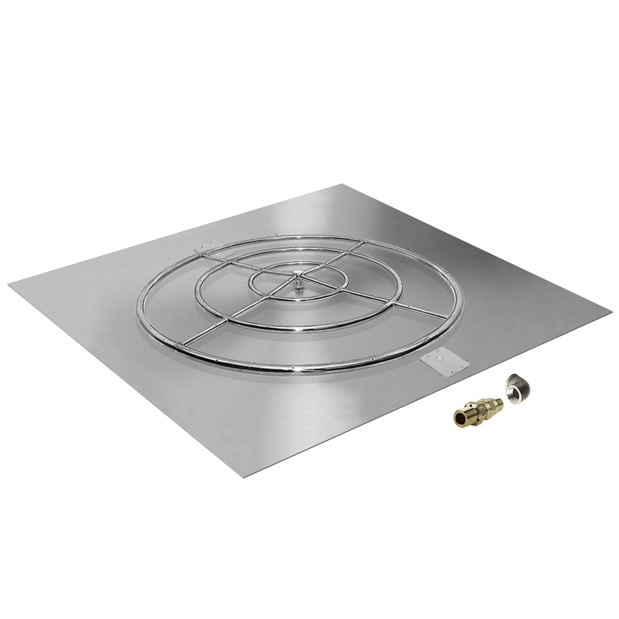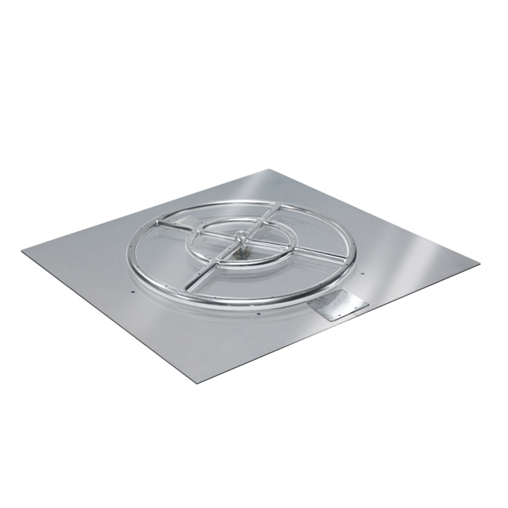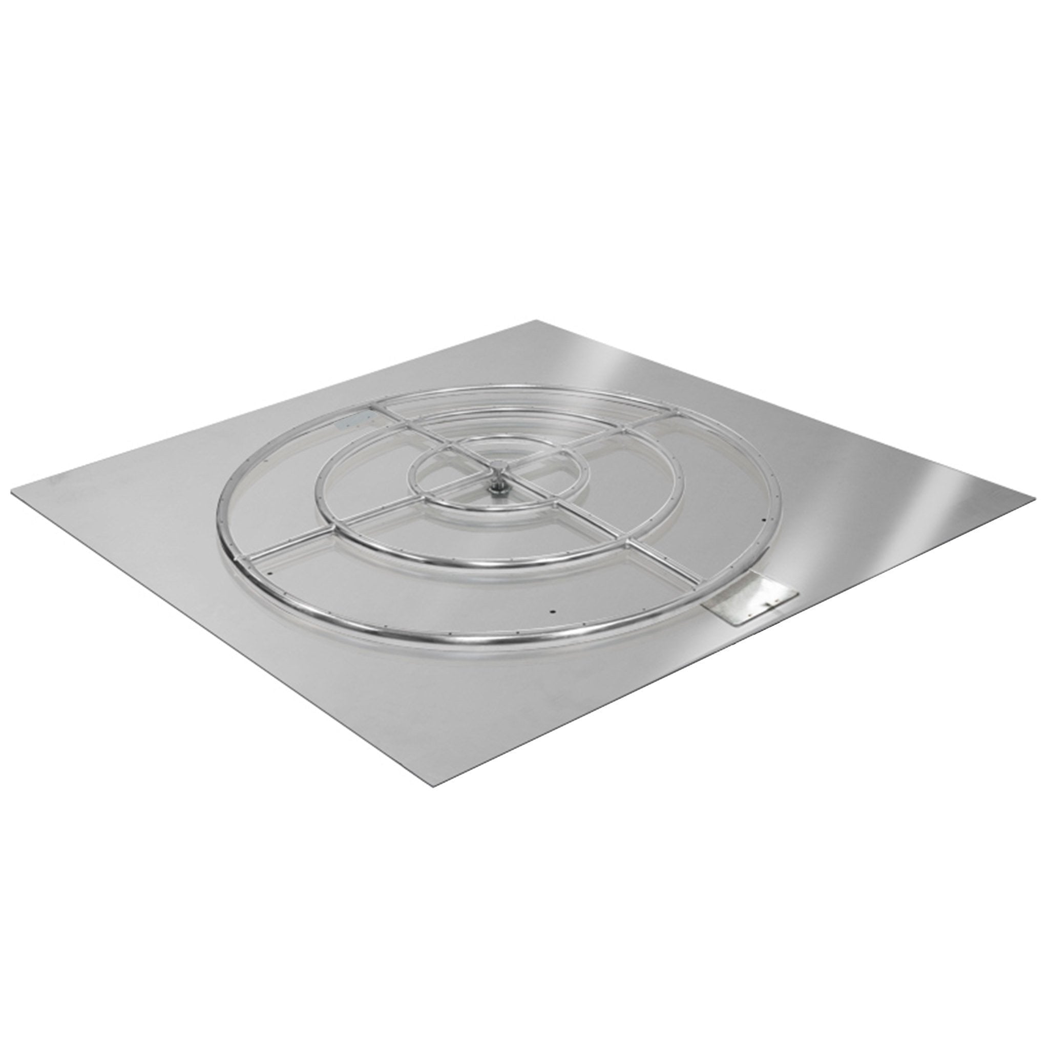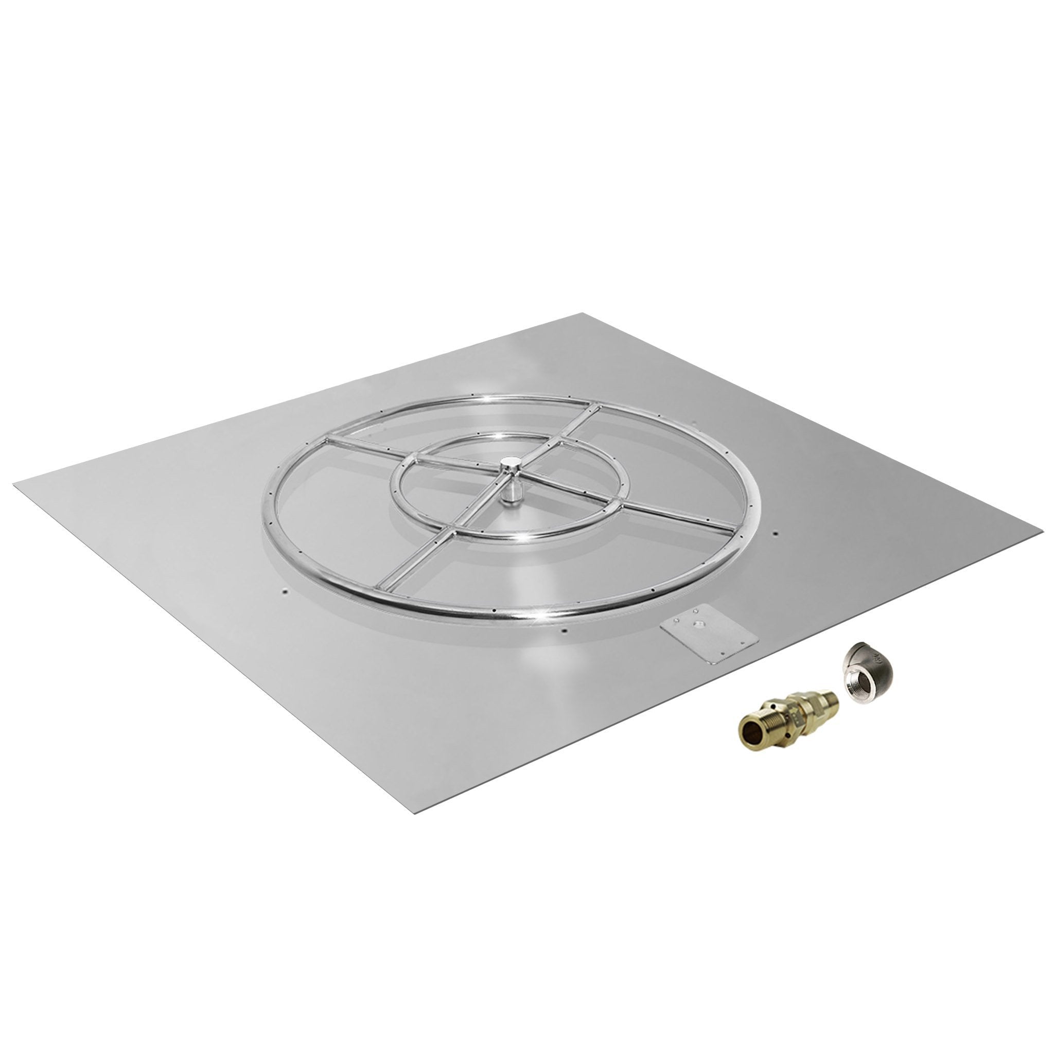Also included with this kit is a stainless steel burner pan that is specially designed to eliminate the need for fillers. This cost-effective component allows a bed for fire media, such as fire glass, to lay across the pan. Not only does this make for a stunning centerpiece display, the empty interior space beneath the pan helps improve airflow for optimal combustion and flame display. If your fire pit will be using propane gas or an ignition system, a burner pan is absolutely required. Installation is a cinch as the pan can be simply dropped into place over the ledge inside the fire pit's opening. For quick ledge solution, check out our Form Fitting Fire Pit Ledges (sold separately). Weep holes featured on the burner pan's design enables water to drain should the fire feature be exposed to rain. The removable tri-purpose ignition port cover plate that comes standard on all Starfire Designs pans allows for the use of match lit, battery spark, or electronic ignition systems.