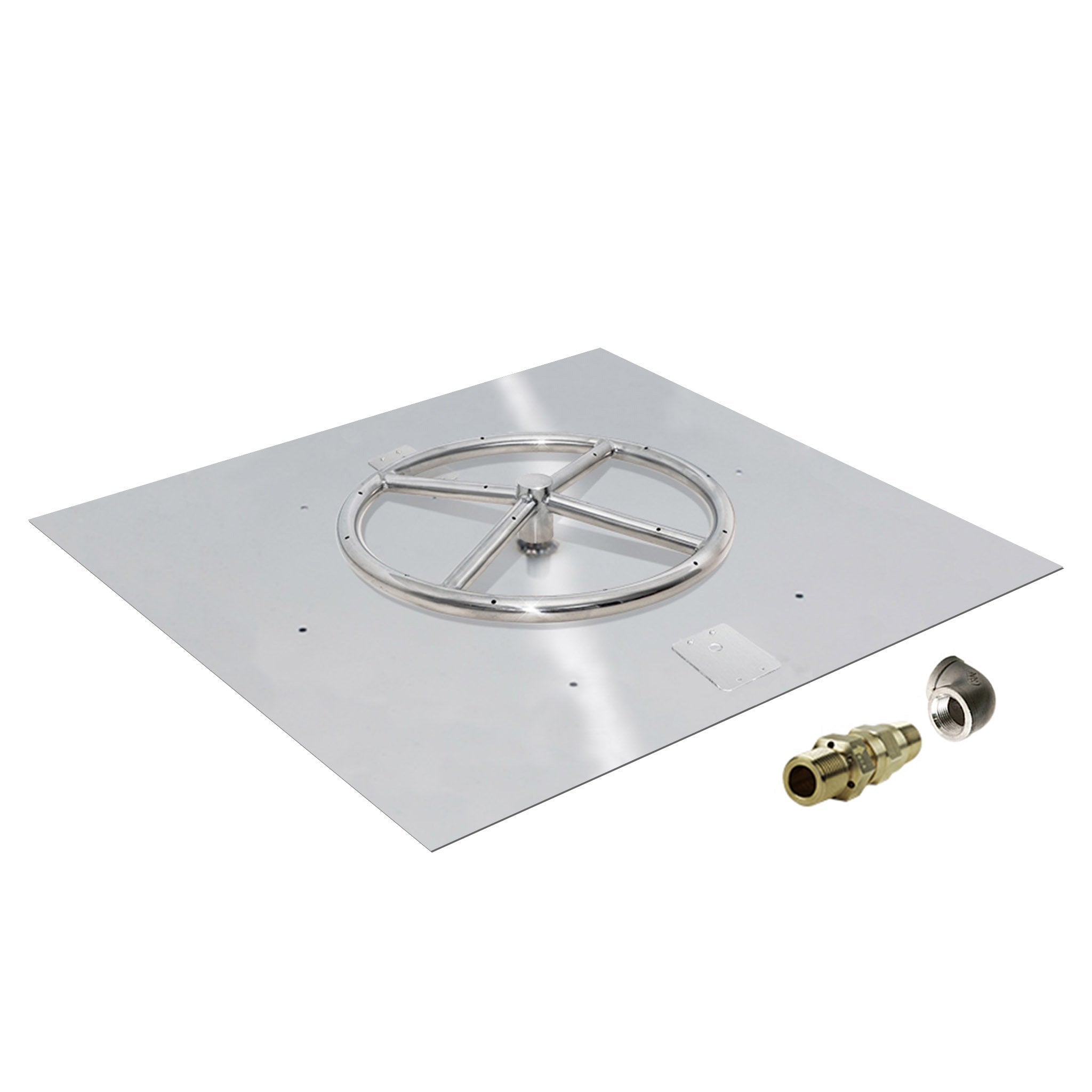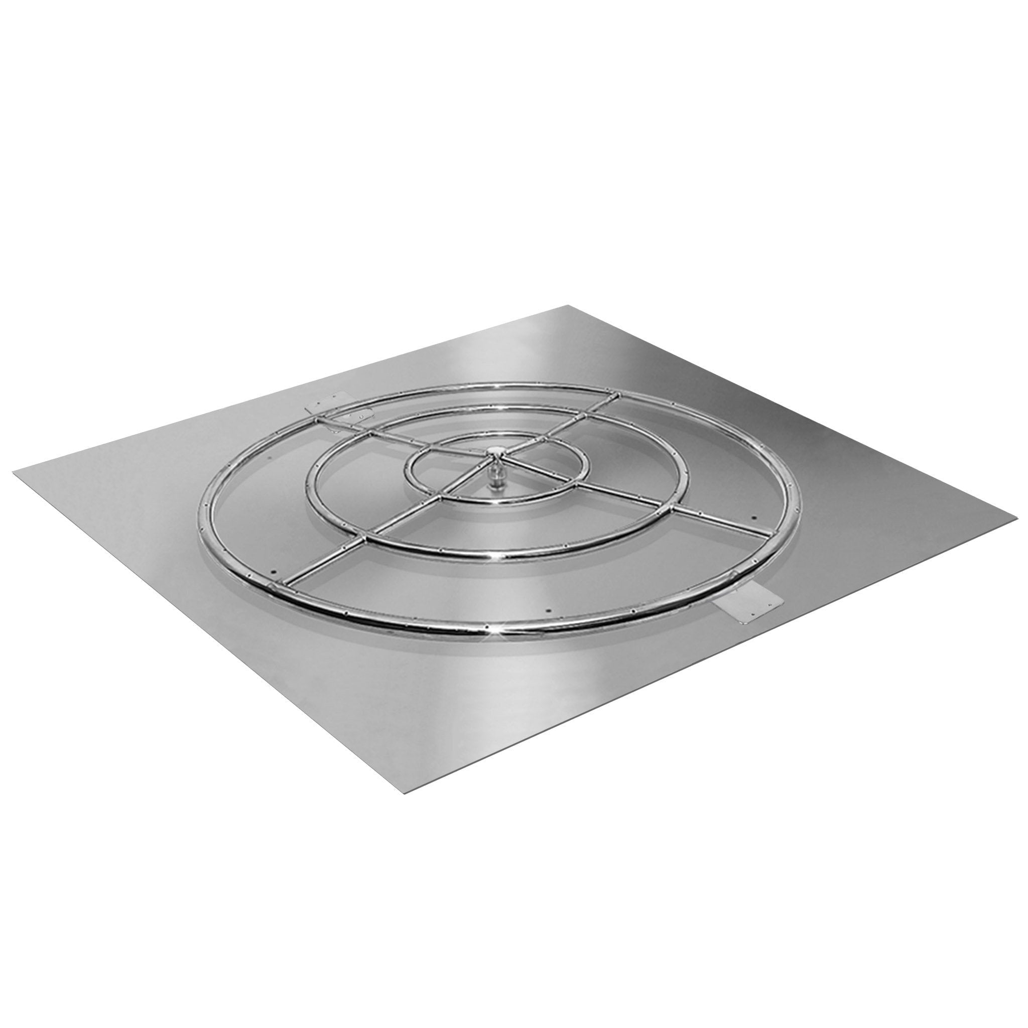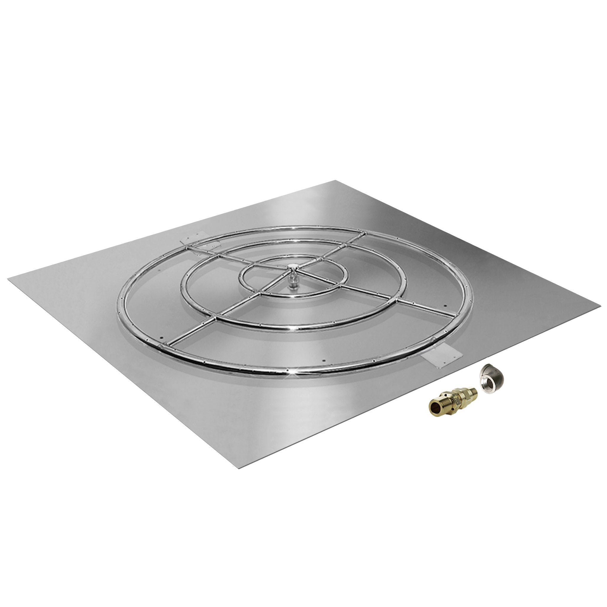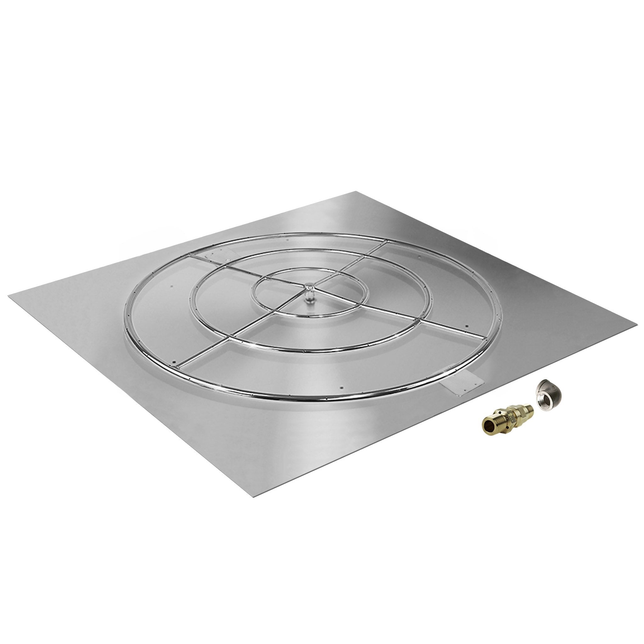 Also included with this kit is a stainless steel burner pan that is specially designed to eliminate the need for fillers. This cost-effective component allows a bed for fire media, such as fire glass, to lay across the pan. Not only does this make for a stunning centerpiece display, the empty interior space beneath the pan helps improve airflow for optimal combustion and flame display. If your fire pit will be using propane gas or an ignition system, a burner pan is absolutely required. Installation is a cinch as the pan can be simply dropped into place over the ledge inside the fire pit's opening. For quick ledge solution, check out our Form Fitting Fire Pit Ledges (sold separately). Weep holes featured on the burner pan's design enables water to drain should the fire feature be exposed to rain. The removable tri-purpose ignition port cover plate that comes standard on all Starfire Designs pans allows for the use of match lit, battery spark, or electronic ignition systems.