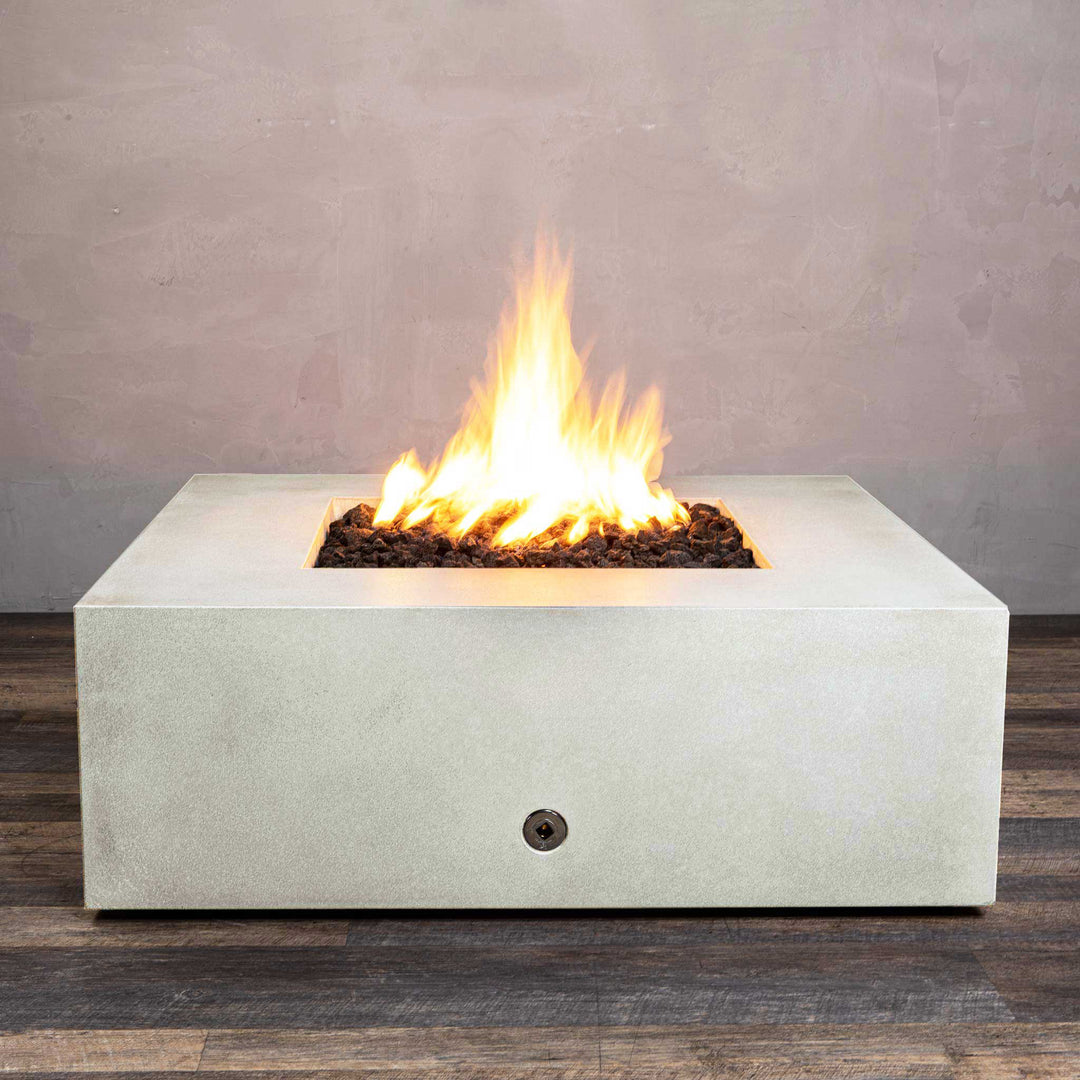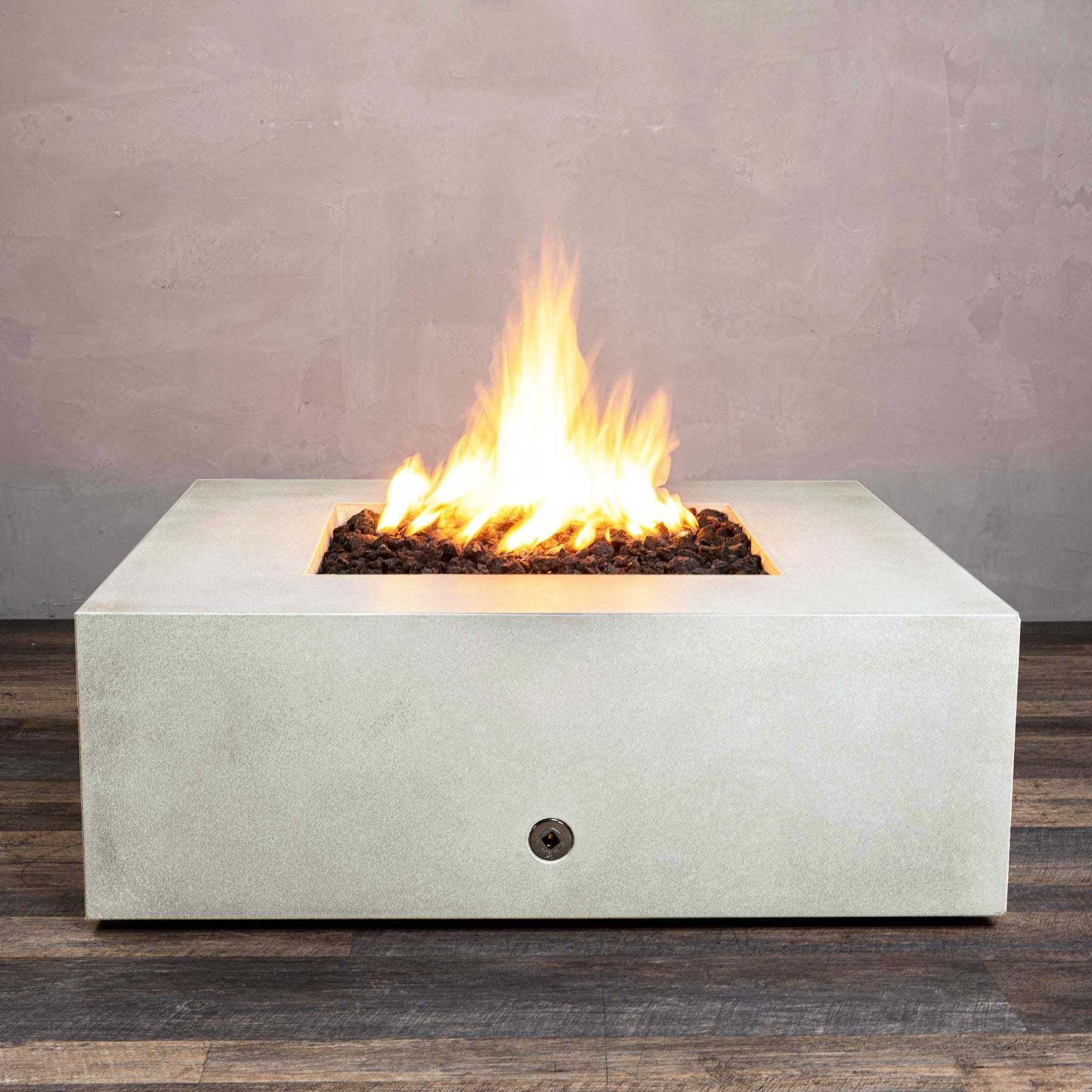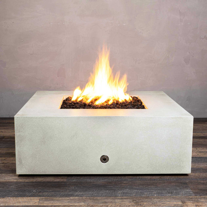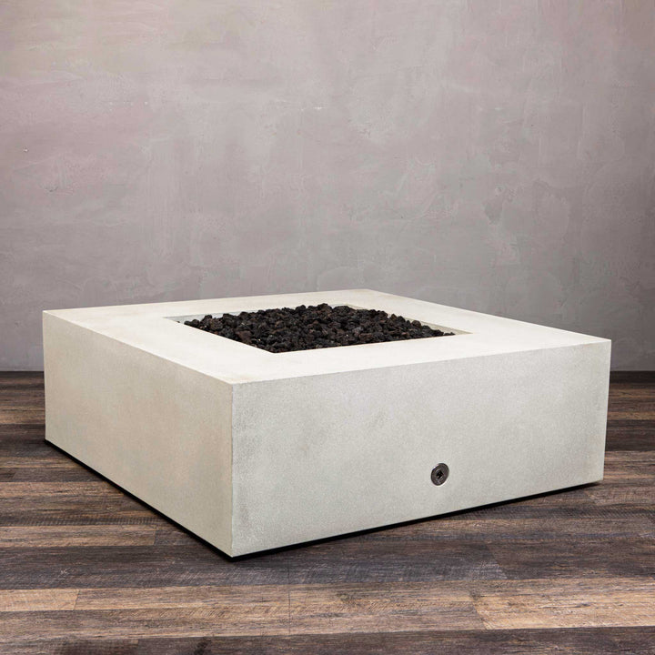 45" Square Gravity Concrete (GFRC) Fire Pit - Natural Gas - Match Lit Ignition - White by Starfire Designs