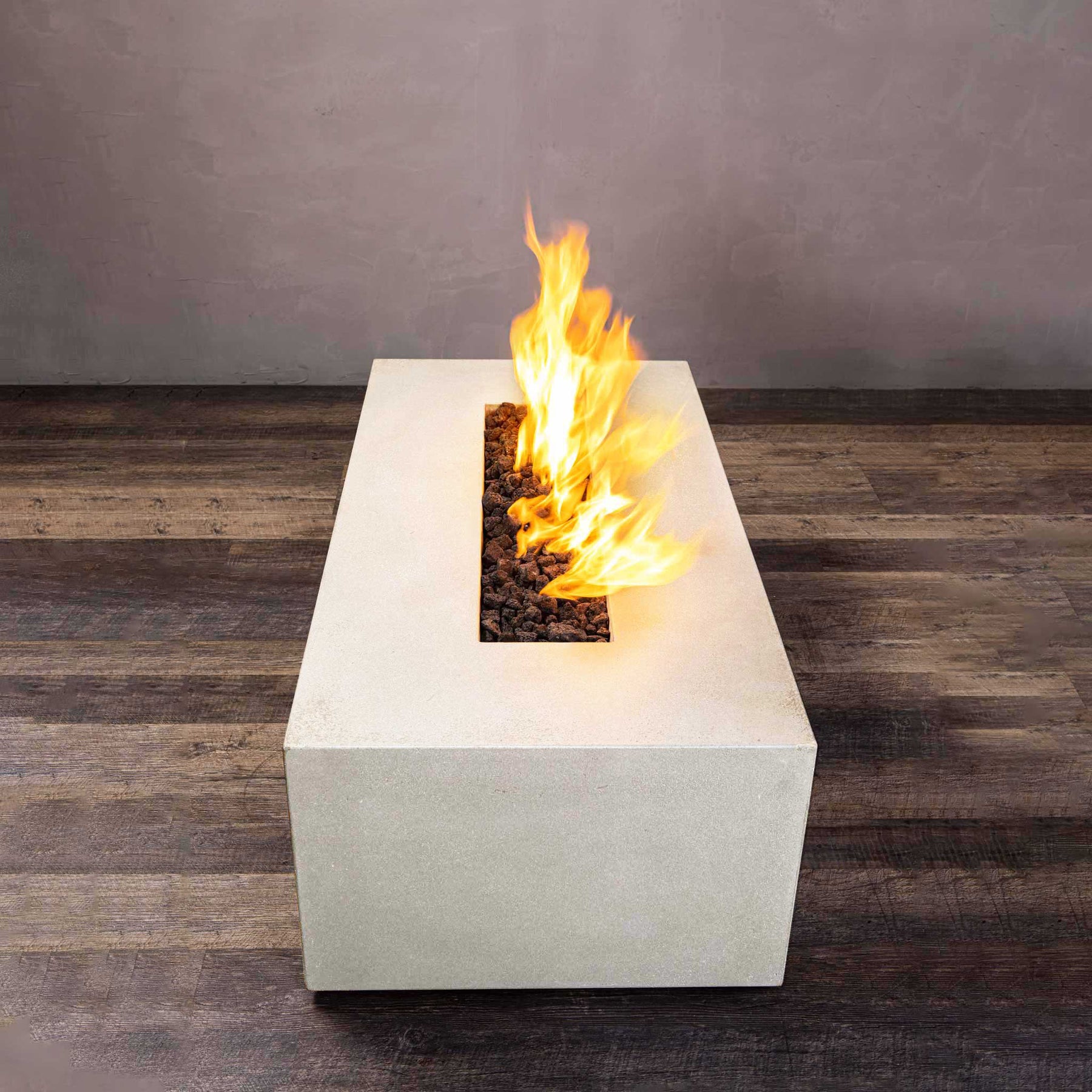 48" x 32" Rectangle Gravity Concrete (GFRC) Fire Pit - Natural Gas - 110V Electronic Ignition System - White by Starfire Designs