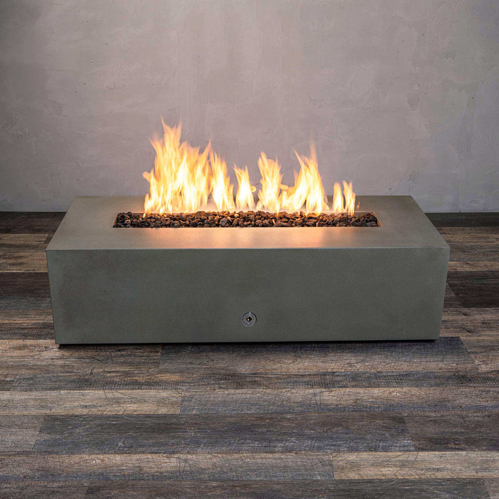 60" x 24" Rectangle Gravity Concrete (GFRC) Fire Pit - Propane Gas Hardline - 110V CSA Hi/Lo Electronic Ignition System w/Bluetooth & Handheld Remote - Brown by Starfire Designs