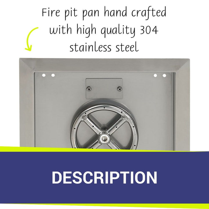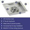 Crafted from heavy-duty 304 stainless steel, this pan is built to withstand the elements—resisting rust, corrosion, and high heat over time. Its square shape and reinforced construction offer a sleek, stable base for your burner and fire media, while integrated weep holes provide proper drainage to protect against moisture buildup.