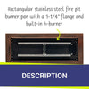 Designed for compatibility with both natural gas and propane systems, the pan features a 1/2" bottom gas inlet for easy installation. It is equipped with drilled weep holes to prevent water accumulation, safeguarding your burner system and maintaining optimal performance.
