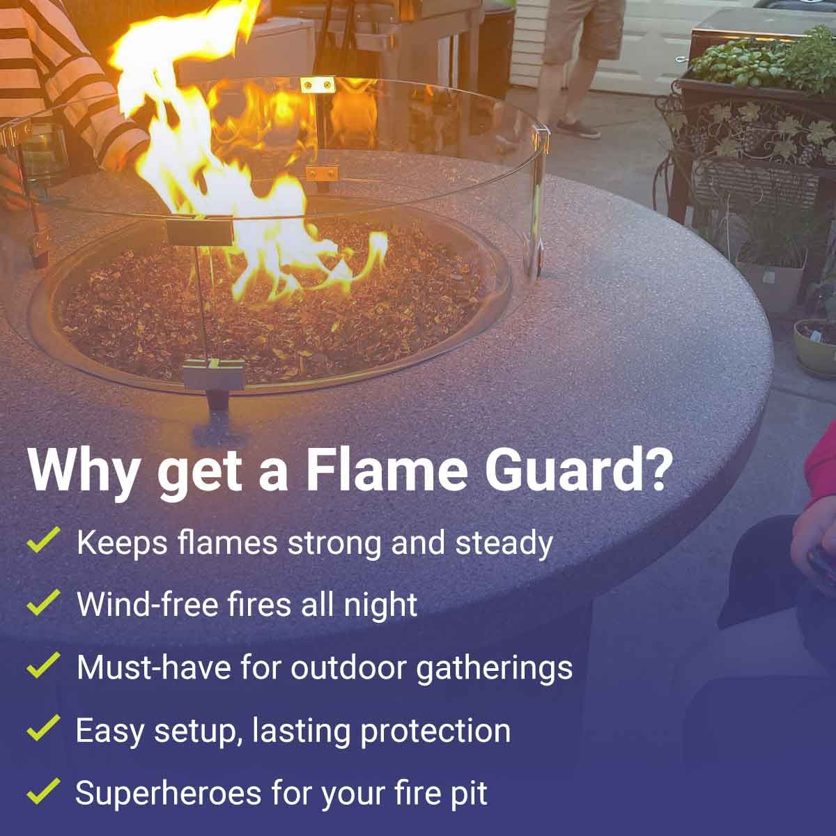 Designed for optimal performance, the flame guard helps keep your flame centered and protected while providing a safety barrier that reduces risk around open fire. The uniform spacing between the burner and the guard offers a well-balanced and intentional design aesthetic that complements your outdoor setup.