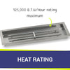 Designed for compatibility with both natural gas and propane systems, the pan features a 1/2" bottom gas inlet for easy installation. It is equipped with drilled weep holes to prevent water accumulation, safeguarding your burner system and maintaining optimal performance.