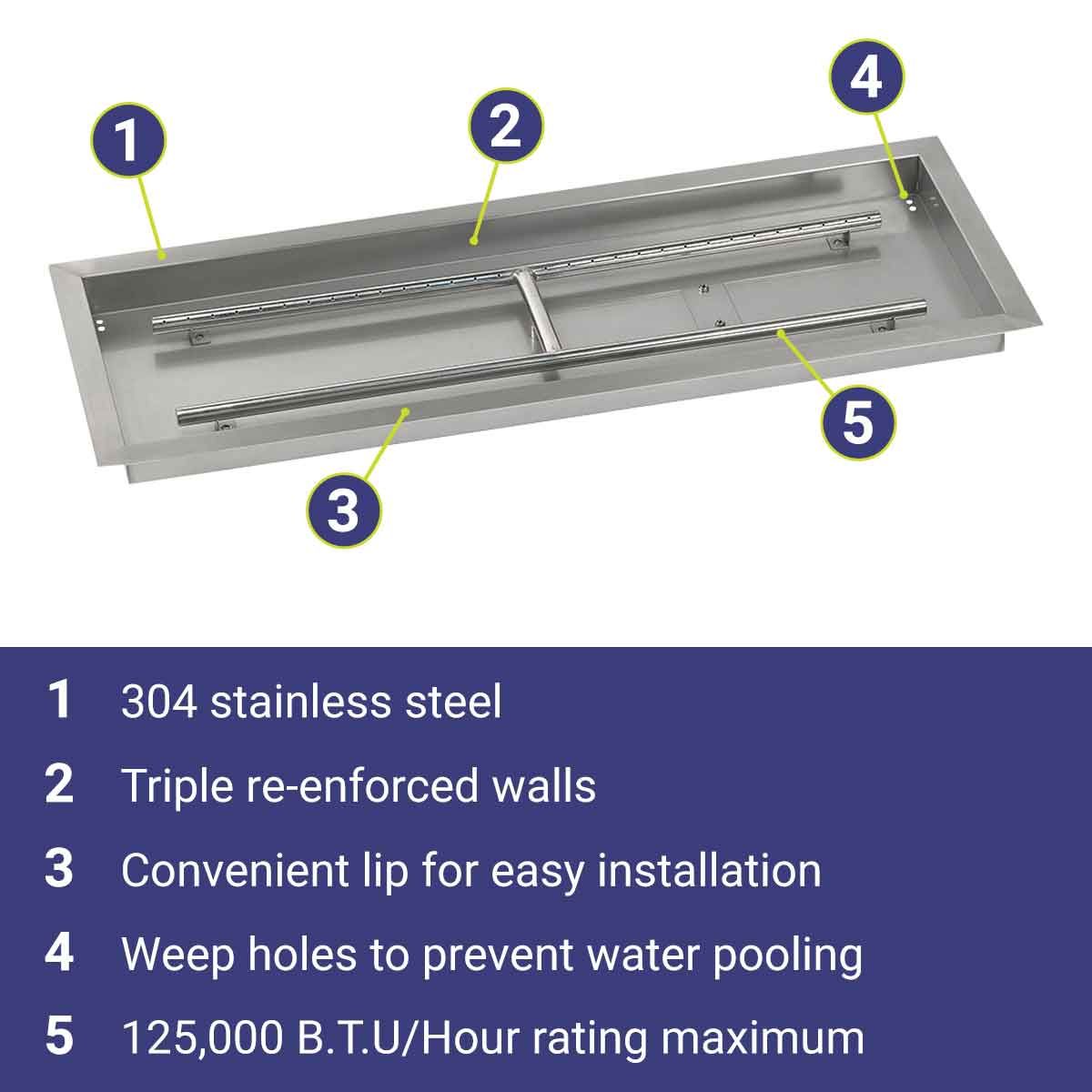 Simple installation and maintenance make this drop-in pan an excellent choice for both DIY enthusiasts and professionals. Pair it with your preferred burner and fire media to create a stunning focal point in your outdoor living space.