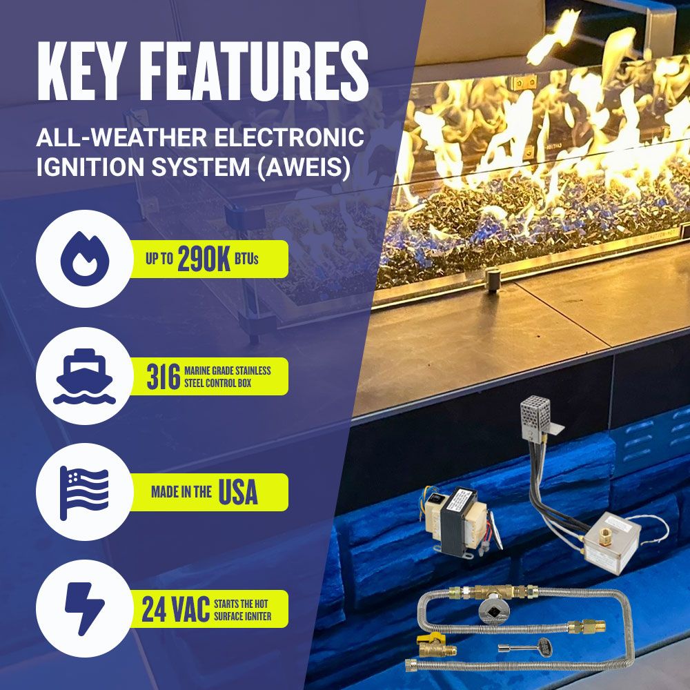 Clean design. All-weather ignition. Built to last in any outdoor environment. The American Fire Products Square Drop-In Pan with All-Weather Electronic Ignition System (AWEIS) is a premium, ready-to-install solution for creating reliable and visually striking outdoor fire features. Perfect for both residential and commercial applications, this system delivers dependable ignition with the durability to thrive year-round.