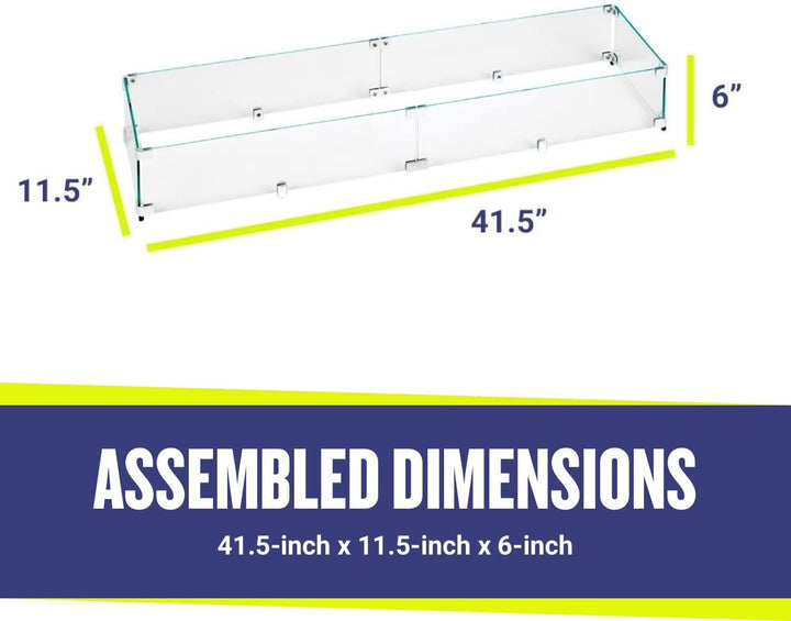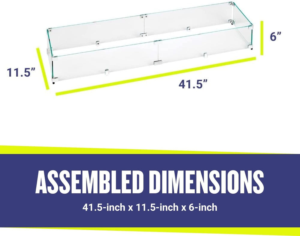 Constructed with tempered glass panels and stainless steel corner brackets, this linear flame guard offers exceptional durability and heat resistance. Its transparent design allows for an unobstructed view of the fire while shielding the flame from breezes and gusts, making it ideal for outdoor fire pits and fire tables.