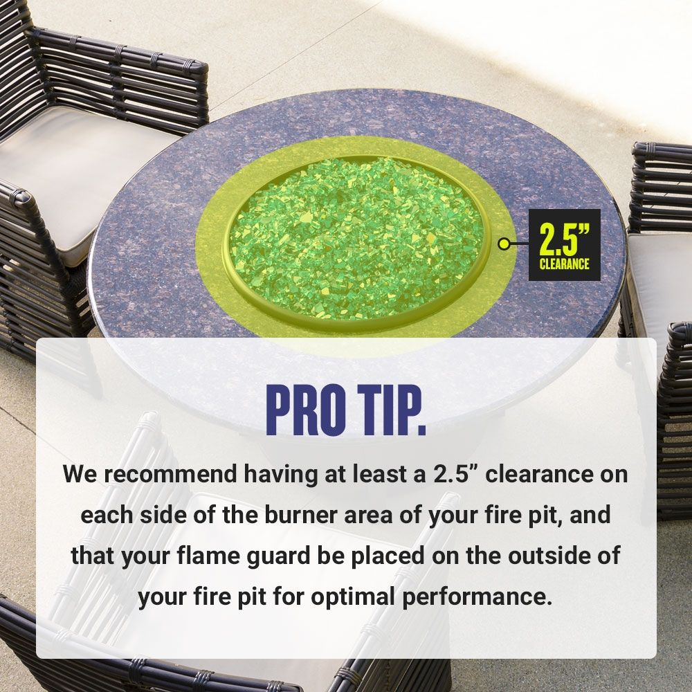 Function meets form with clean lines and a balanced fit that complements the square shape of your burner pan. The guard not only enhances safety by helping to keep hands and flammable items away from the flames but also improves flame performance by maintaining a centralized burn in windy conditions. It’s the finishing touch your fire pit needs to look and perform its best.
