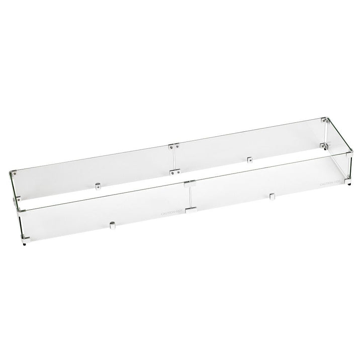 Constructed with tempered glass panels and stainless steel corner brackets, this linear flame guard offers exceptional durability and heat resistance. Its transparent design allows for an unobstructed view of the fire while shielding the flame from breezes and gusts, making it ideal for outdoor fire pits and fire tables.