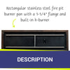 Constructed from high-quality 304 stainless steel, this drop-in pan is engineered to withstand extreme temperatures and resist rust and corrosion, ensuring longevity and reliability in various outdoor environments. Its sleek, flat design allows for a uniform distribution of fire media, creating a mesmerizing flame display.